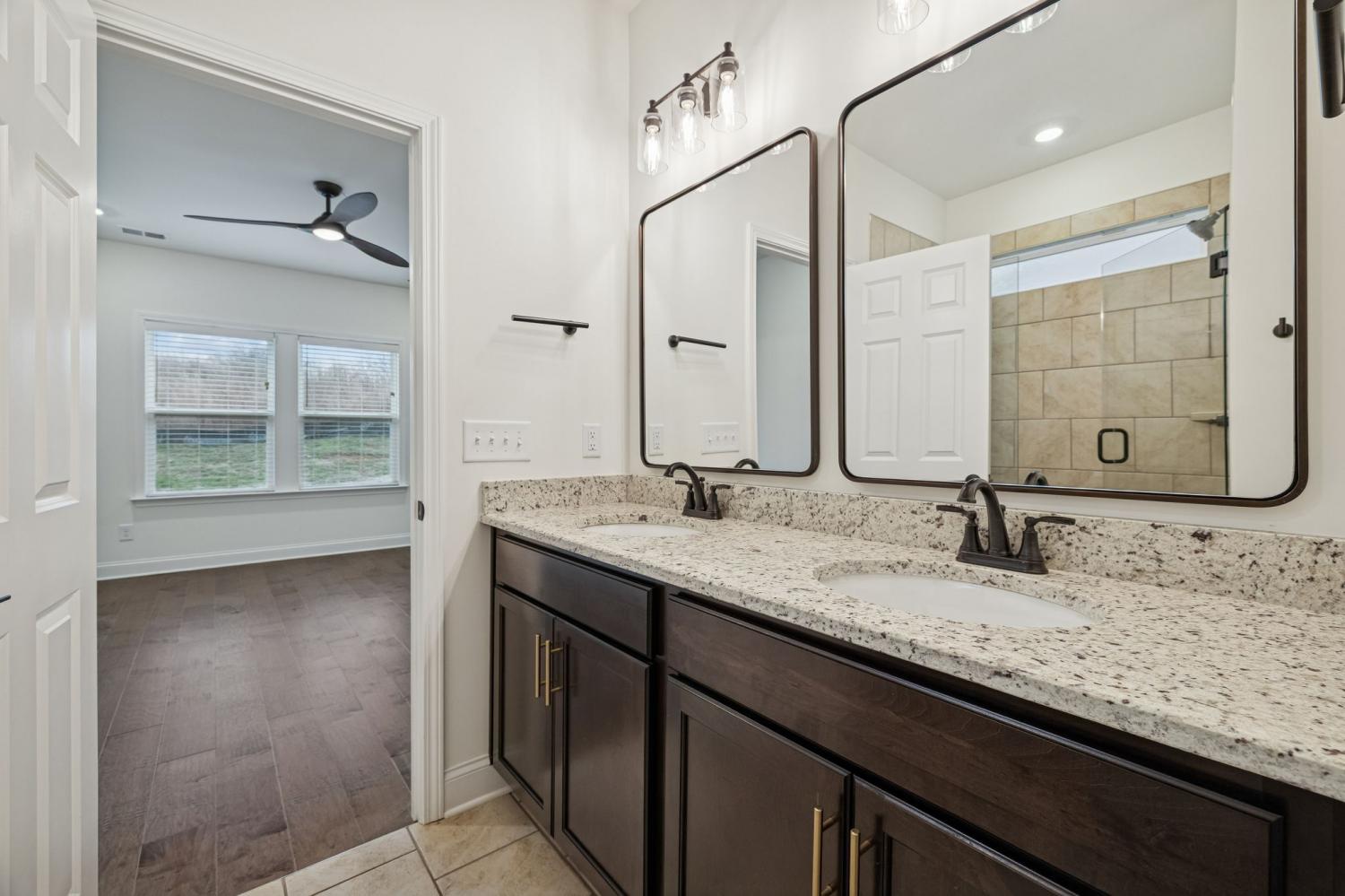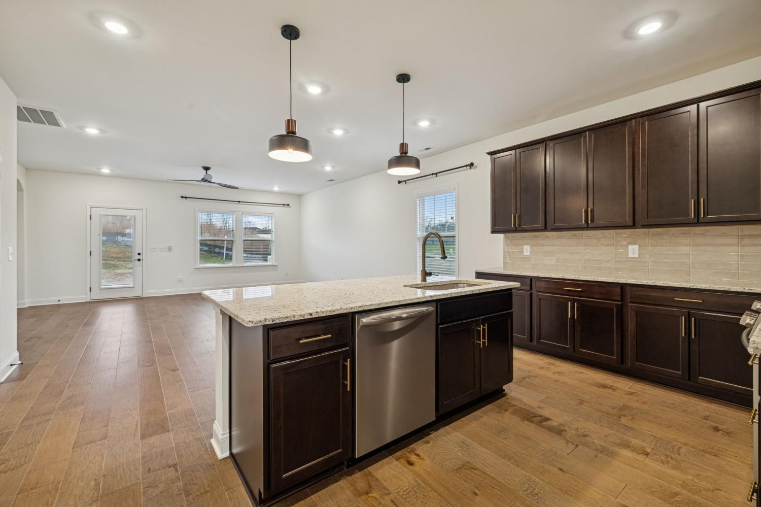 Completed in 2024 this like-new home in Kensington Downs community is located on a premium corner lot with a view of the green space / play ground across the street, is move-in ready! This Richland Floor plan offers all hard-wood flooring (no carpet) and wood window blinds, wide entry hall way that flows in to the kitchen area with an open floor plan that includes the living room and eating area. With 4 Bedrooms and 2.5 baths the Primary bedroom is on the main floor and media/bonus/office area upstairs. The kitchen has a beautiful island, lots of cabinet space, granite counter tops, decorative backsplash, stainless steel appliances and 4 burner gas stove top. Enjoy the community amenities that include swimming pool, fitness room, club house and green space w/play ground. Zoned for Station Camp Schools, several local shops, restaurants, coffee shops and quick convenient highway access for commuting to Nashville!
