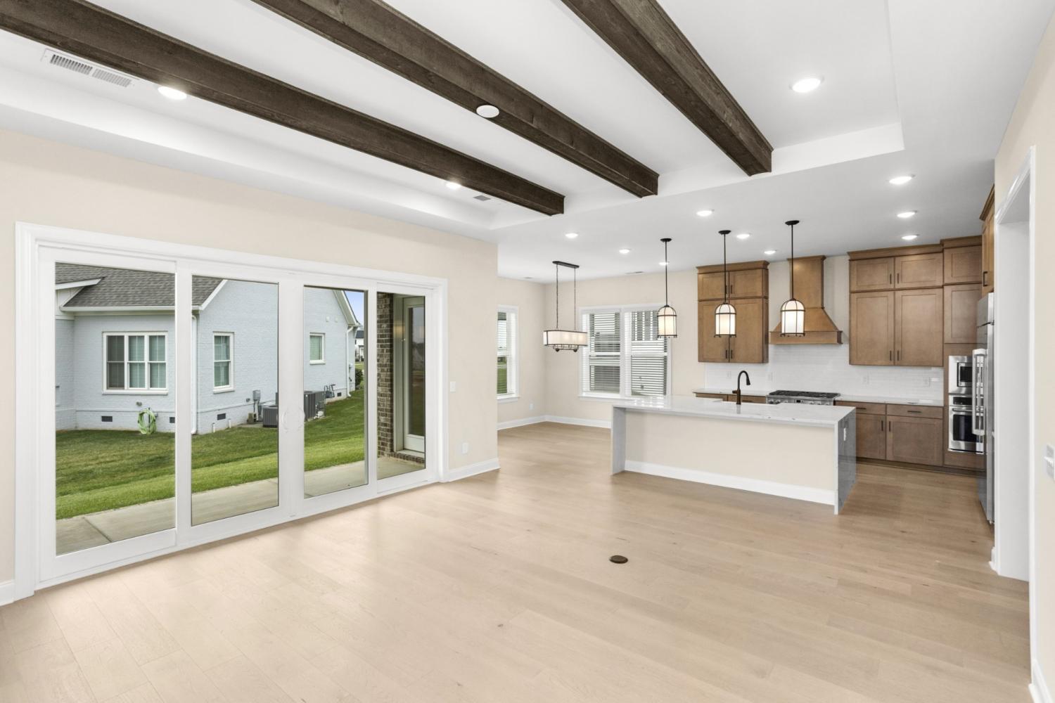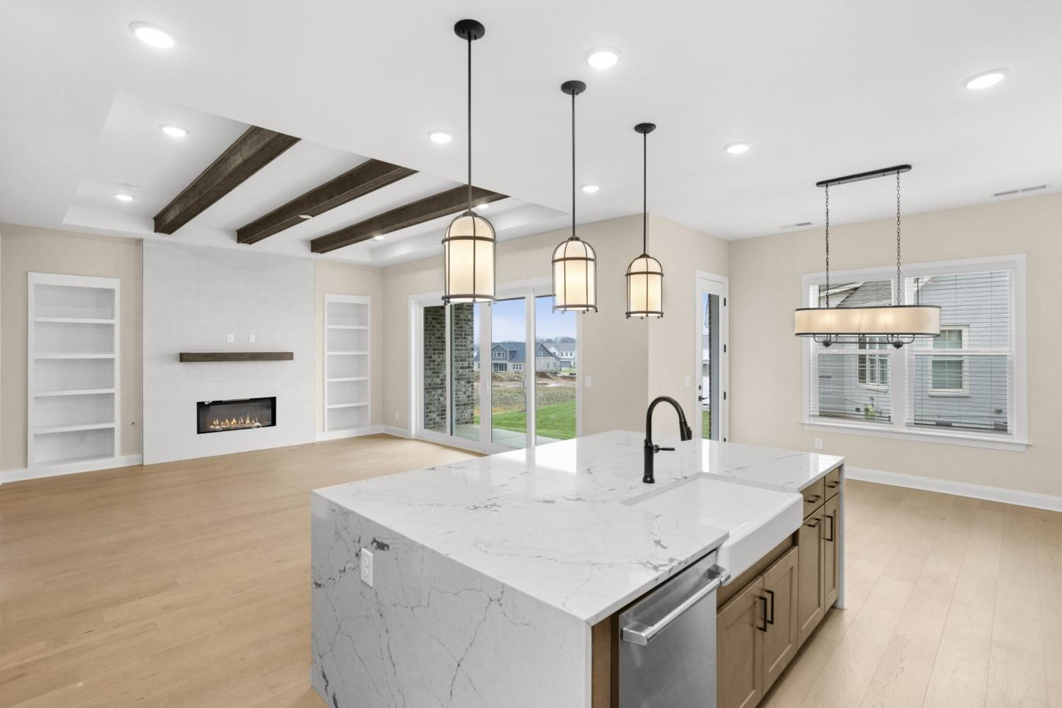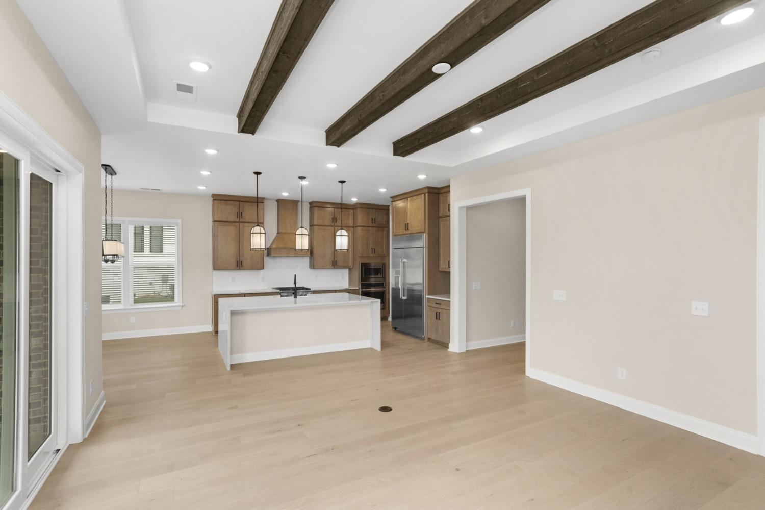 August Park – The 3 car garage Parnell-Homesite 248 LOCK IN a rate as low as 5.375% fixed rate CONV and get $30,000 in Flex Cash to use toward closing costs! Use our preferred lender to secure this massive payment-saver. The main level features a wide entry, private study, formal dining room, and a dramatic staircase. The gourmet kitchen—with Monogram appliances, quartz countertops, butler’s pantry, and walk-in pantry—flows into a vaulted great room with fireplace and built-ins, perfect for holiday entertaining. The private primary suite offers a spa-style bath, oversized walk-in closet, and direct laundry access. Upstairs, two separate bedroom wings provide flexible space for guests or family during the holidays. Blending elegance, functionality, and privacy, this home is ready for festive gatherings and lasting memories.