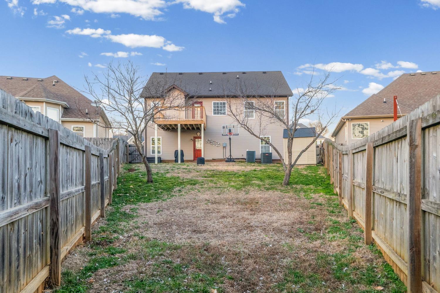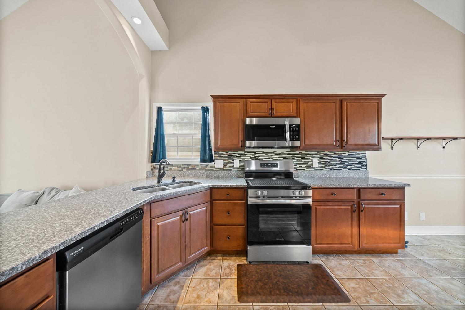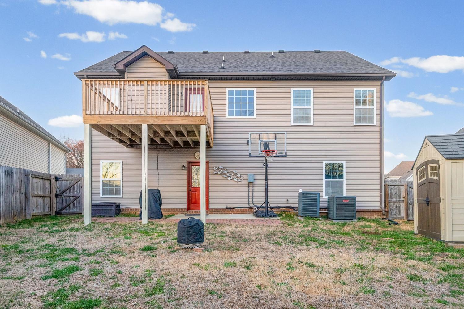 Beautiful split-level home featuring an open and airy floor plan with vaulted ceilings and abundant natural light! The spacious living room flows seamlessly into the kitchen, stainless steel appliances, and new stove and microwave. Generous primary suite offers a double vanity and plenty of storage. Enjoy outdoor living with a newly built deck overlooking a fenced backyard—perfect for entertaining, pets, or relaxing evenings. Storage shed remains with the property for added convenience. Recent updates include a new upstairs HVAC unit, providing peace of mind for years to come. Two-car garage offers additional storage and functionality. Located in a desirable neighborhood with easy access to shopping, dining, and commuter routes. This home is move-in ready and a must-see!