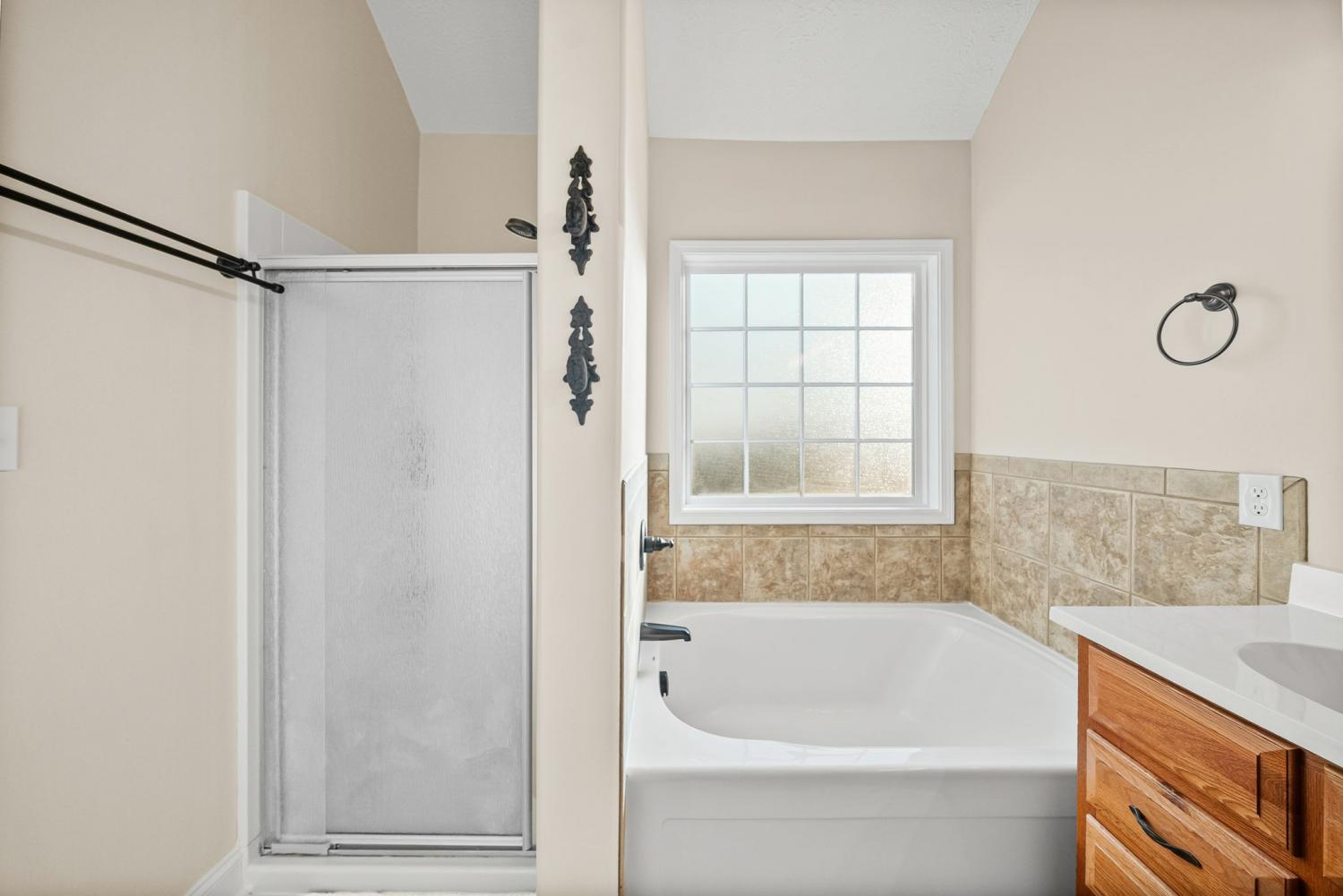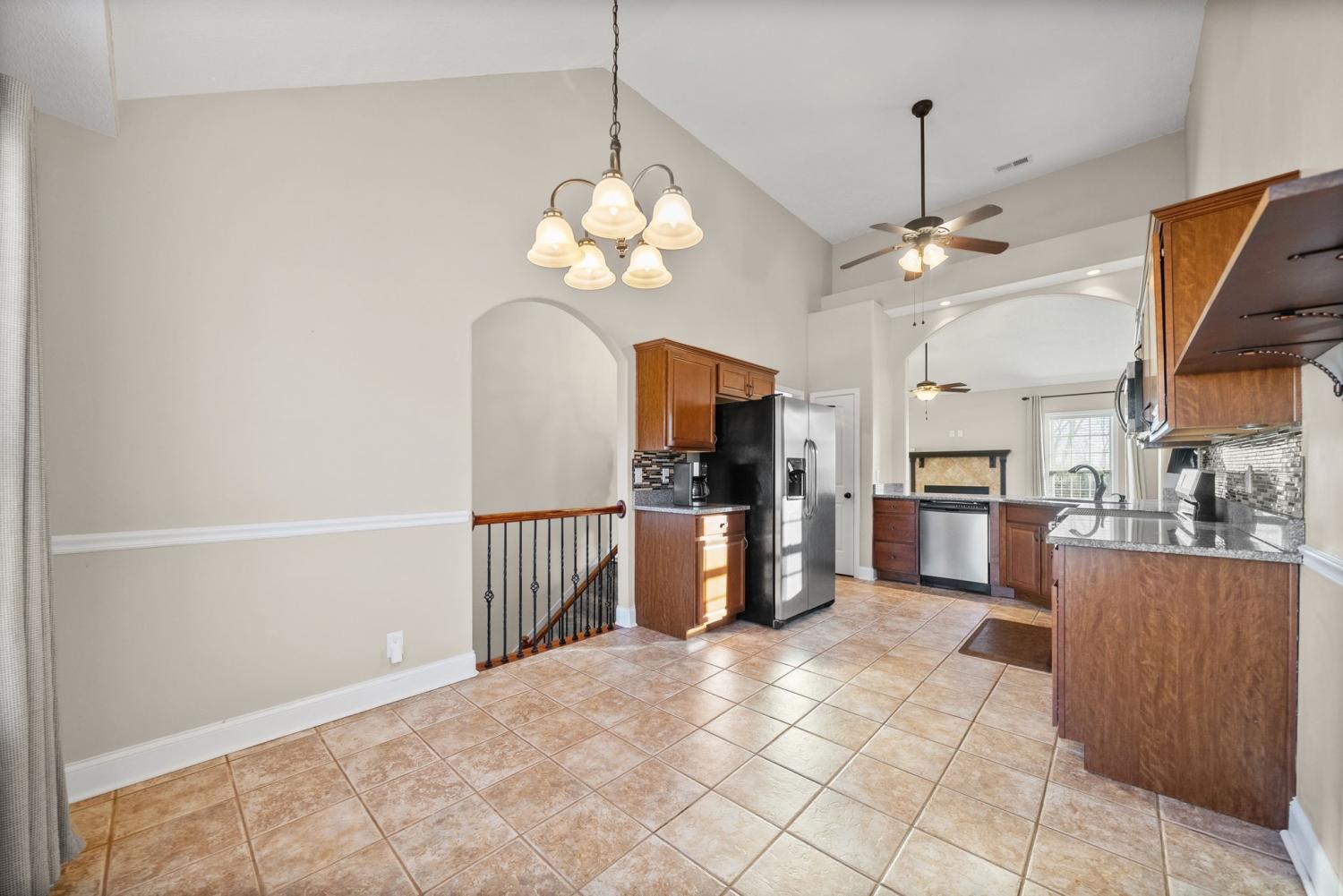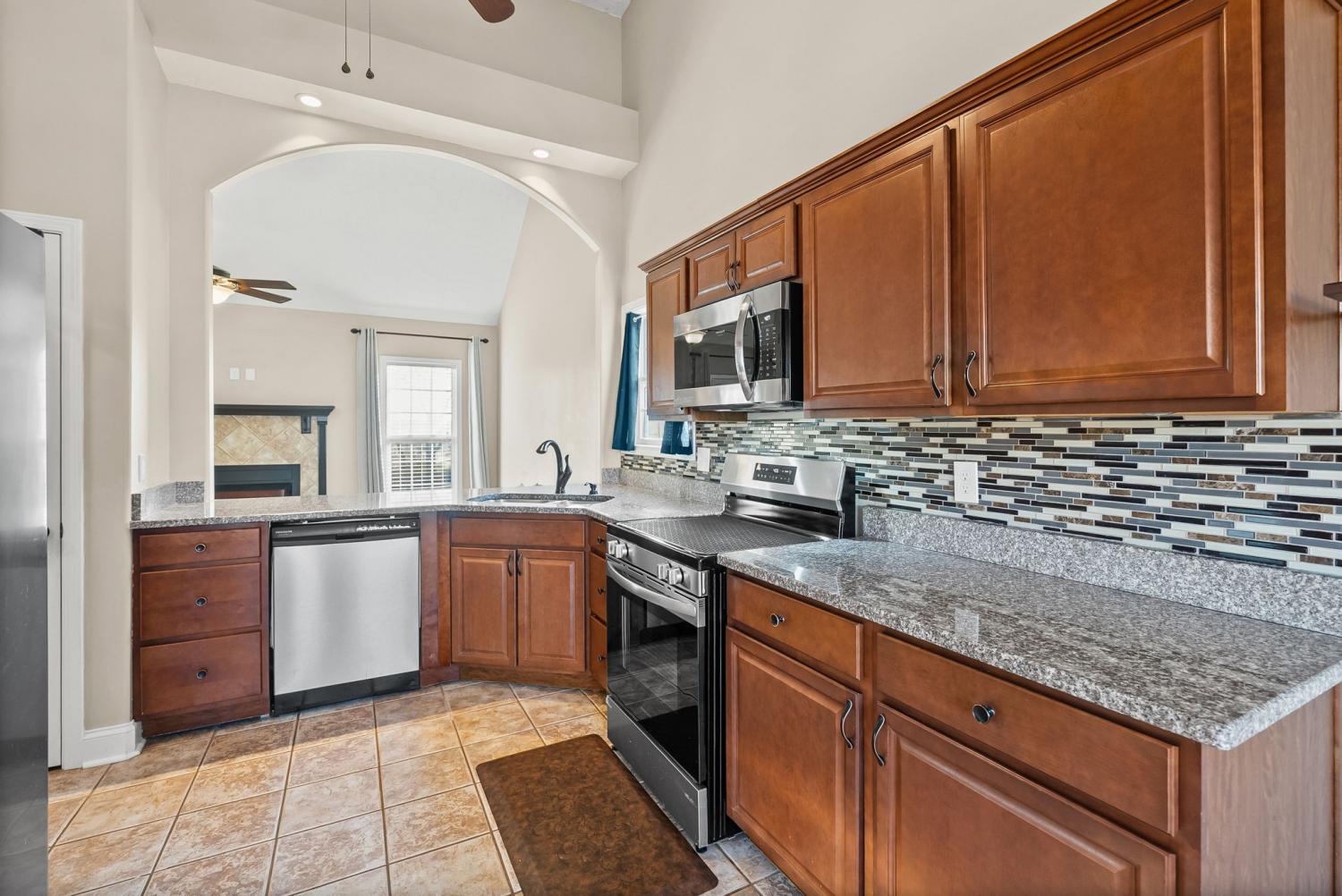 Beautiful split-level home featuring an open and airy floor plan with vaulted ceilings and abundant natural light! The spacious living room flows seamlessly into the kitchen, stainless steel appliances, and new stove and microwave. Generous primary suite offers a double vanity and plenty of storage. Enjoy outdoor living with a newly built deck overlooking a fenced backyard—perfect for entertaining, pets, or relaxing evenings. Storage shed remains with the property for added convenience. Recent updates include a new upstairs HVAC unit, providing peace of mind for years to come. Two-car garage offers additional storage and functionality. Located in a desirable neighborhood with easy access to shopping, dining, and commuter routes. This home is move-in ready and a must-see!