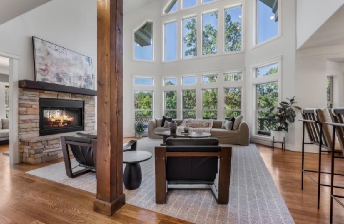 LAKEFRONT with true walk-down access to the water at Center Hill Lake. Welcome to 145 High Bridge in the sought after Blue Water Bay community, where architectural drama meets relaxed lake luxury. This fully remodeled 5-bedroom, 3.5-bath home offers nearly 4,000 sq ft of elevated living. The soaring 20-foot vaulted ceilings and wall of windows flood the main living space with natural light, while a stunning double-sided stack stone gas fireplace anchors the room with warmth and character. The kitchen is designed for gathering, featuring granite countertops, slate backsplash, gas cooktop, breakfast bar seating, and open flow to dining and living areas, ideal for hosting lake weekends or holiday celebrations. Step outside to a spacious wraparound deck with seasonal lake views , perfect for morning coffee, sunset dinners, or simply unwinding after a day on the water. The main and second levels showcase hardwood flooring, while the finished basement features new LVP and an entertainer’s retreat complete with theater room and custom built-in bunk space with LED lighting and charging stations , designed with both fun and functionality in mind. Additional highlights include: • Pull-through garage • Thoughtful remodel throughout • Generous storage • Community lakeview pool, clubhouse & fitness center Located less than 90 minutes from Nashville, this property offers the perfect balance of privacy, recreation, and accessibility. Whether you’re seeking a full-time residence, weekend retreat, or income-producing lake investment, this home delivers lifestyle and flexibility in one of Center Hill Lake’s most desirable communities. Optional designer curated furnishings available for purchase separately.
