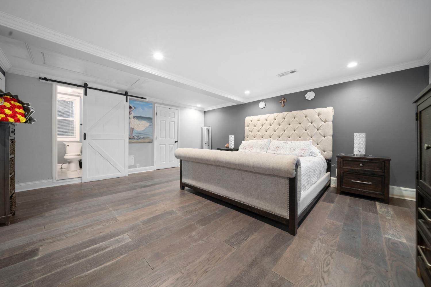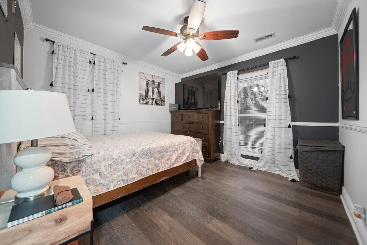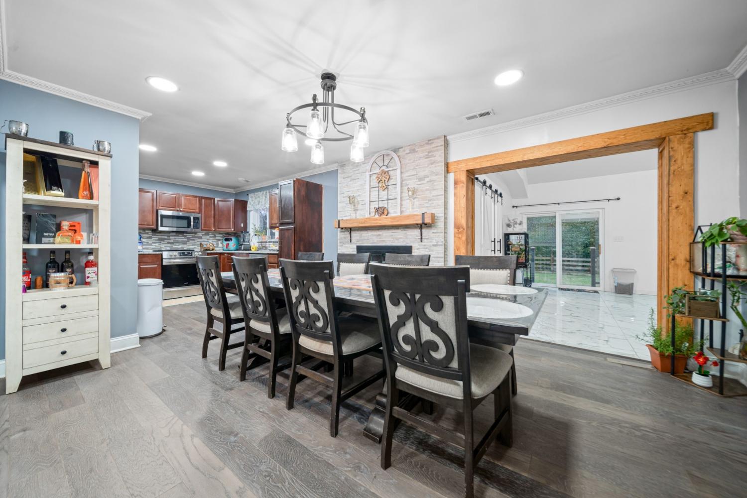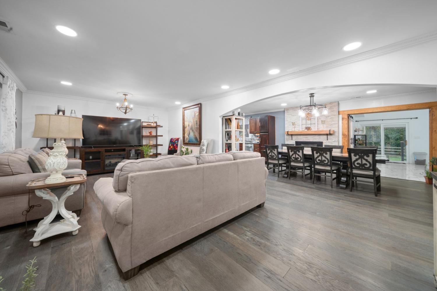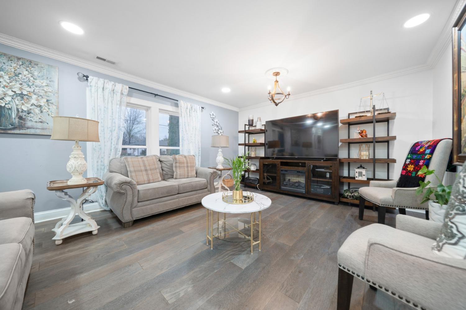 Beautifully updated ranch style on a spacious level lot! This house features an open living and dining area with hardwood floors, a stone-accented fireplace, and a bright kitchen with modern cabinetry and stainless appliances. The large bonus room with vaulted ceilings offers flexible space for a studio, playroom, second living area or 5th bedroom. The oversized primary suite provides exceptional space and natural light. Enjoy a welcoming front porch, long driveway, and a large fenced backyard in a quiet, established neighborhood.
