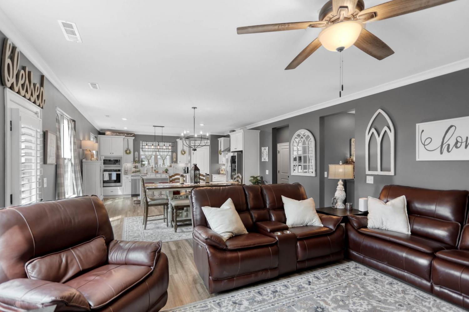 Welcome to this like-new beauty in Chelsea’s Way, perfectly positioned on the largest lot in the neighborhood! Offering one of the community’s most spacious floor plans, this home blends comfort, functionality, and style. The open-concept living space is flooded with natural light and flows seamlessly into a chef’s kitchen featuring a porcelain farmhouse sink, gas range, and a generous island - perfect for gatherings and everyday living. Upstairs, the master retreat boasts vaulted ceilings, a spa-inspired ensuite bath, and a walk-in closet. A versatile flex room on the main level can serve as a home office or additional bedroom. The finished basement is ideal for multi-generational living or guests, complete with its own private entrance, kitchenette, and full bath. Step outside to enjoy a large deck off the living room, a covered patio, and a fully fenced backyard that’s perfect for entertaining, pets, or play. Plus, the full-yard irrigation system keeps the lawn lush and green year-round with ease. Set on a corner lot, this home offers both space and privacy while keeping you just minutes from I-65, local shopping, schools, and everything White House and Cross Plains have to offer.