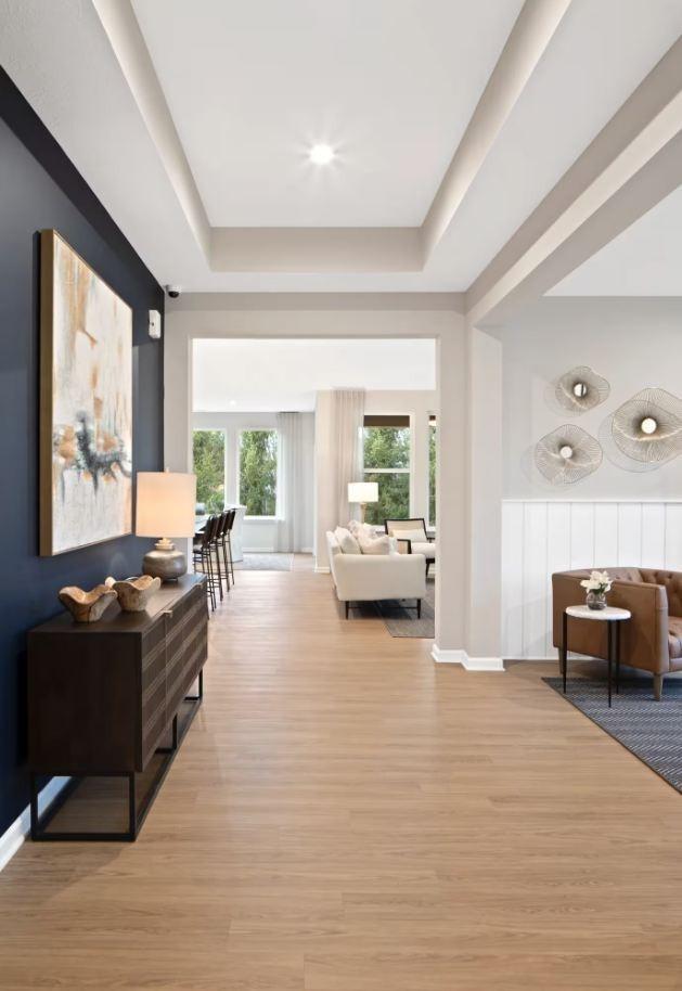 Beautiful New Drees 1‑Level Parkette Plan! This 3‑bed, 2.5‑bath home offers easy one‑level living with a 2‑car side‑entry garage and designer finishes throughout. The upgraded kitchen features 42" cabinets, quartz countertops, tile backsplash, gas cooktop, wall oven/microwave combo, soft‑close cabinetry, under‑cabinet lighting, and wood pantry shelving. The primary suite includes a tile shower with glass door, oversized soaking tub, and wood shelving. Secondary baths feature tile, quartz, and comfort‑height commodes. Flooring includes Mohawk RevWood in main areas, tile in wet spaces, and carpet in bedrooms. Additional highlights: tankless water heater, smart thermostats, Z‑Wave lock & video doorbell, wireless access point pre‑wire, and a sealed, conditioned crawl space.