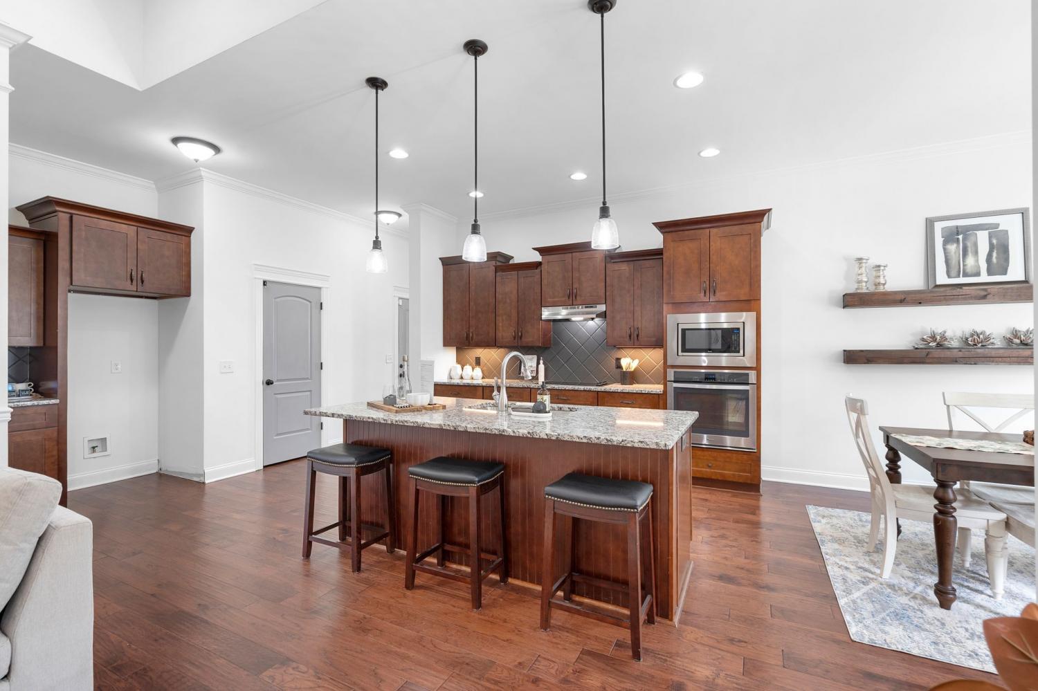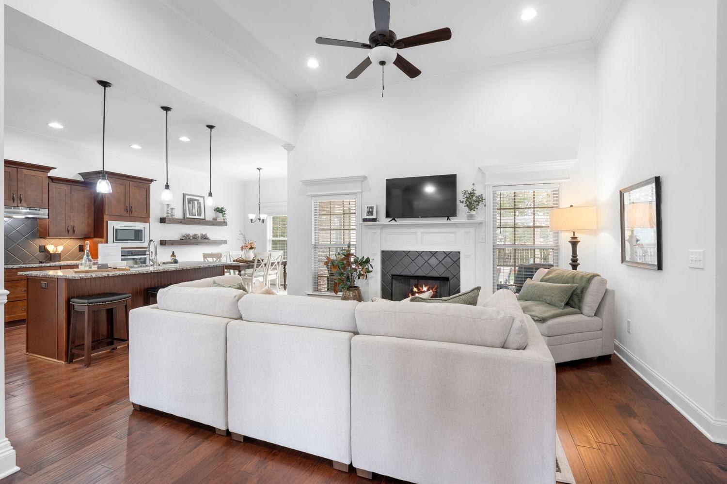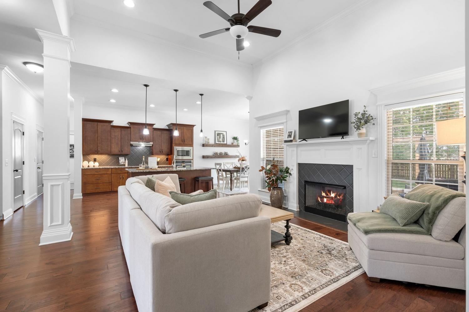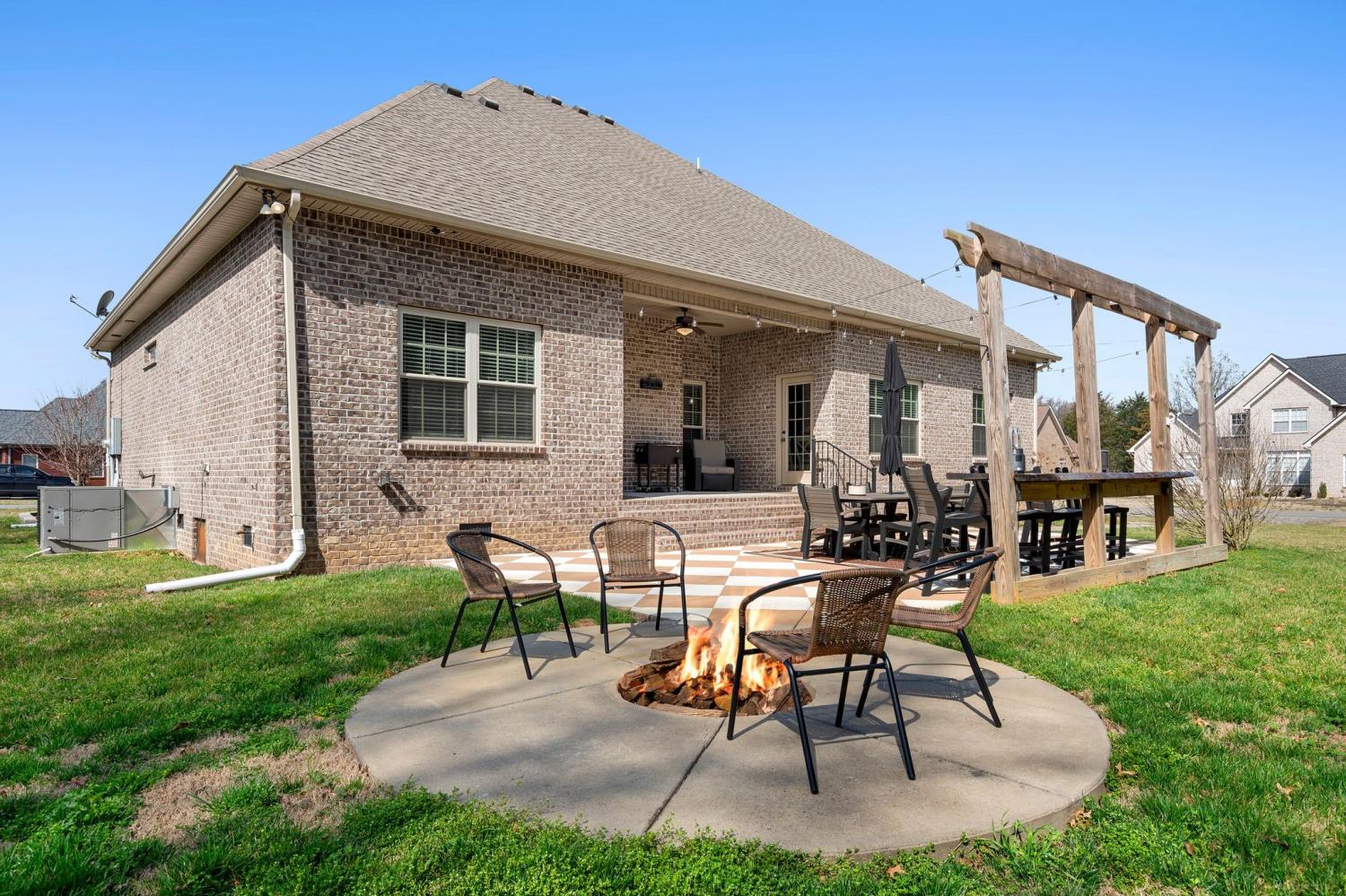This one is exciting! Situated on a large, private corner lot at the end of a quiet dead-end street in desirable Triple Crown Farms community, 4424 Thoroughbred Ln offers over 2900 square feet of space, upgrades, and an incredible outdoor setting— plus low county taxes and NO city taxes. This spacious home offers 4-bedrooms, 3 bathrooms, (two bedrooms on the main level) The primary suite is on the main level and has a fully remodeled en-suite showcasing a stunning dual walk-in shower for a true spa-like experience. The kitchen is designed to impress with upgraded cabinetry featuring soft-close drawers and doors, a cooktop, built-in microwave and oven, and a large island with additional seating — perfect for entertaining or casual family meals. The open-concept layout flows seamlessly into the living room with a cozy gas fireplace. Just off the garage entrance, you’ll find a huge laundry room complete with a utility sink and storage cabinets — offering everyday convenience and the perfect drop zone space. Upstairs features two additional bedrooms, a full bath, and a spacious bonus room with a built-in entertainment area — ideal for movie nights, game days, or flexible living space. You’ll also love the ginormous floored walk-in storage room, providing incredible space for holiday décor, seasonal items, and long-term storage. Step outside to your private backyard oasis featuring a covered patio with an extended patio area and hardscaped built-in fire pit — perfect for year-round entertaining. Major system updates include a newer HVAC (2024) and new hot water heater (2025), giving buyers peace of mind. This home truly checks every box — location, layout, upgrades, and outdoor living **Seller is offering closing cost incentives with an acceptable offer.**