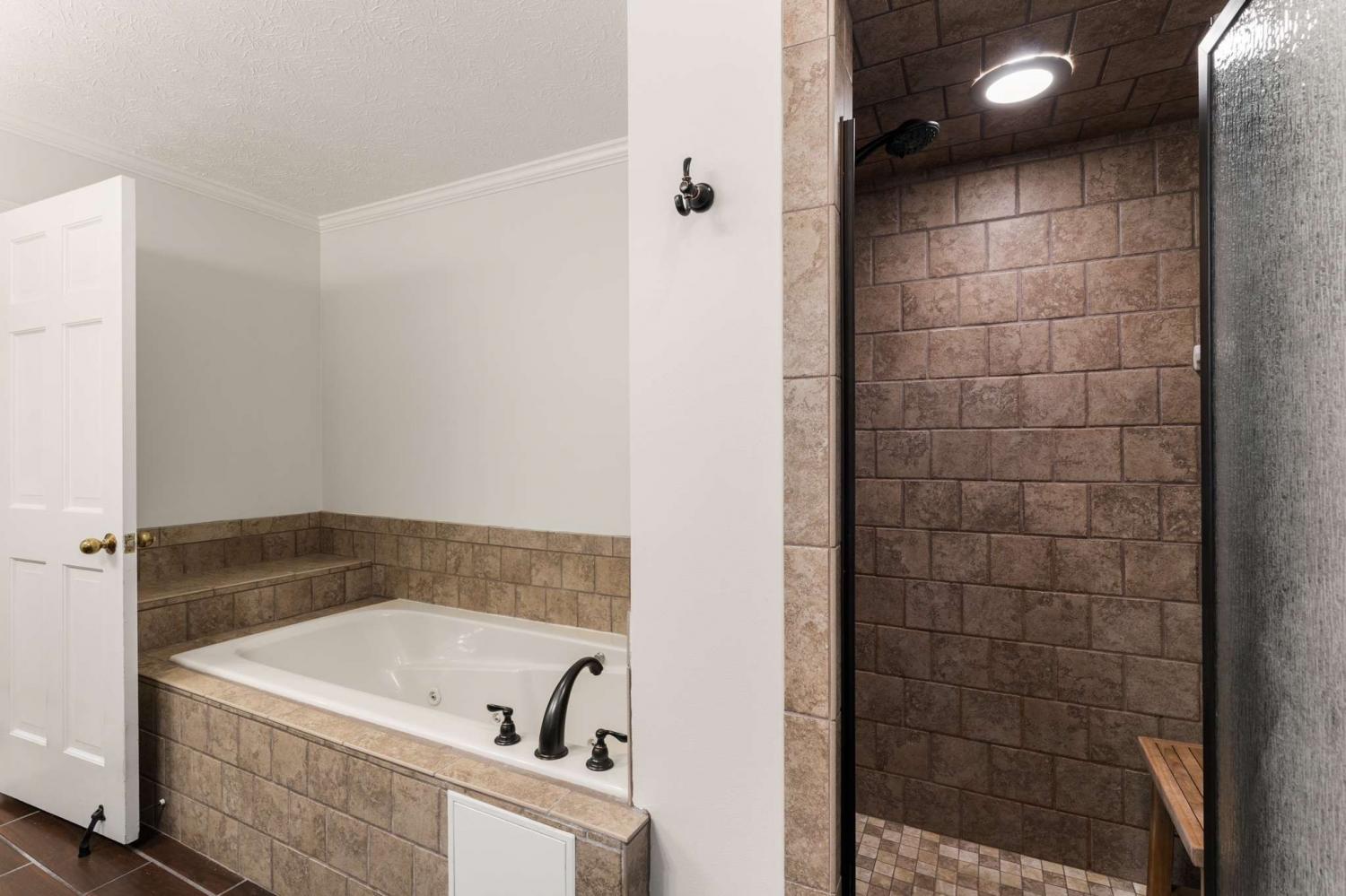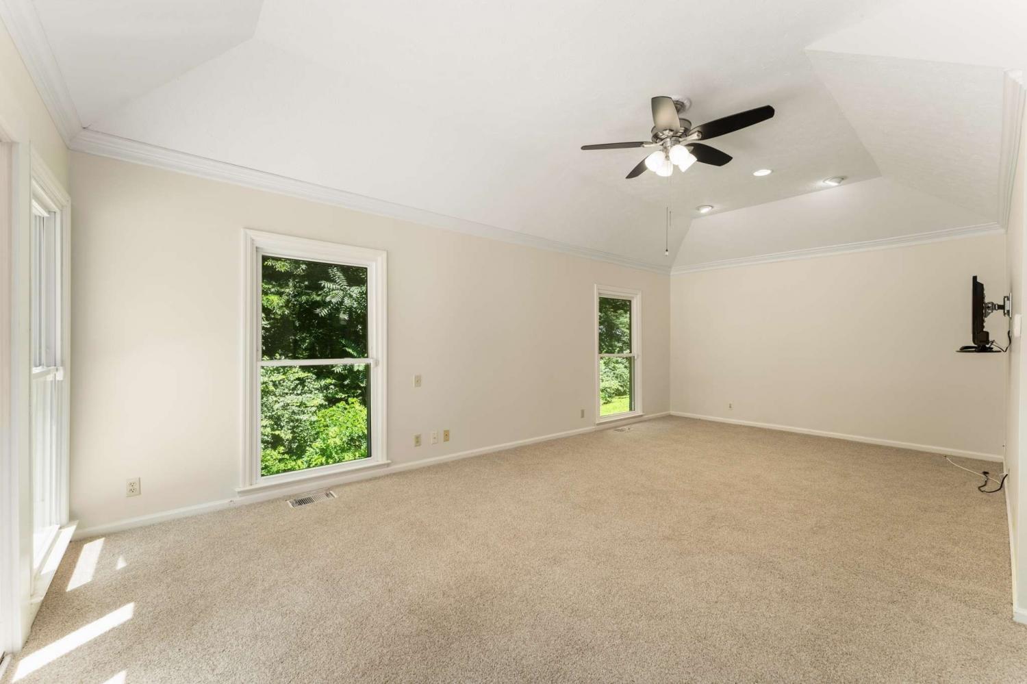 Discover the perfect blend of privacy and convenience in this gated home nestled atop more than five forrested hillside acres. Enjoy the privacy of the woodland views with the advantage of being only minutes away from all the amenities the area has to offer. This beautifully designed home features 3 spacious bedrooms and 2 full bathrooms. The open-concept eat-in kitchen flows seamlessly into the great room, creating an ideal space for entertaining and everyday living. Upstairs, you'll find a versatile bonus area perfect for a second living room, office, or playroom. The primary suite offers a large walk-in closet, laundry area, and direct access to the outdoors. New carpet and freshly painted throughout. Step into the sunroom and out onto a spacious deck overlooking the pool and lush greenery. With a large cleared area full of possibility, make this your own personal retreat.
