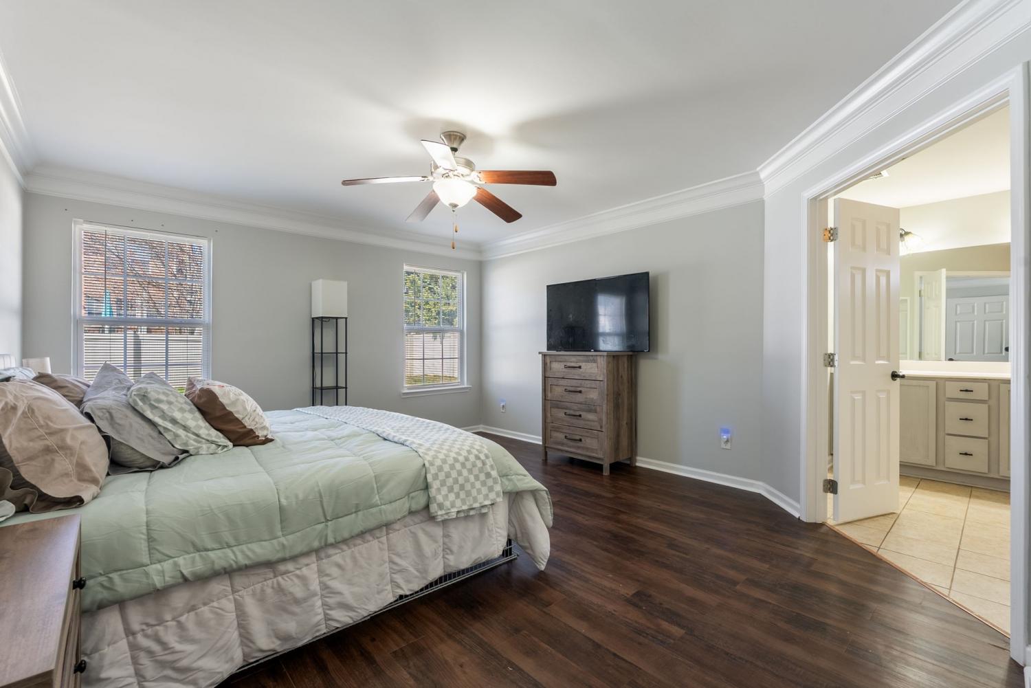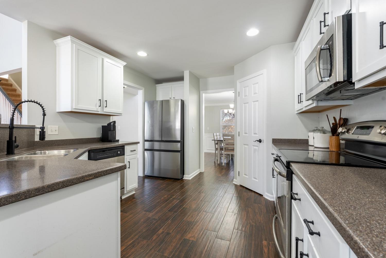 Welcome to 5037 Saint Ives in Murfreesboro, located in the highly sought-after Triple Blackman school zone and just minutes from everything you need. This spacious 4-bedroom, 2.5-bath home offers a functional layout with the primary suite conveniently located on the main floor. Downstairs features beautiful flooring throughout with no carpet, creating a clean, modern feel and easy maintenance. The inviting living room centers around a cozy wood-burning fireplace, perfect for relaxing evenings at home. Upstairs, you’ll find generously sized secondary bedrooms and flexible space for family, guests, or a home office. Step outside to a fully fenced backyard, ideal for pets, play, or entertaining. The neighborhood amenities elevate everyday living with access to 2 community pools, a playground, a pavilion, and a basketball court, giving you resort-style perks right at home. Located within 5 minutes of major shopping, dining, and everyday conveniences, this home offers the perfect blend of comfort, location, and lifestyle.