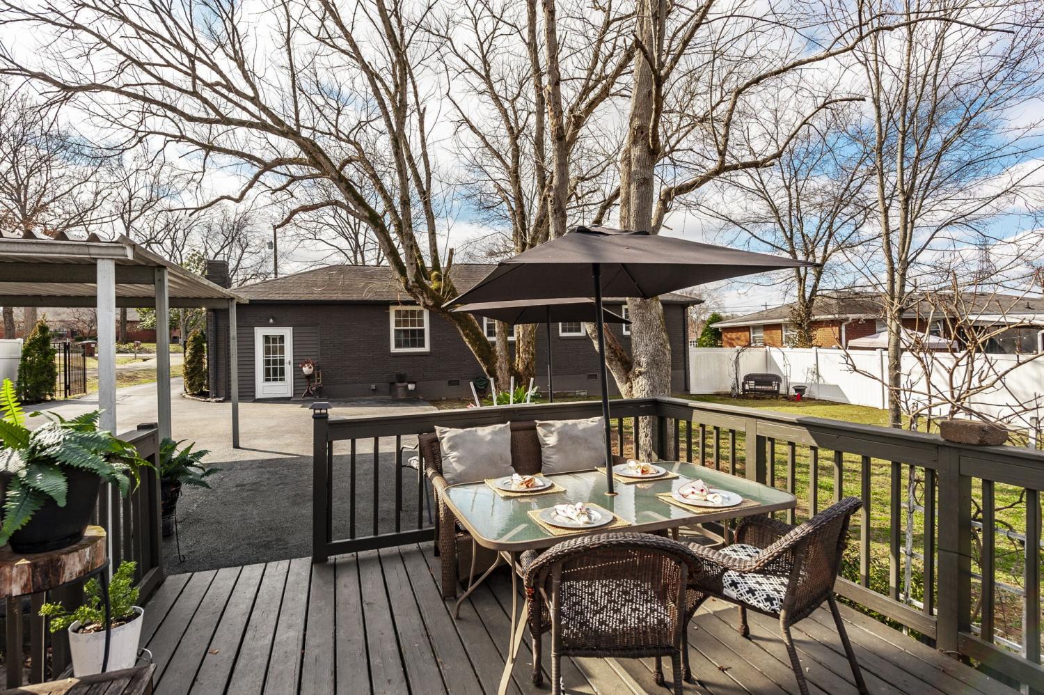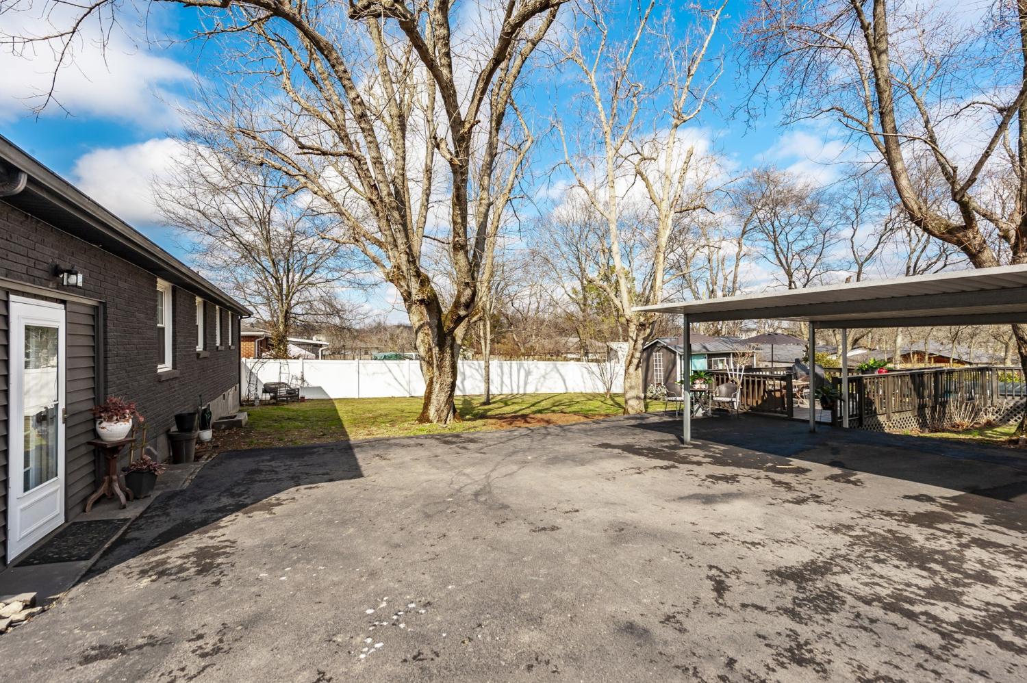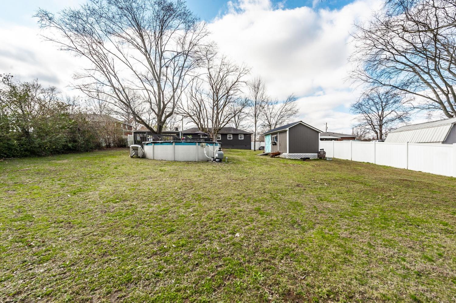 Welcome home to this beautifully updated brick ranch offering timeless curb appeal and thoughtful upgrades inside and out. With 3 bedrooms and 1 full bath, this move-in ready home blends classic charm with modern improvements, all set on a stunning 0.42-acre lot. From the moment you arrive, you’ll notice the attention to detail. The exterior features fresh house paint, custom designed and built shutters, and a custom mailbox that adds character and charm. A paved driveway leads to the carport for convenient covered parking. The property is fully fenced with a privacy fence and entry gate, creating a secure and peaceful backyard setting. A full home gutter guard system adds long-term value and low-maintenance protection. Step inside to a spacious living room filled with natural light — perfect for gathering or relaxing. The kitchen has been beautifully upgraded with granite countertops, a brick backsplash, and a custom designed and built hood that serves as a stunning focal point. LVT flooring flows through the kitchen and dining area, offering durability and style. The dining room can easily function as a flex space — ideal for a home office, playroom, or additional living area depending on your needs. A custom designed and built pantry provides exceptional storage, and the walk-in laundry room adds everyday convenience. Additional interior upgrades include hallway cove lighting and recessed lighting in the primary bedroom. Outdoor living is just as impressive. Enjoy the deck overlooking the backyard and cool off in the 18’ round above-ground pool — perfect for summer entertaining. Two storage buildings (16x20 and 10x12 with an added extension) provide incredible space for hobbies, tools, or workshop needs. Even the crawl space has been improved with updated ductwork, a vapor barrier with moisture sump pump, and humidifier vents — giving added peace of mind. This home truly offers comfort, function, and thoughtful upgrades at every turn.
