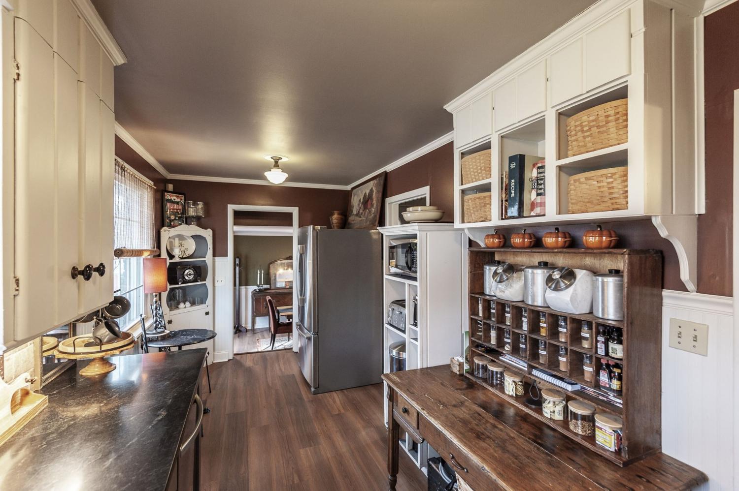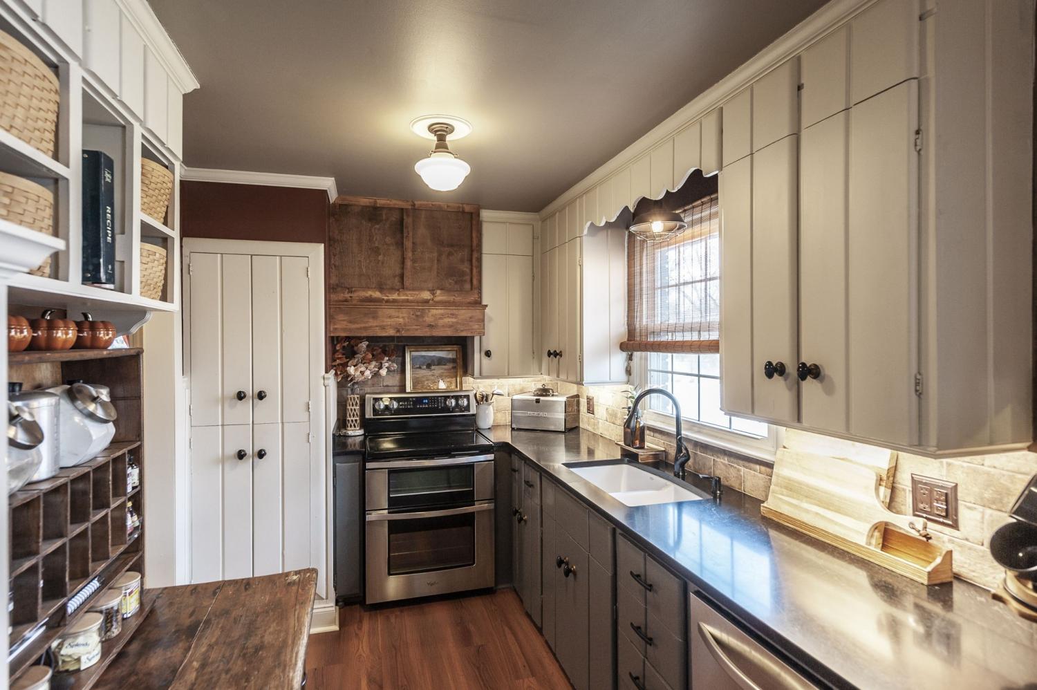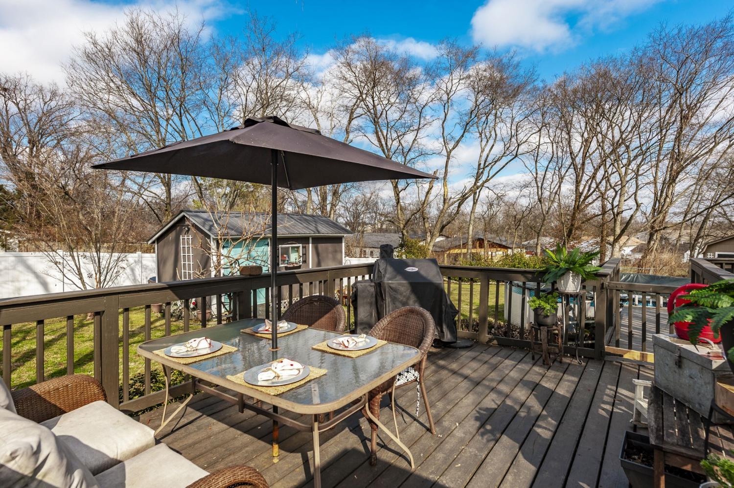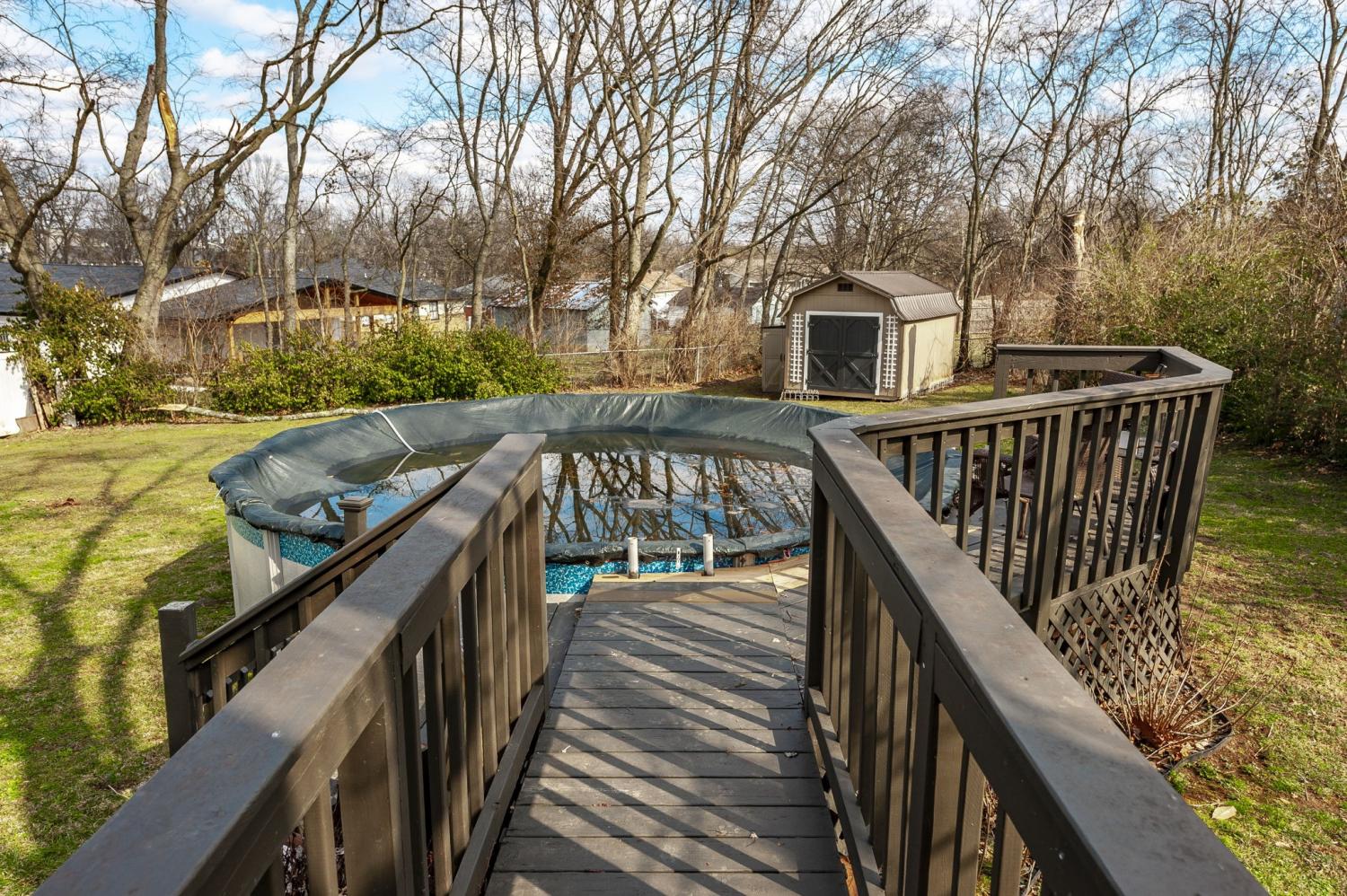 Welcome home to this beautifully updated brick ranch offering timeless curb appeal and thoughtful upgrades inside and out. With 3 bedrooms and 1 full bath, this move-in ready home blends classic charm with modern improvements, all set on a stunning 0.42-acre lot. From the moment you arrive, you’ll notice the attention to detail. The exterior features fresh house paint, custom designed and built shutters, and a custom mailbox that adds character and charm. A paved driveway leads to the carport for convenient covered parking. The property is fully fenced with a privacy fence and entry gate, creating a secure and peaceful backyard setting. A full home gutter guard system adds long-term value and low-maintenance protection. Step inside to a spacious living room filled with natural light — perfect for gathering or relaxing. The kitchen has been beautifully upgraded with granite countertops, a brick backsplash, and a custom designed and built hood that serves as a stunning focal point. LVT flooring flows through the kitchen and dining area, offering durability and style. The dining room can easily function as a flex space — ideal for a home office, playroom, or additional living area depending on your needs. A custom designed and built pantry provides exceptional storage, and the walk-in laundry room adds everyday convenience. Additional interior upgrades include hallway cove lighting and recessed lighting in the primary bedroom. Outdoor living is just as impressive. Enjoy the deck overlooking the backyard and cool off in the 18’ round above-ground pool — perfect for summer entertaining. Two storage buildings (16x20 and 10x12 with an added extension) provide incredible space for hobbies, tools, or workshop needs. Even the crawl space has been improved with updated ductwork, a vapor barrier with moisture sump pump, and humidifier vents — giving added peace of mind. This home truly offers comfort, function, and thoughtful upgrades at every turn.
