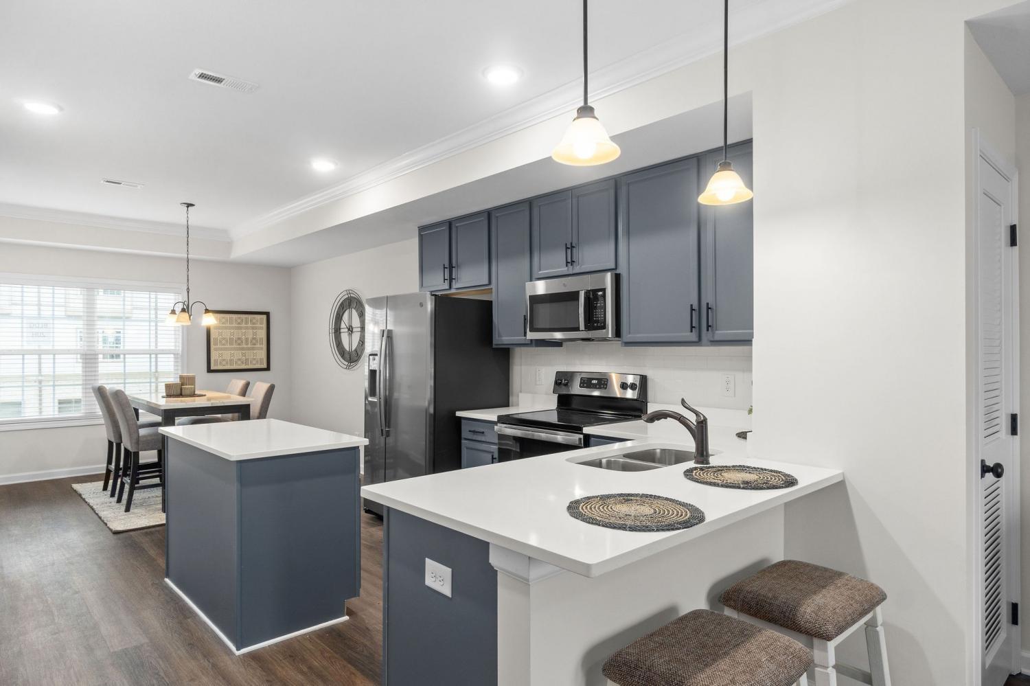 **1ST TWO WEEKS FREE RENT!** 3 Large bedrooms, 3 1/2 baths, 1 car garage, large living room with access to a raised deck! Separate dining area next to the kitchen that hosts granite counter tops & brand new appliances! 2 Mature crate kept pets 70 LBS. or less are welcome!!! Pet fees and restrictions apply. **All pictures of Apartments, Townhomes, and Condos are for display purposes only and do not guarantee that the unit available will be set up or designed as such due to remodels and updates performed on each unit as needed OR units reflecting multiple doors. *Free rent with 18 month lease