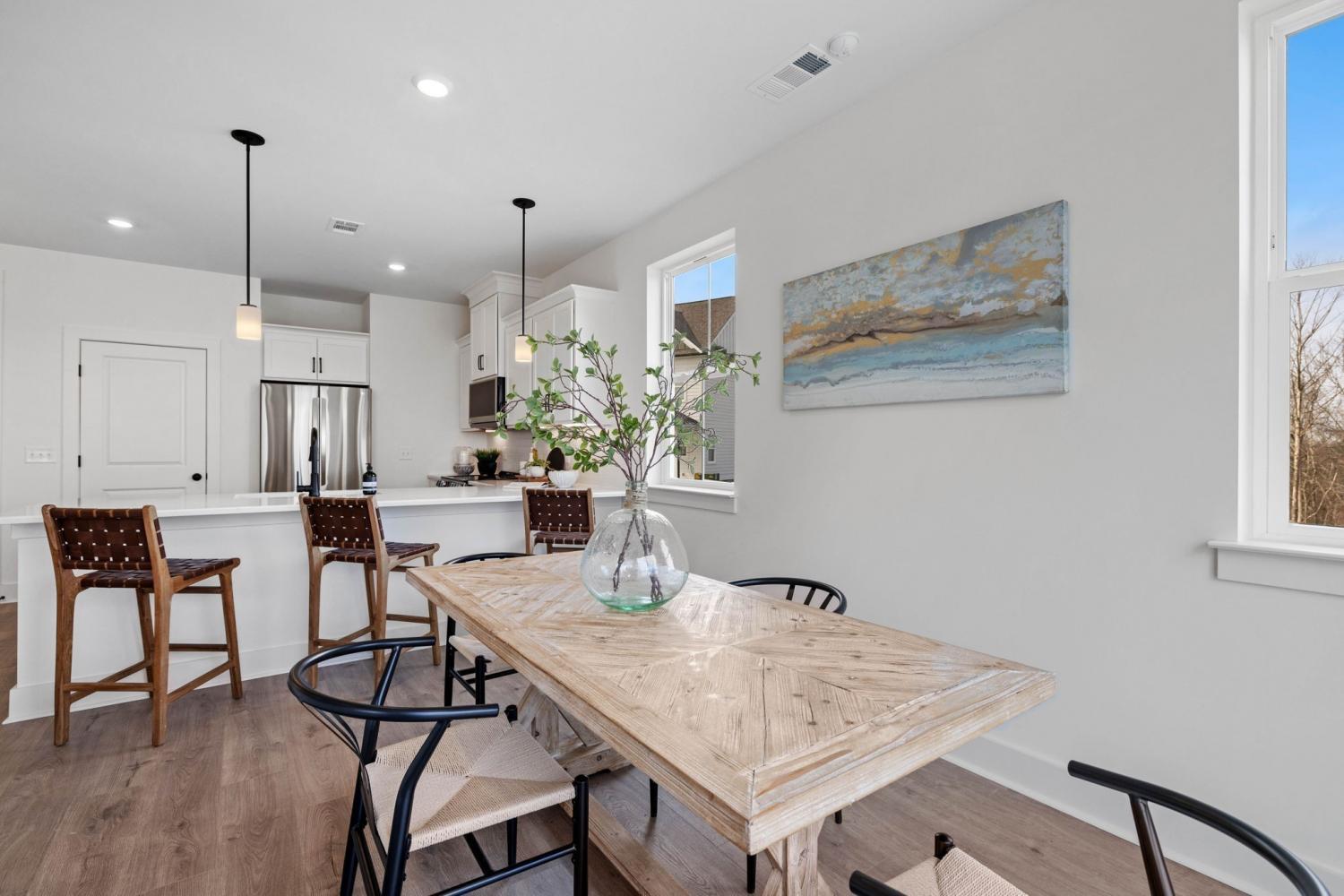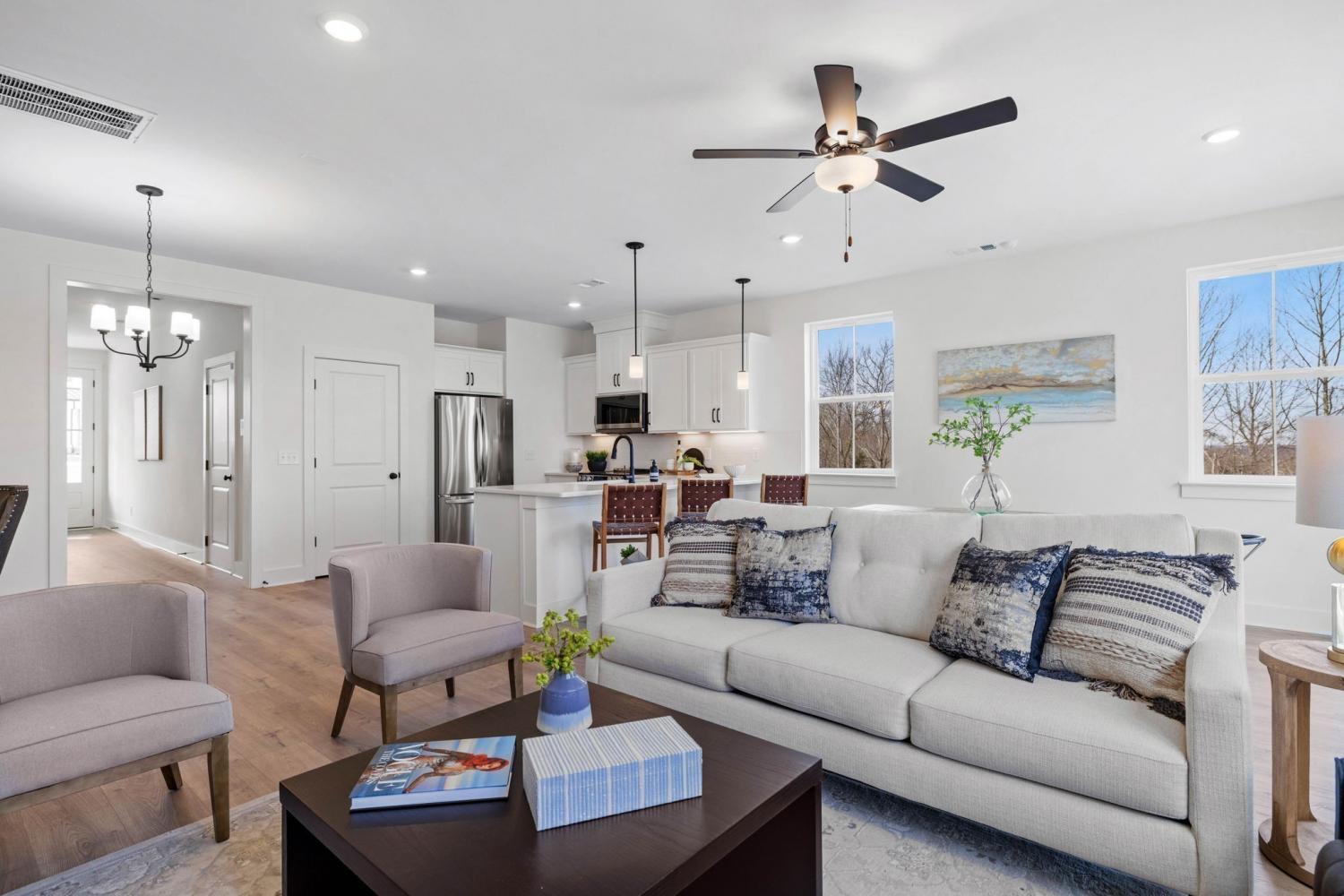 FINAL PHASE! Gatlinburg-style views just 20 mins from West End! Welcome to Ridgecrest at Riverwalk—a scenic view new construction community. This luxury townhome features a huge owner’s suite w/ walk-in closet & oversized tile shower, open concept living, and a finished attached garage. The kitchen includes quartz counters, soft-close cabinets (made in TN!), and generous counter space open to the living & dining areas—perfect for entertaining or a home office setup. Enjoy beautiful hard surface flooring, natural light, and upgraded finishes throughout. Community perks: 3 pools, walking trails, playground, and a greenway along the river. Ridgecrest offers the best of Bellevue—nature, luxury, and convenience all in one!