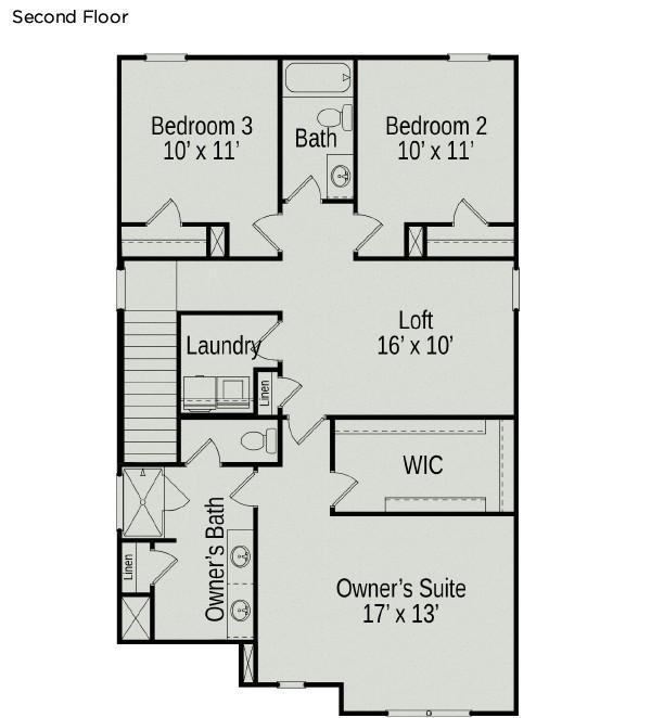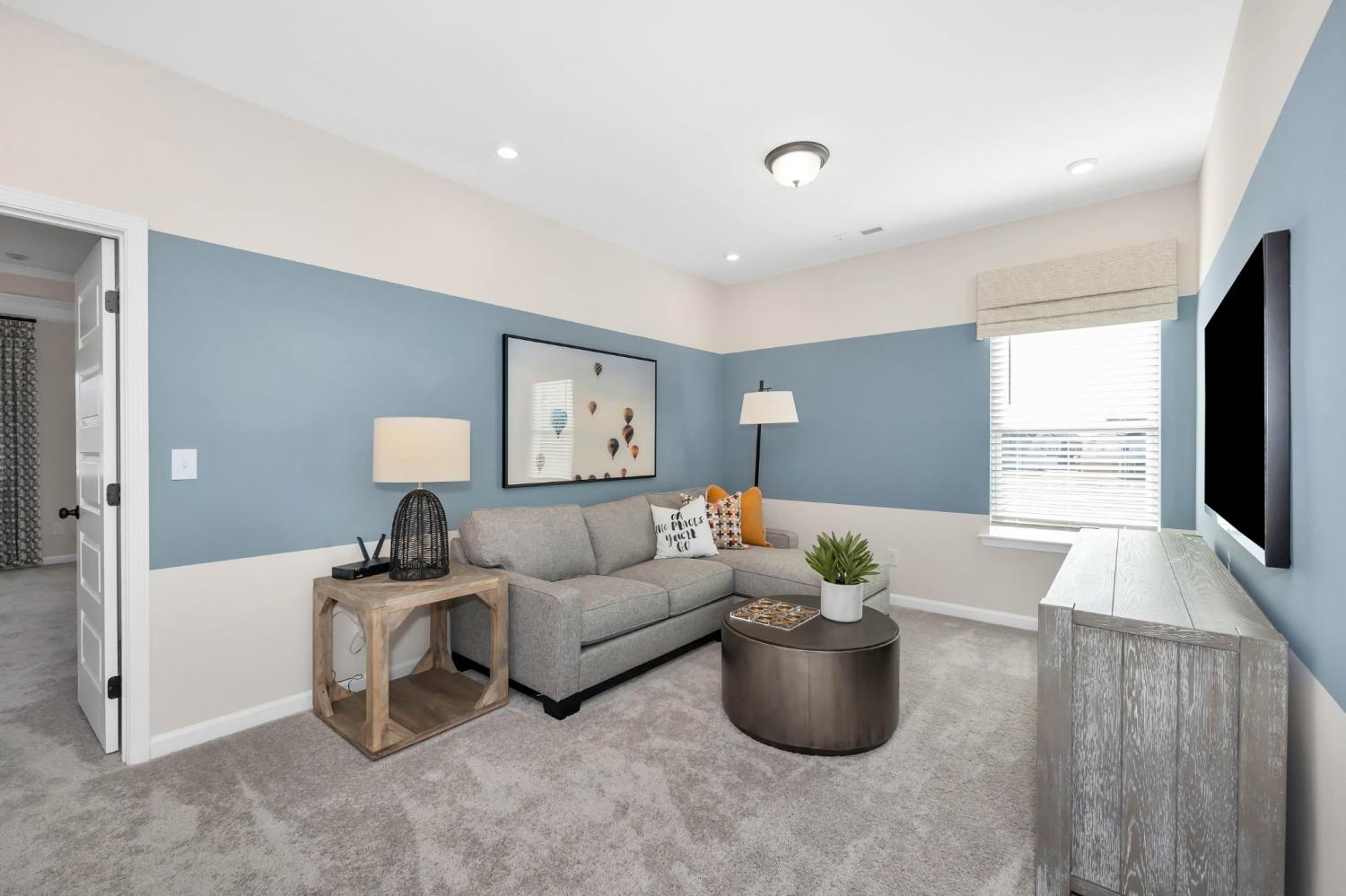 The Braselton II at The Groves of Chapel Hill by Smith Douglas Homes. The Braselton II has a rear corner covered patio directly accessible from the light-filled family room. A large eat-in island kitchen overlooks the family room for easy entertaining. On the second floor, you can option the spacious loft to a fourth bedroom, which separates the private owner's suite from two secondary bedrooms. The owner's suite includes a massive walk-in closet and private bath and has easy access to the second-floor laundry room. To be built home. Photos are representative. Contact listing agent for details.
