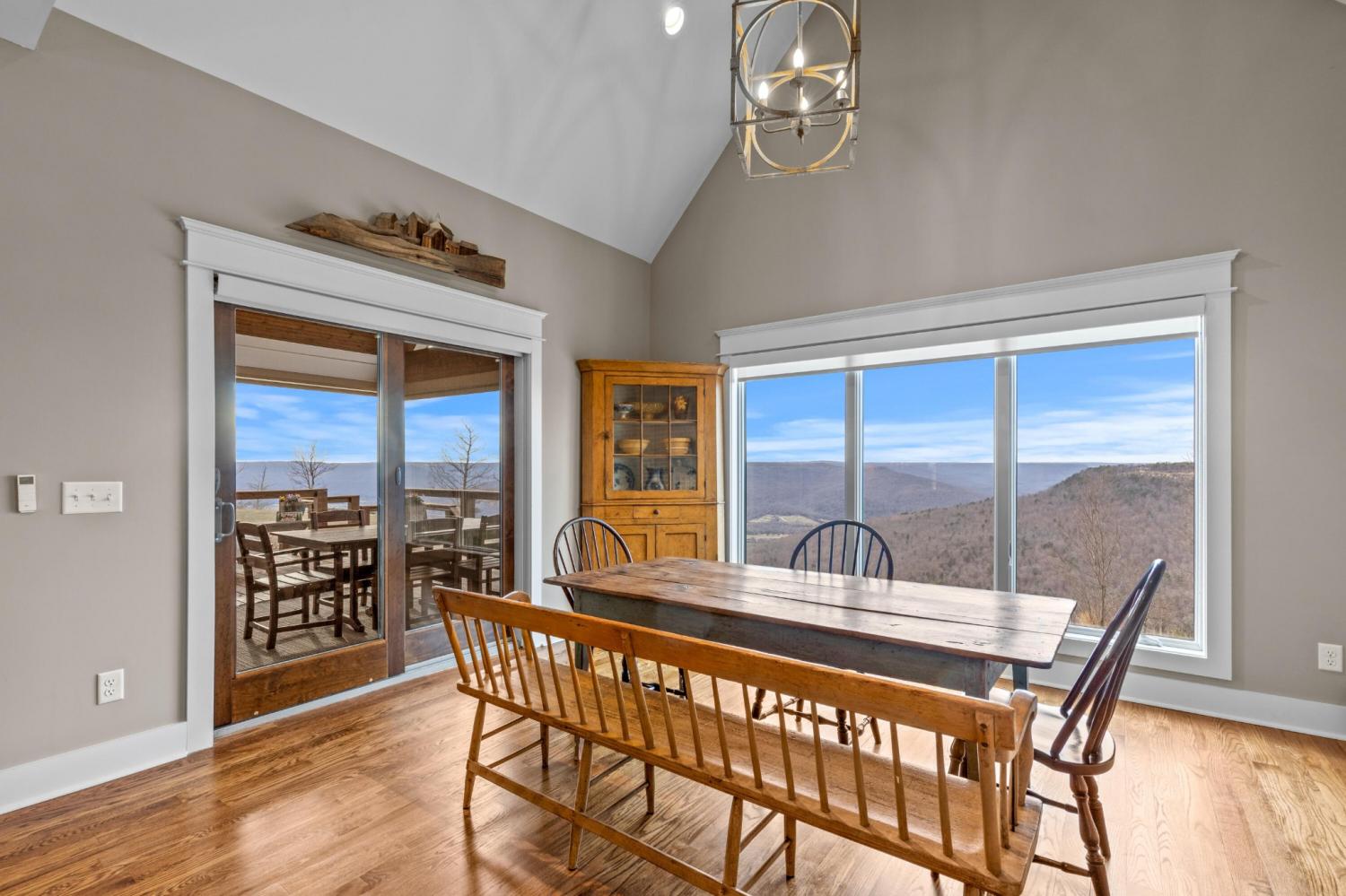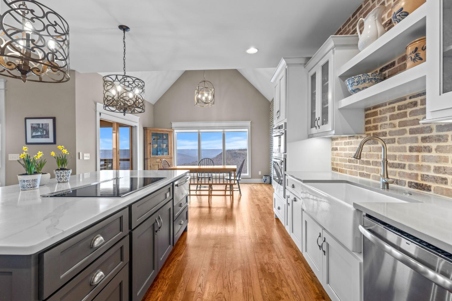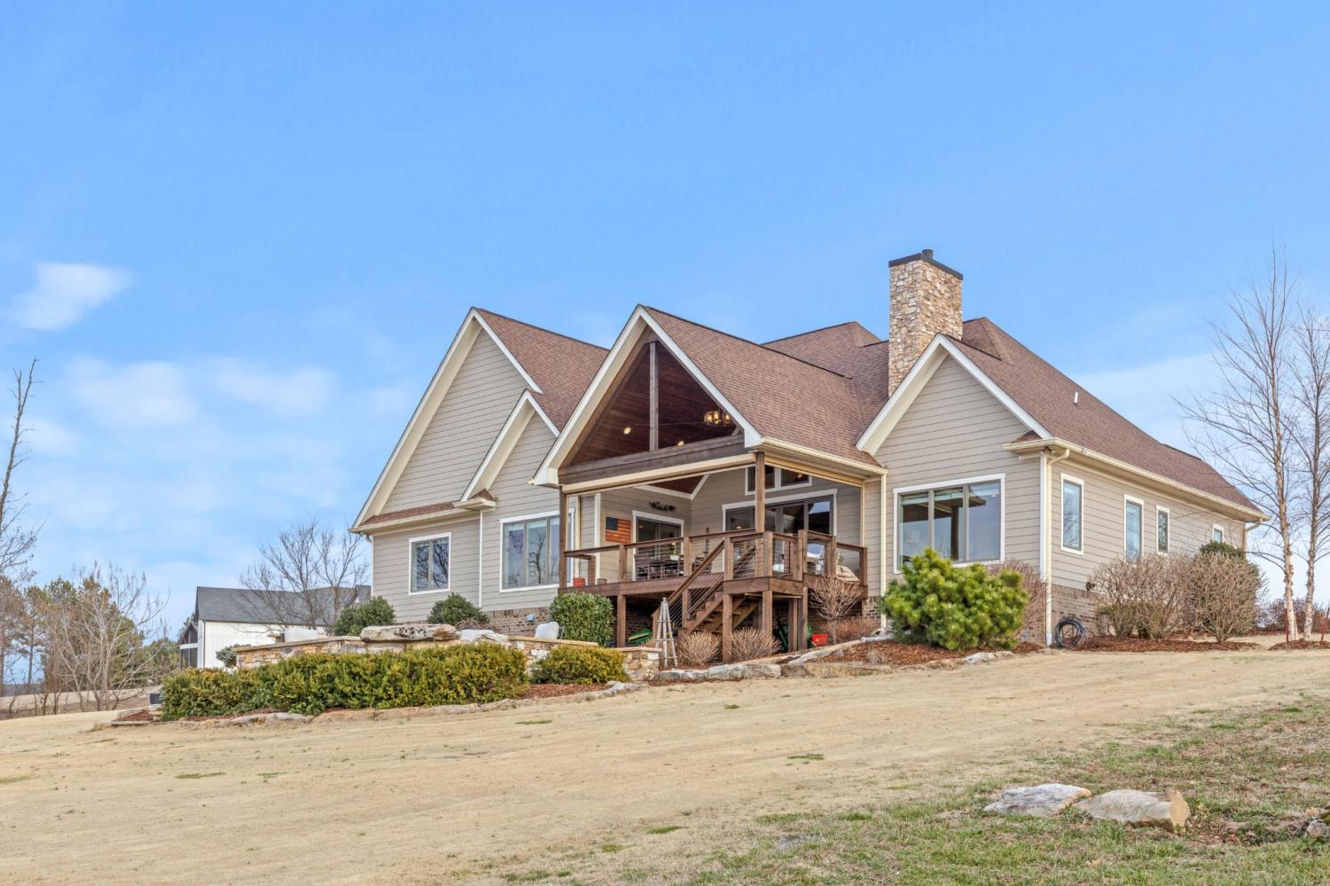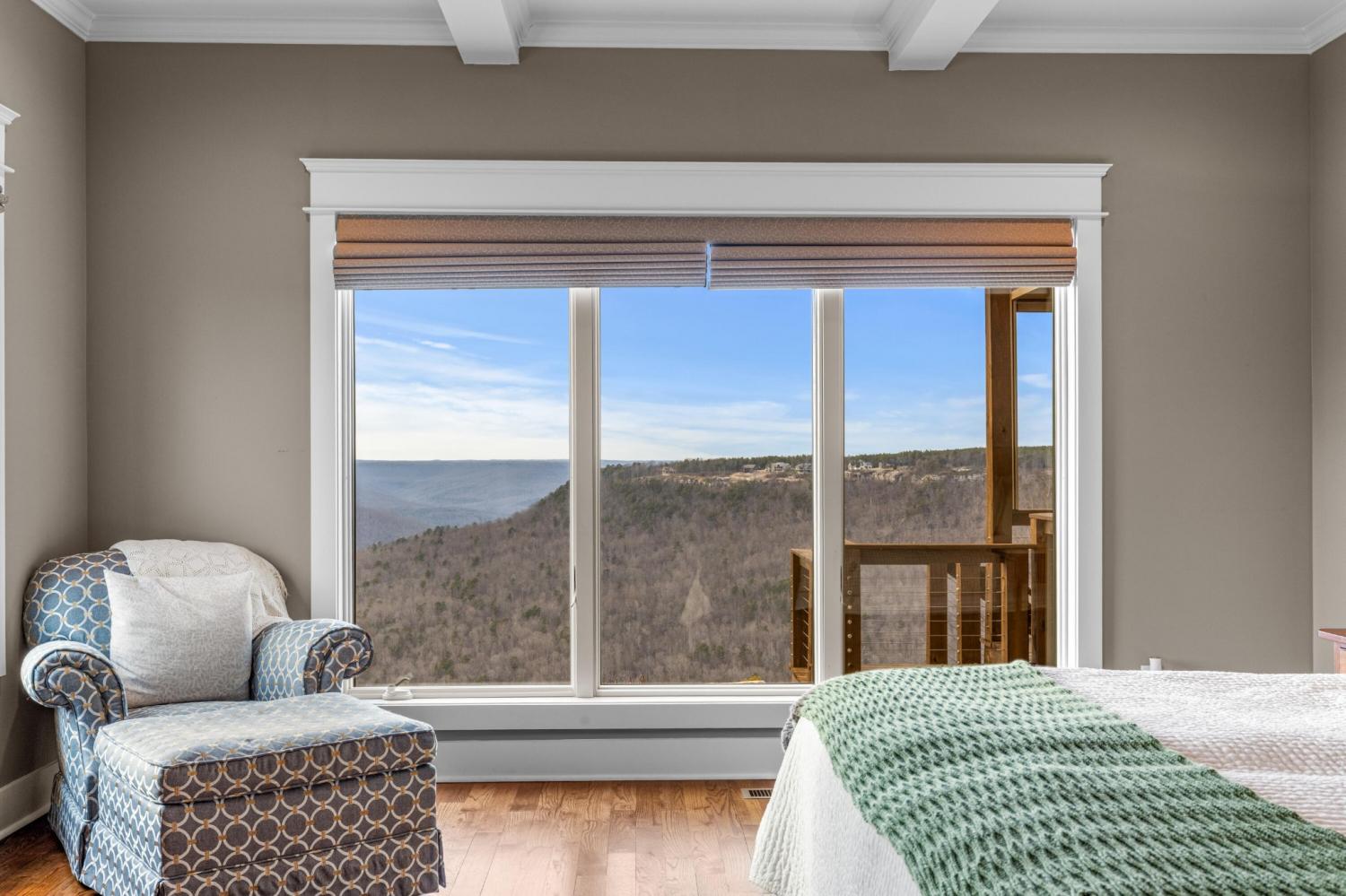 Endless Mountain Views from a Quiet Bluff Retreat Extraordinary Bluff Estate | 325+ Ft Brow Frontage, Quiet Mountain Setting, 1.8 Acres, Sweeping Plateau & Valley Views Perched along one of the most coveted bluff lines in Jasper Highlands, 985 Sunset Circle offers a rare opportunity to experience luxury mountain living on 1.8 private acres with over 325 feet of exceptional brow frontage on a quiet mountain peninsula. From this extraordinary vantage point, breathtaking panoramic views unfold across the Cumberland Plateau and deep into the Sequatchie Valley, creating a dramatic landscape of rolling mountains, expansive skies, and unforgettable sunsets. Uniquely positioned on the brow, the property enjoys both inspiring sunrises and spectacular sunsets, filling the home with ever-changing mountain light throughout the day. Thoughtfully designed to capture the scenery, inspiring mountain views are enjoyed from many of the home's primary living spaces, creating a constant connection to the surrounding landscape. Designed to embrace its spectacular setting, the home features multiple outdoor living spaces positioned to capture the remarkable bluff views. Just off the living room, a covered bluff-side deck provides an elevated vantage point for enjoying the surrounding mountains and valley below. Vaulted hardwood ceilings and custom-designed motorized blinds create a comfortable setting for relaxing or entertaining while immersed in the scenery. Below the deck, a beautifully crafted flagstone patio offers an inviting outdoor retreat surrounded by the natural beauty of the bluff and enhanced by thoughtfully designed mature landscaping that complements the natural mountain setting. A dramatic gas fire pit crafted from locally sourced mountain rock creates the perfect setting for evening gatherings beneath the stars, while a custom cascading waterfall feature provides a striking natural centerpiece, its gentle flow adding a soothing soundtrack to this tranquil out