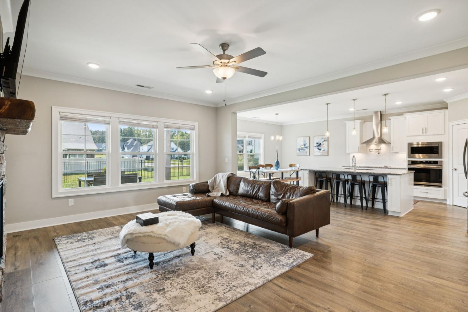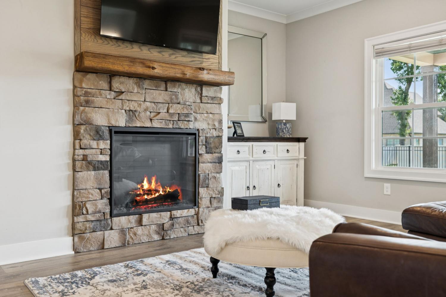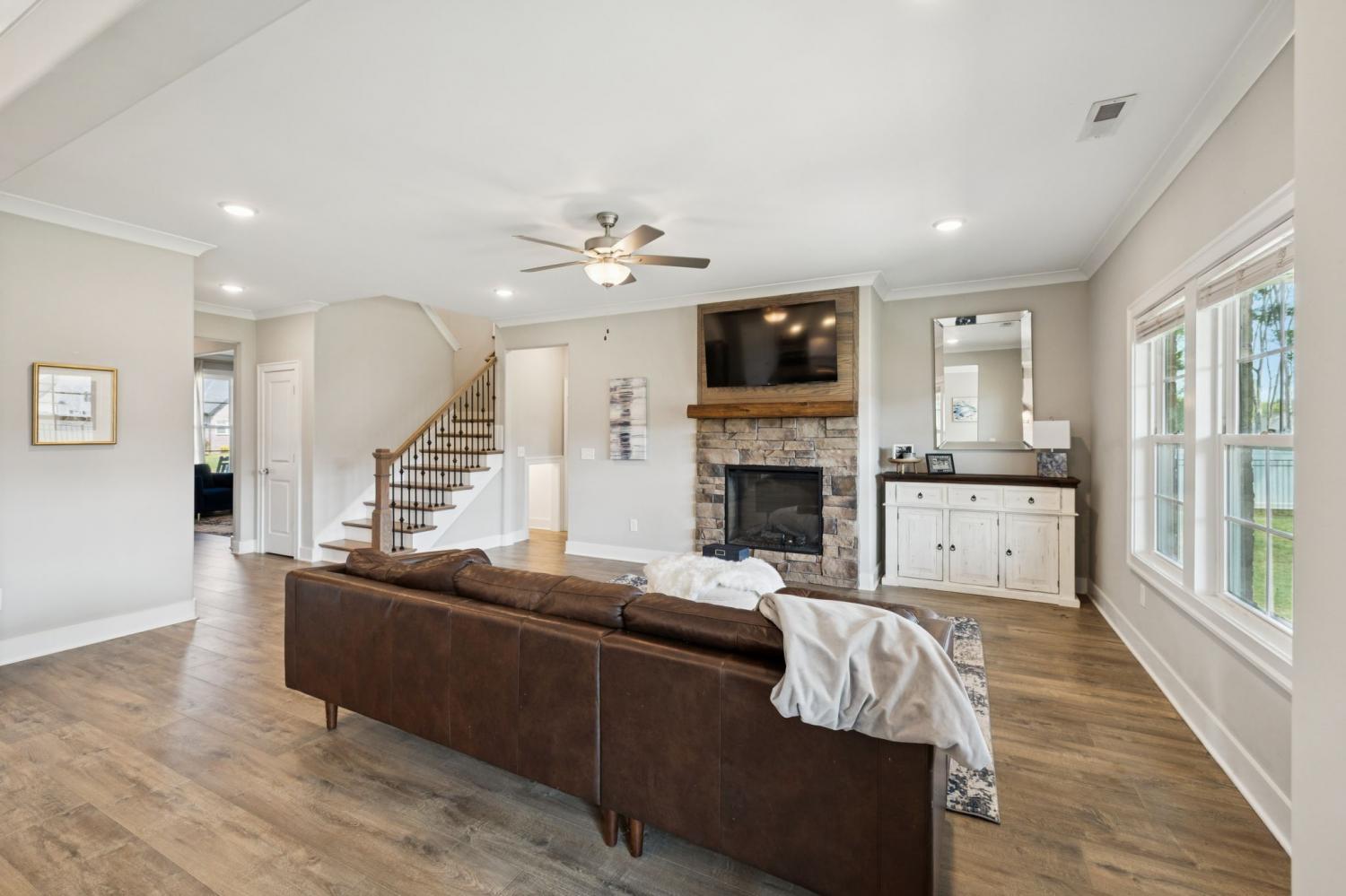 Welcome home to 7803 Santos Dr. in the highly sought-after Madison Cove neighborhood of Murfreesboro! This stunning all-brick home blends timeless curb appeal with modern design, featuring a covered front porch to greet your guests and a covered back patio overlooking the fenced backyard—perfect for outdoor living. Inside, you’ll find 4 bedrooms, 3.5 bathrooms, and a spacious bonus room, offering plenty of space for family and entertaining. The primary suite on the main level is a true retreat with a custom closet and a beautiful coffered ceiling, while the spa-like bath provides comfort and elegance. Upstairs, three additional bedrooms and the bonus room create the ideal layout for kids, guests, or a second living space. The heart of the home is the gourmet kitchen, complete with a large island, granite countertops, stainless steel appliances, built-in oven and microwave, and an electric cooktop—designed for both everyday meals and holiday gatherings. The adjoining living room with a stone fireplace and plenty of natural light makes this the perfect spot to relax. A main-level office with custom built-ins is perfect for working from home. Everyday functionality shines with a mud bench/drop station just off the side-entry 3-car garage, plus a laundry room with custom cabinetry, extra folding space, and designer tile flooring. Seller has also installed an irrigation system and whole home water filtration system for comfort and reliability. From top to bottom, this home is filled with thoughtful details, modern upgrades, and inviting spaces. Don’t miss your chance to live in Madison Cove—schedule your showing today!