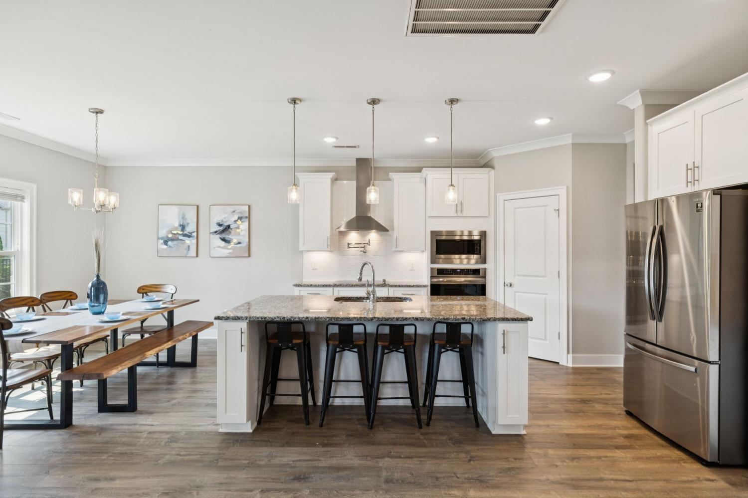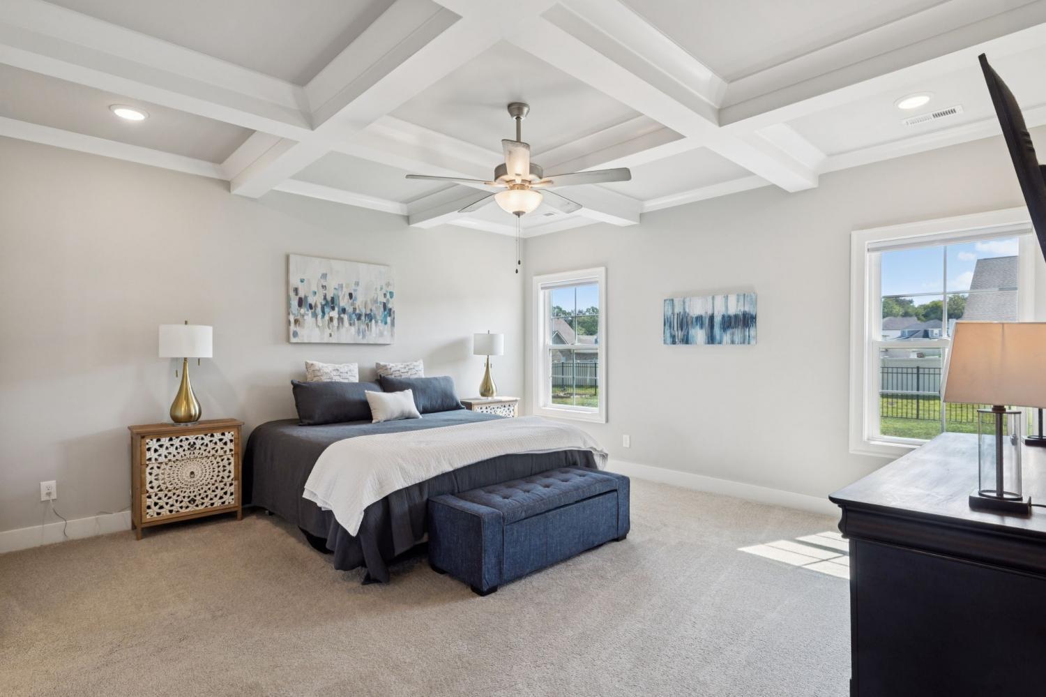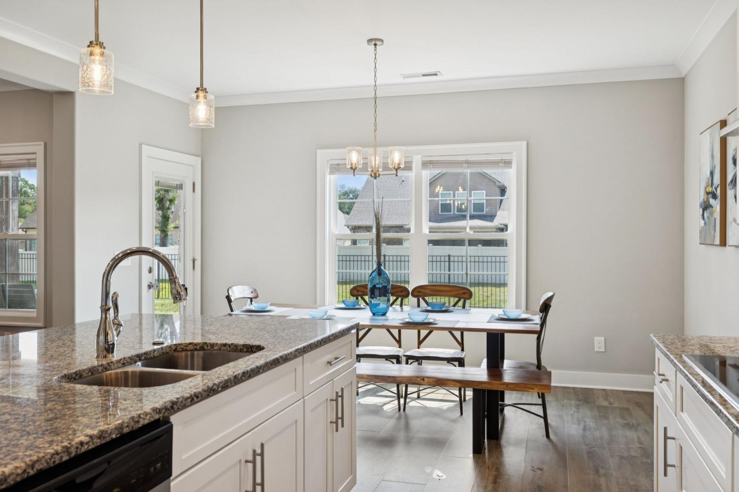 Welcome home to 7803 Santos Dr. in the highly sought-after Madison Cove neighborhood of Murfreesboro! This stunning all-brick home blends timeless curb appeal with modern design, featuring a covered front porch to greet your guests and a covered back patio overlooking the fenced backyard—perfect for outdoor living. Inside, you’ll find 4 bedrooms, 3.5 bathrooms, and a spacious bonus room, offering plenty of space for family and entertaining. The primary suite on the main level is a true retreat with a custom closet and a beautiful coffered ceiling, while the spa-like bath provides comfort and elegance. Upstairs, three additional bedrooms and the bonus room create the ideal layout for kids, guests, or a second living space. The heart of the home is the gourmet kitchen, complete with a large island, granite countertops, stainless steel appliances, built-in oven and microwave, and an electric cooktop—designed for both everyday meals and holiday gatherings. The adjoining living room with a stone fireplace and plenty of natural light makes this the perfect spot to relax. A main-level office with custom built-ins is perfect for working from home. Everyday functionality shines with a mud bench/drop station just off the side-entry 3-car garage, plus a laundry room with custom cabinetry, extra folding space, and designer tile flooring. Seller has also installed an irrigation system and whole home water filtration system for comfort and reliability. From top to bottom, this home is filled with thoughtful details, modern upgrades, and inviting spaces. Don’t miss your chance to live in Madison Cove—schedule your showing today!