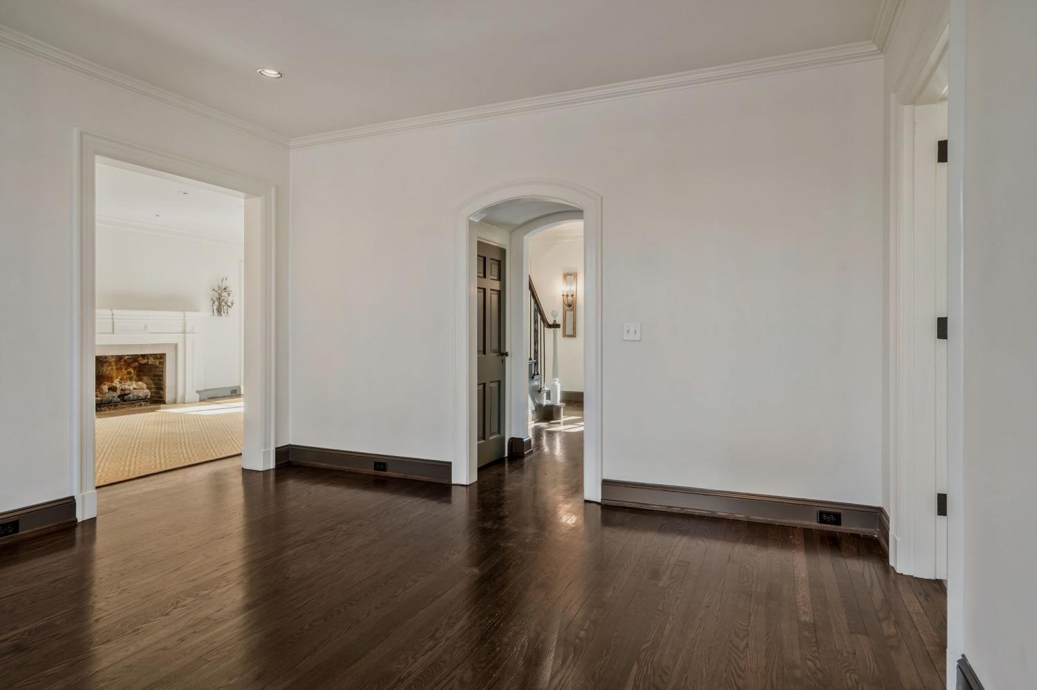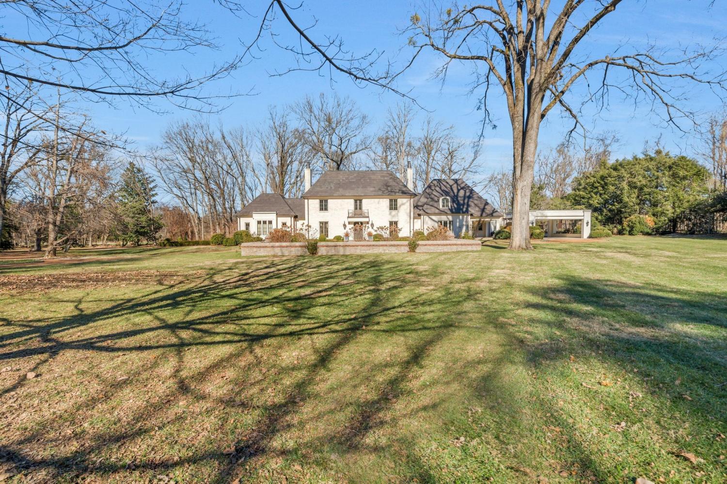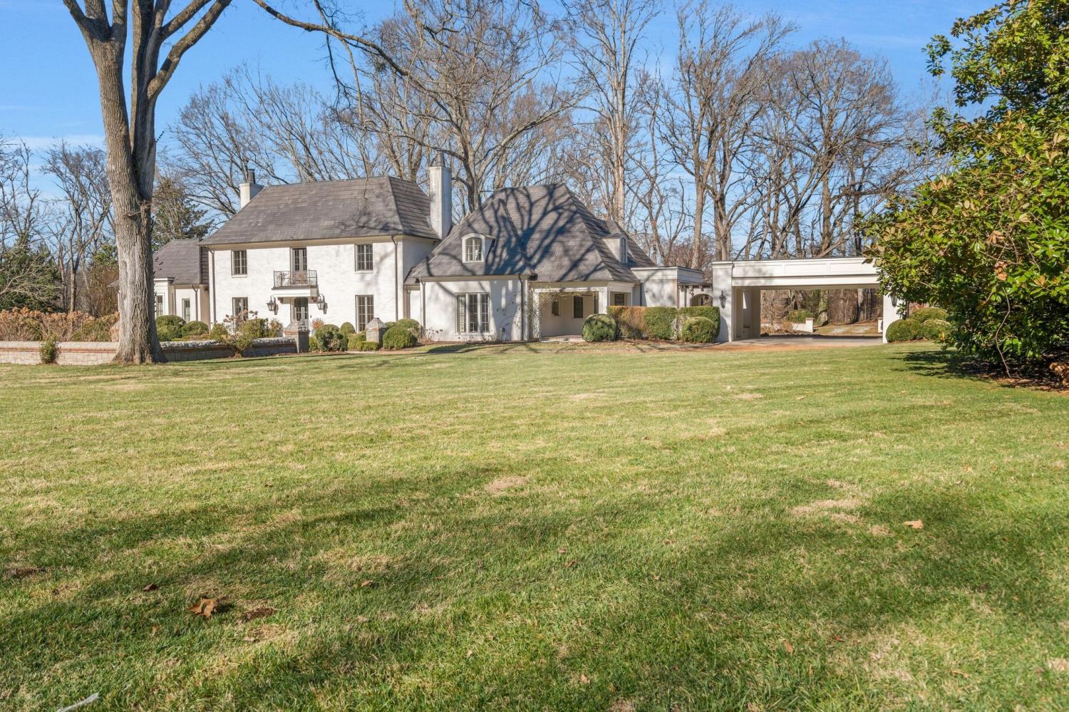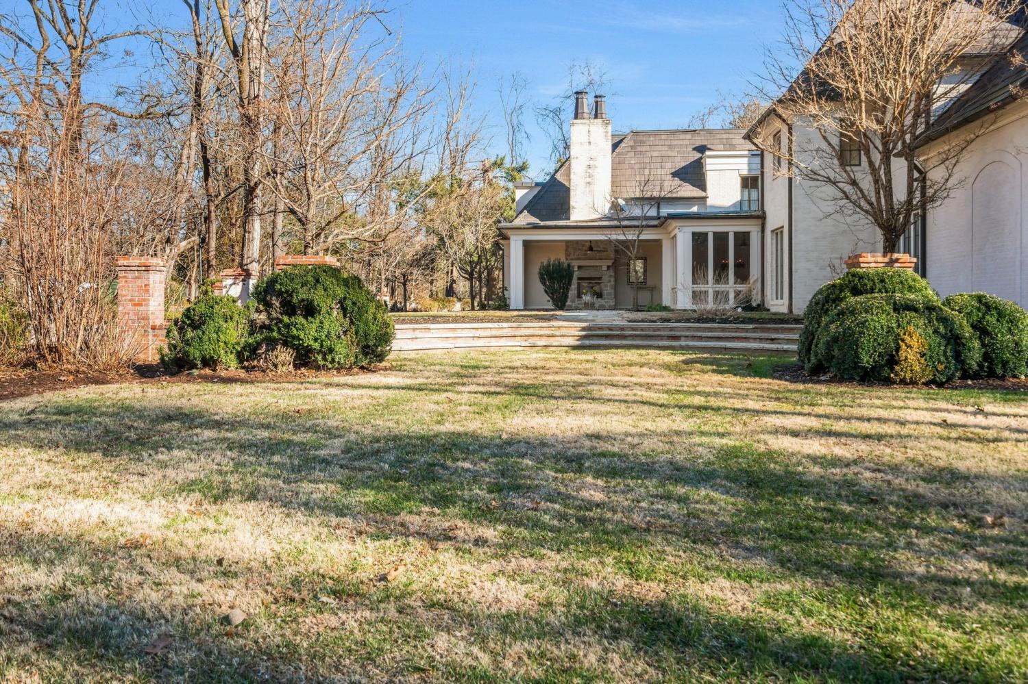 Beautiful executive home in the Oak Hill Nashville area, perfect for entertaining, situated on three acres just four miles from downtown Nashville. The property is a short drive from shopping areas in 12th South, Green Hills, and Brentwood, and only 15 minutes from BNA. The estate features a circular drive with ample parking, a portico, and a chef's kitchen complete with Sub-Zero, pot filler, and Lacanche Range with an adjacent laundry room. The primary bedroom on the main floor includes his-and-her grand baths and silk carpeting. Four bedrooms are en suite and accessible via a private rear staircase. Additionally, a Florida room and a covered patio and porch with stone fireplace overlook a private backyard that abuts the protected 40-acre Glen Leven Farm. Owner takes care of lawn care and maintenance.