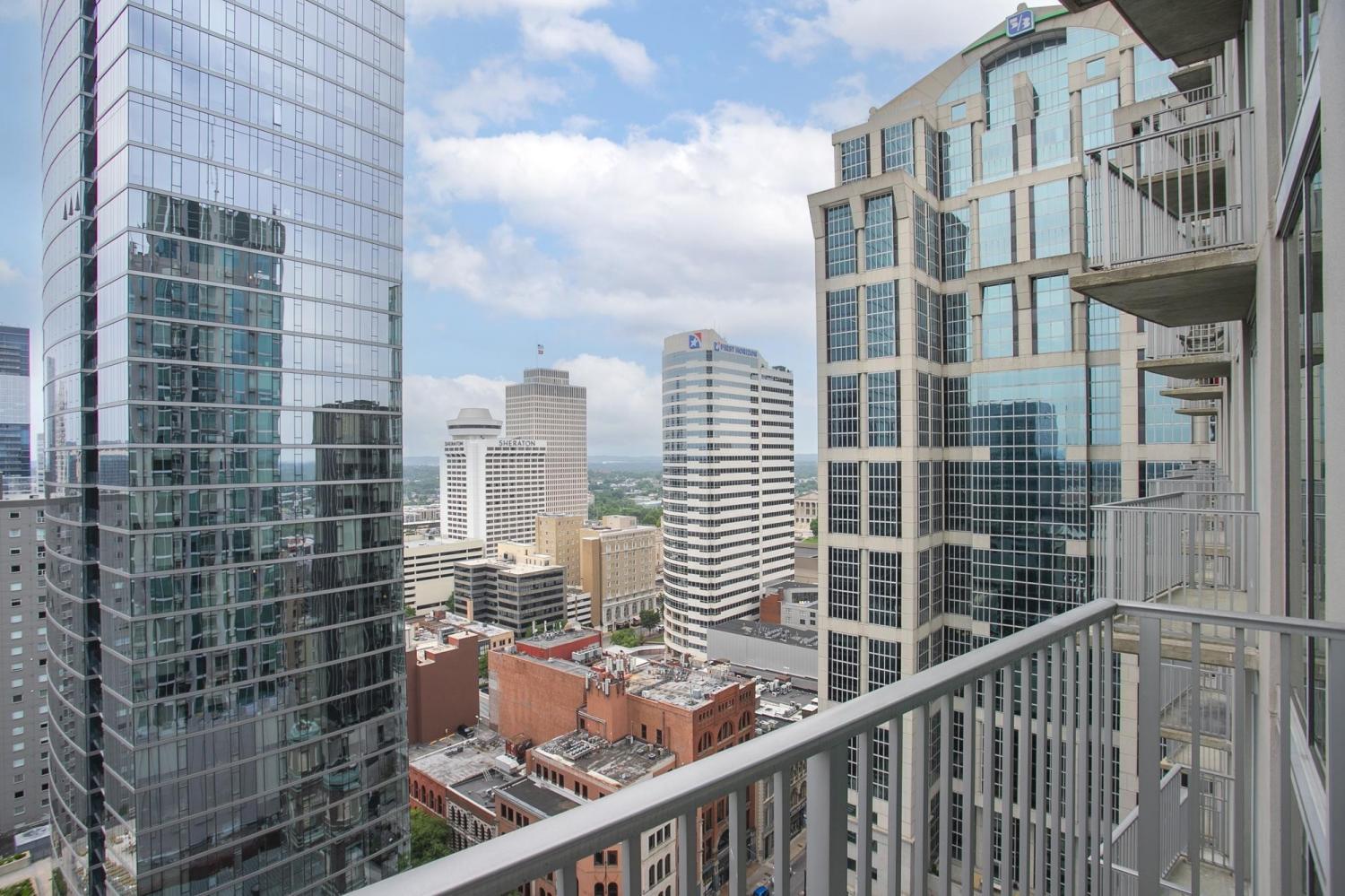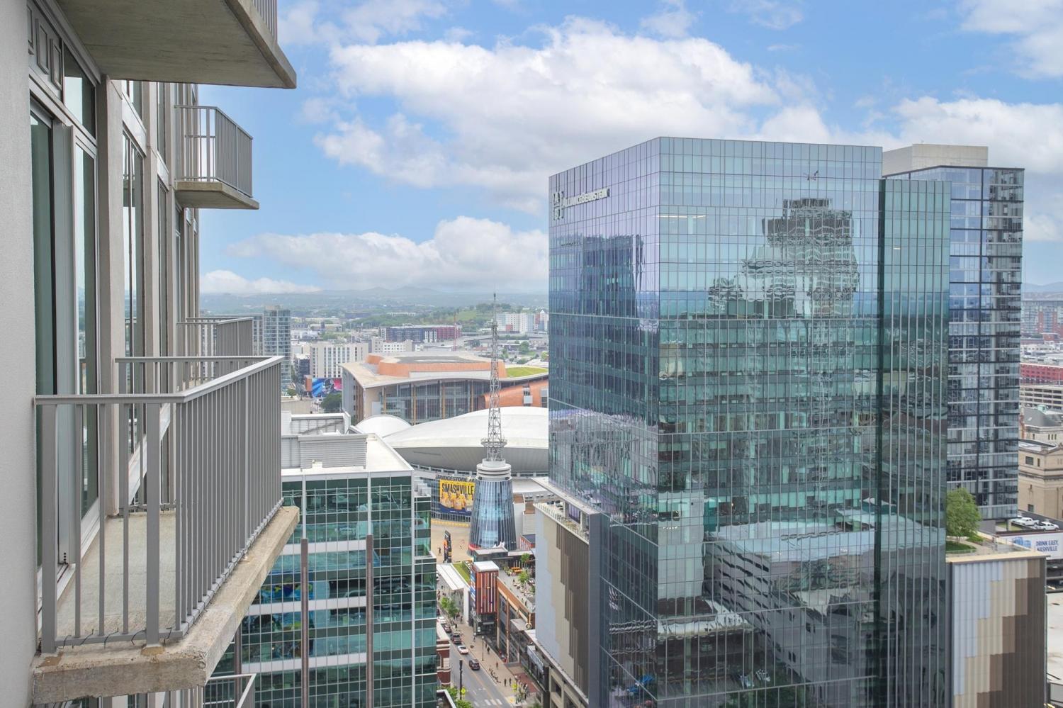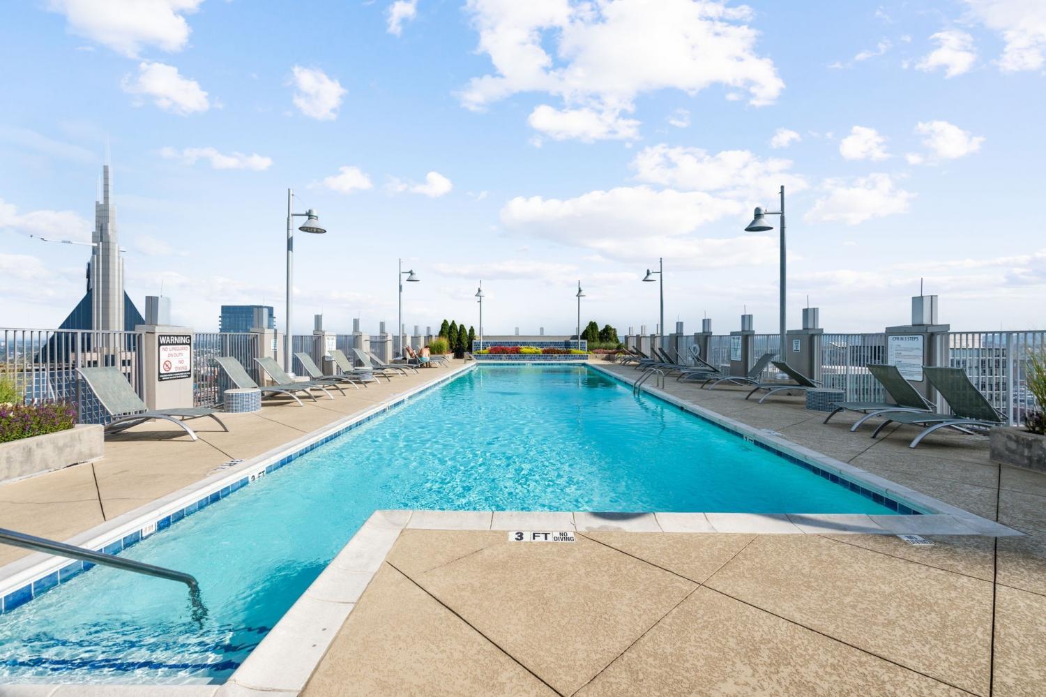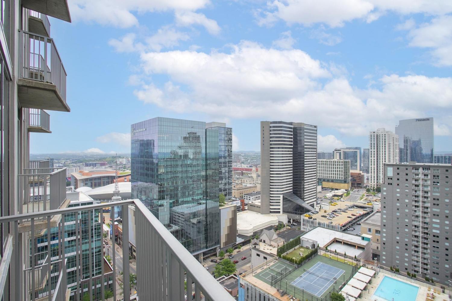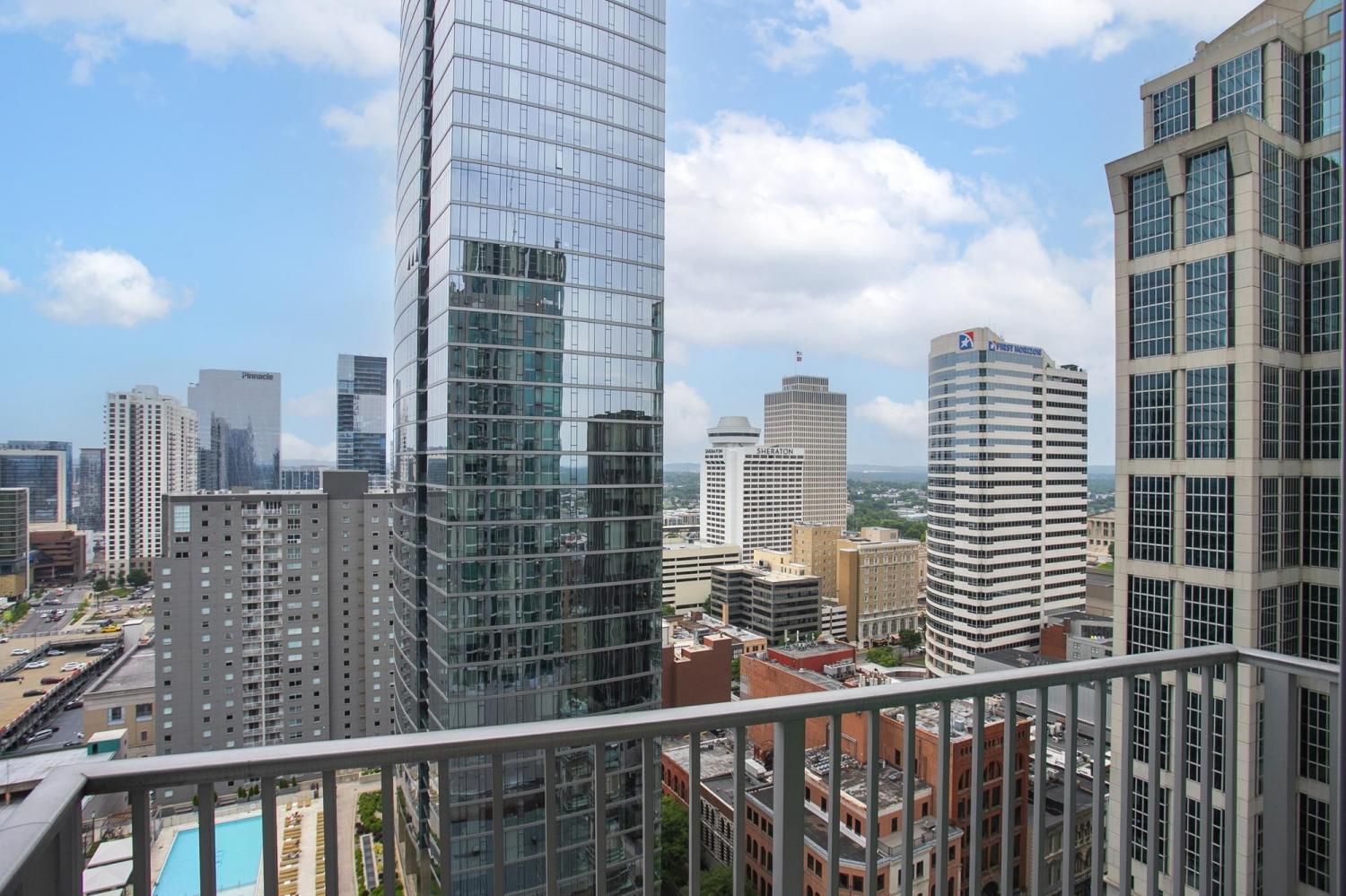 Gorgeous views in the heart of Music City! This unit is immaculate with new cork floors, new kitchen countertops and a beautiful backsplash design. In addition, the custom closet provides an abundant amount of storage. The Viridian boasts the only true rooftop pool on the 31st floor, overlooking downtown and the Nissan Stadium. The clubroom and fitness center are located on the 31st floor as well. Additional amenities include 24/7 Concierge service and Google Fiber. The location offers direct access to Broadway, Bridgestone Arena, Ryman Auditorium, Printer’s Alley, Nissan Stadium, 5th and Broad, newly renovated Arcade, and Nashville Yards which houses the Pinnacle music venue, many new restaurants/bars, bowling alley, and movie theater. Unit conveys with 1 deeded parking spot. This unit has been smoke free/pet free for 15 years and, as a second home, has been very well maintained.