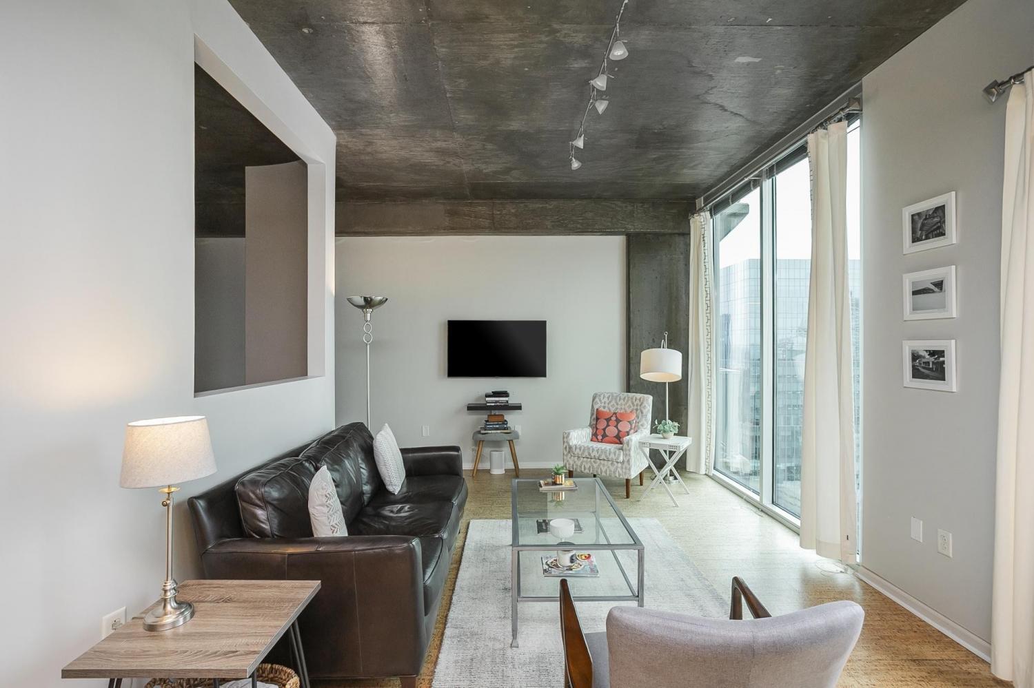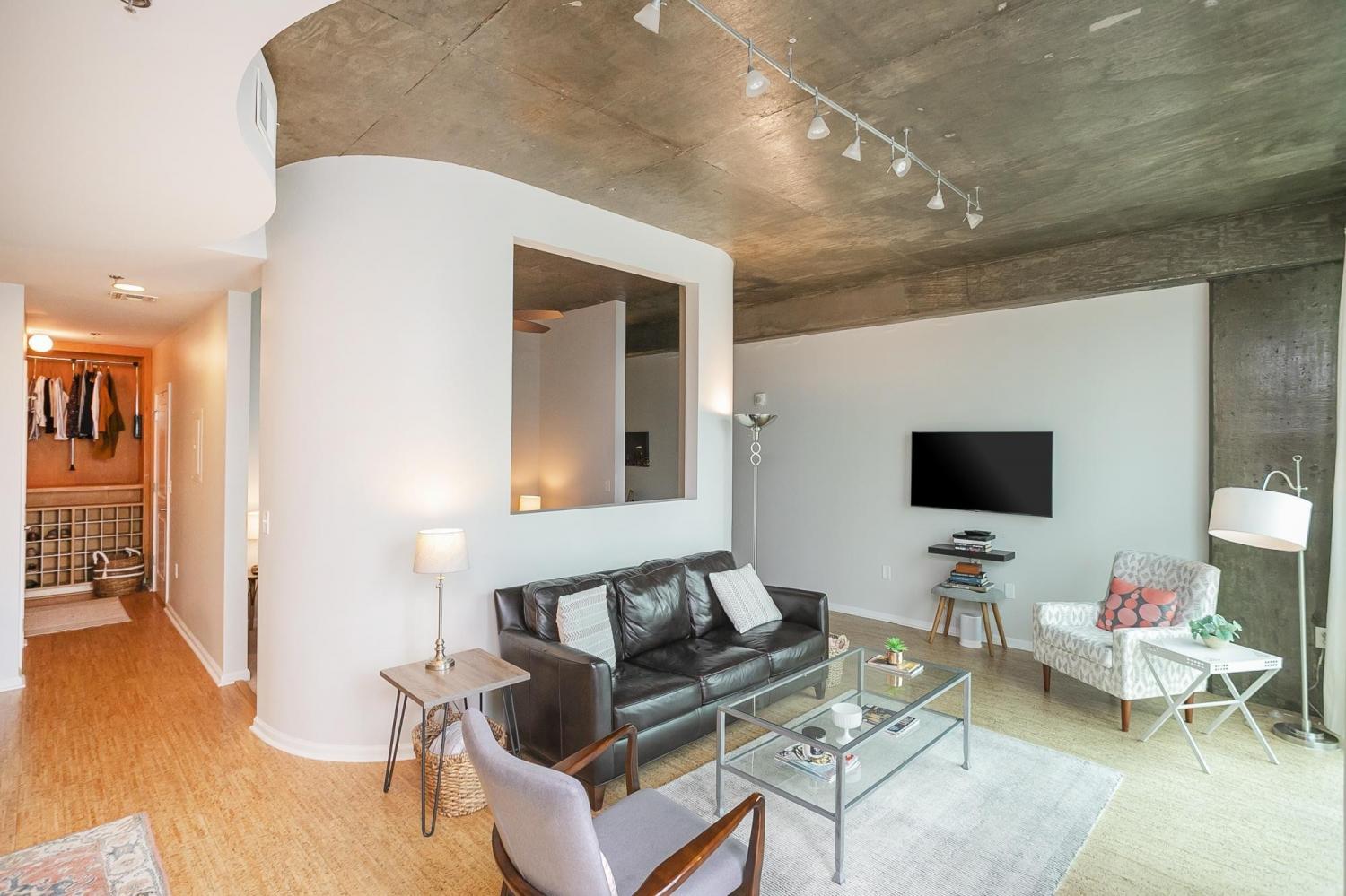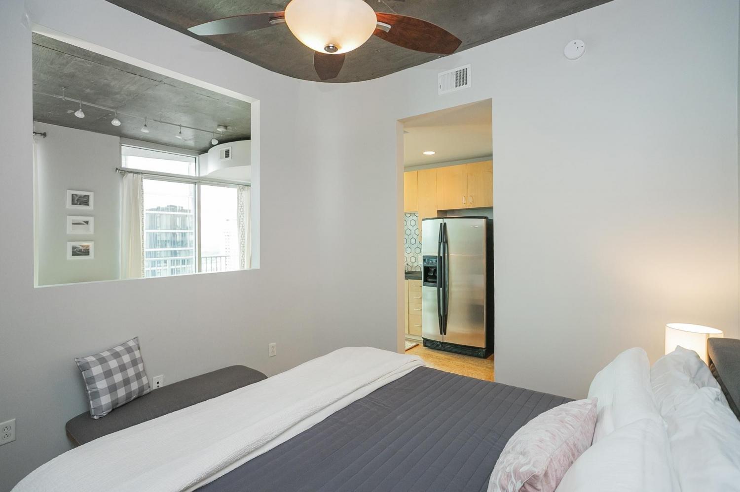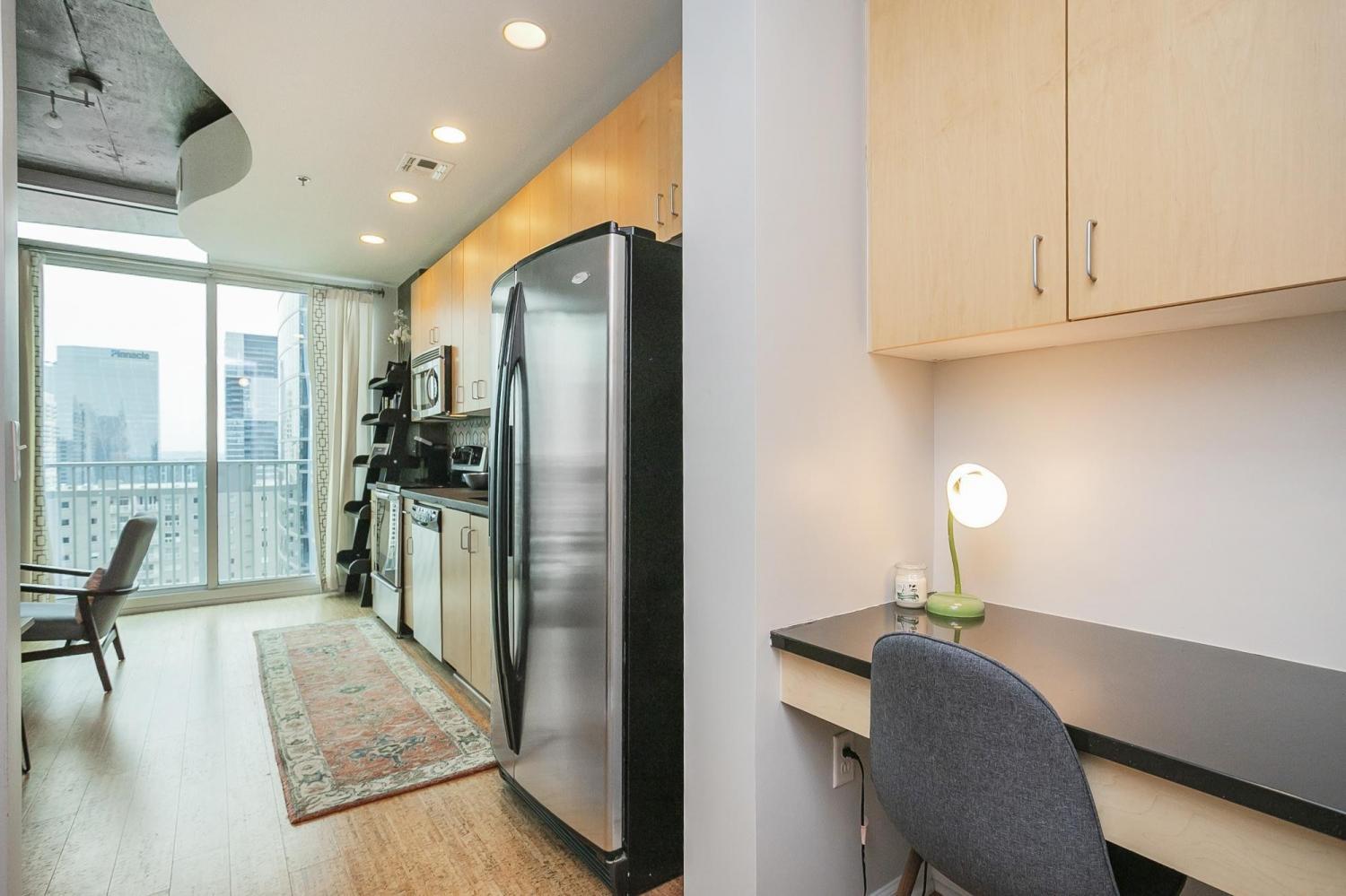 Gorgeous views in the heart of Music City! This unit is immaculate with new cork floors, new kitchen countertops and a beautiful backsplash design. In addition, the custom closet provides an abundant amount of storage. The Viridian boasts the only true rooftop pool on the 31st floor, overlooking downtown and the Nissan Stadium. The clubroom and fitness center are located on the 31st floor as well. Additional amenities include 24/7 Concierge service and Google Fiber. The location offers direct access to Broadway, Bridgestone Arena, Ryman Auditorium, Printer’s Alley, Nissan Stadium, 5th and Broad, newly renovated Arcade, and Nashville Yards which houses the Pinnacle music venue, many new restaurants/bars, bowling alley, and movie theater. Unit conveys with 1 deeded parking spot. This unit has been smoke free/pet free for 15 years and, as a second home, has been very well maintained.
