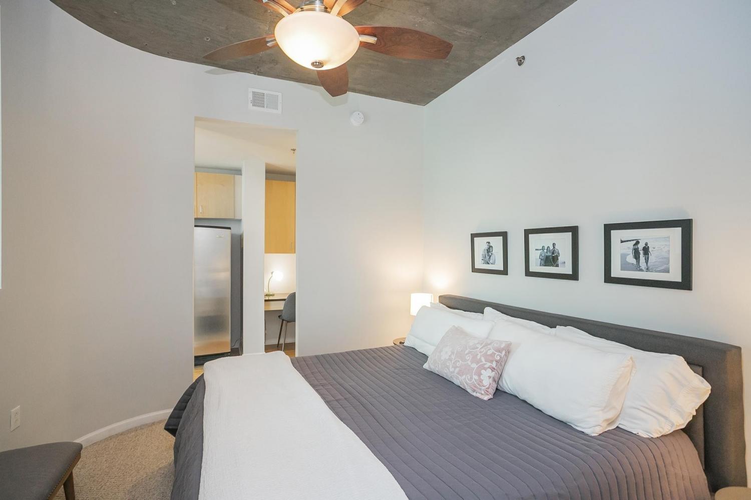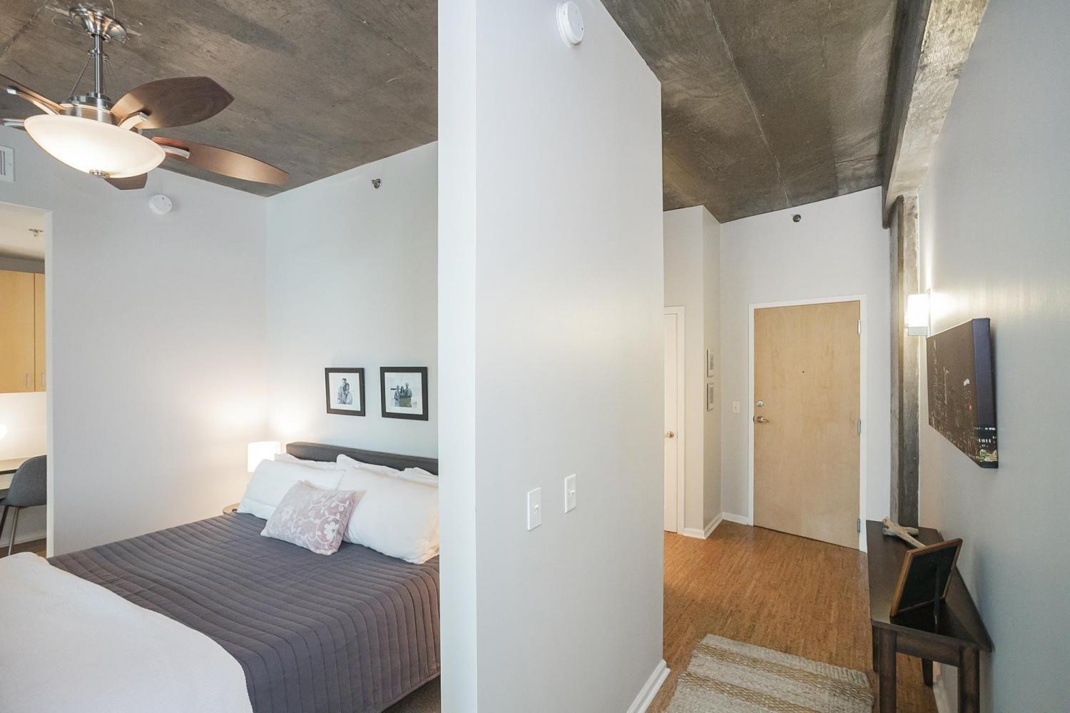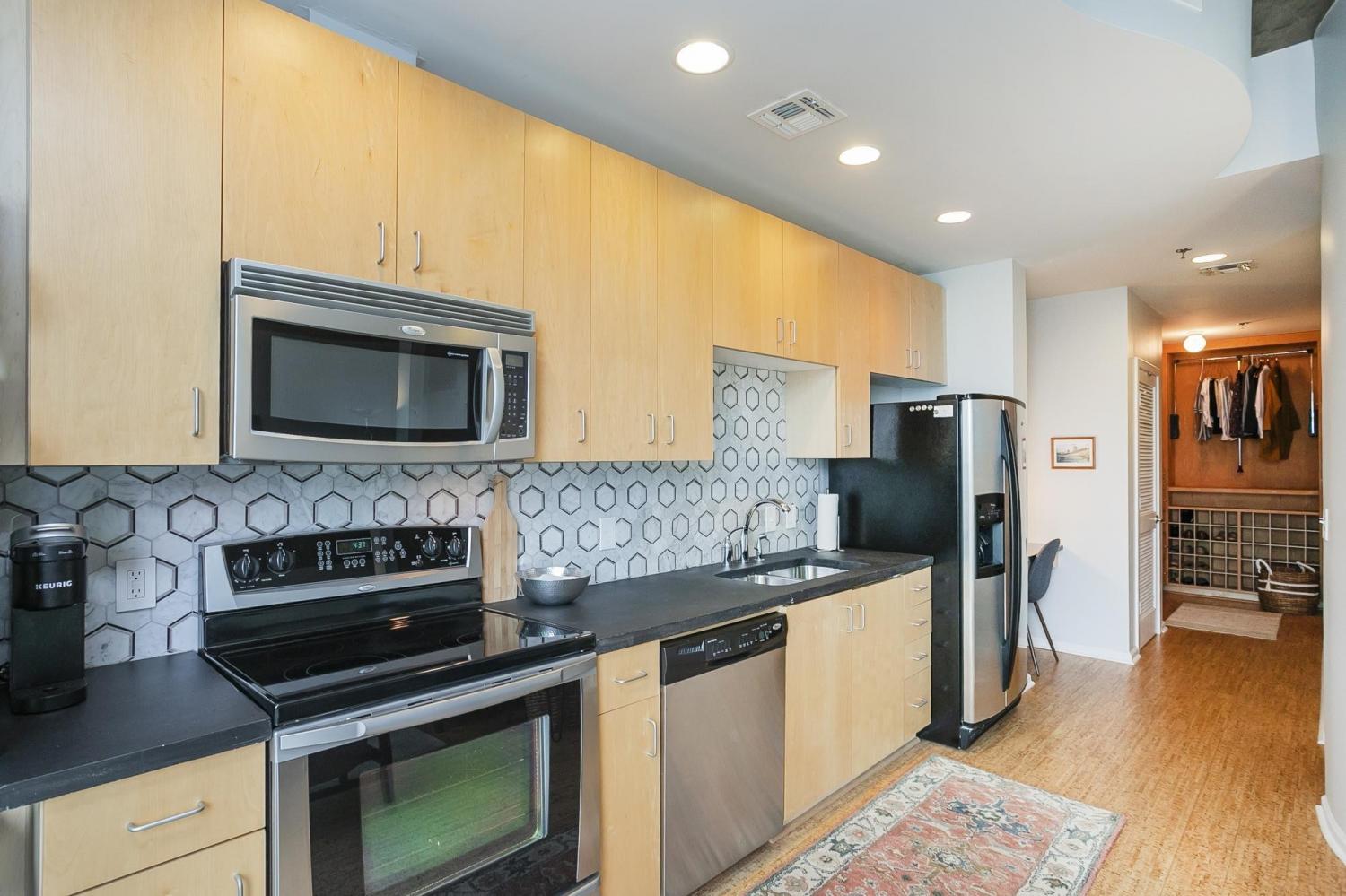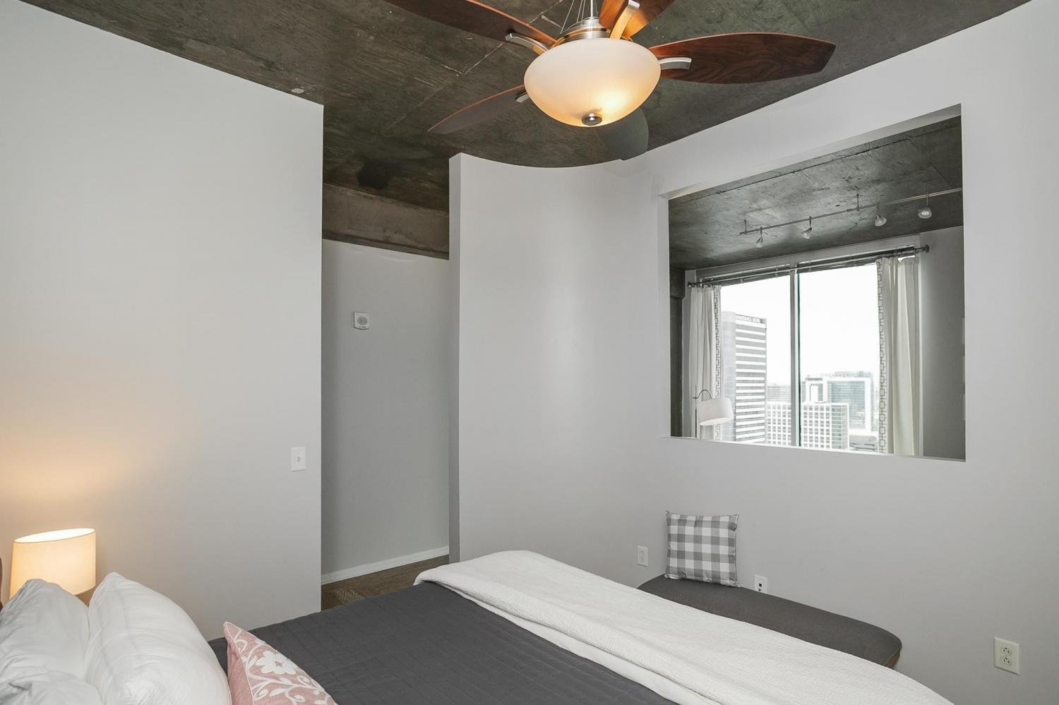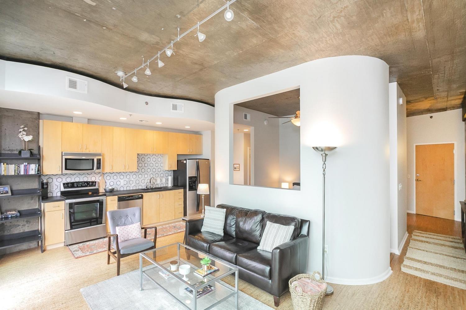 Gorgeous views in the heart of Music City! This unit is immaculate with new cork floors, new kitchen countertops and a beautiful backsplash design. In addition, the custom closet provides an abundant amount of storage. The Viridian boasts the only true rooftop pool on the 31st floor, overlooking downtown and the Nissan Stadium. The clubroom and fitness center are located on the 31st floor as well. Additional amenities include 24/7 Concierge service and Google Fiber. The location offers direct access to Broadway, Bridgestone Arena, Ryman Auditorium, Printer’s Alley, Nissan Stadium, 5th and Broad, newly renovated Arcade, and Nashville Yards which houses the Pinnacle music venue, many new restaurants/bars, bowling alley, and movie theater. Unit conveys with 1 deeded parking spot. This unit has been smoke free/pet free for 15 years and, as a second home, has been very well maintained.