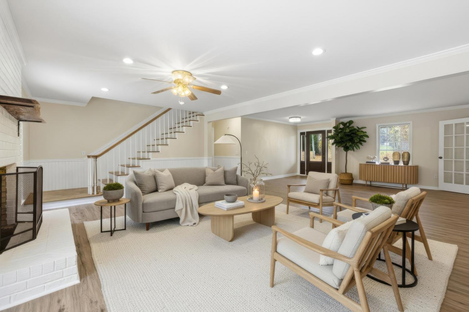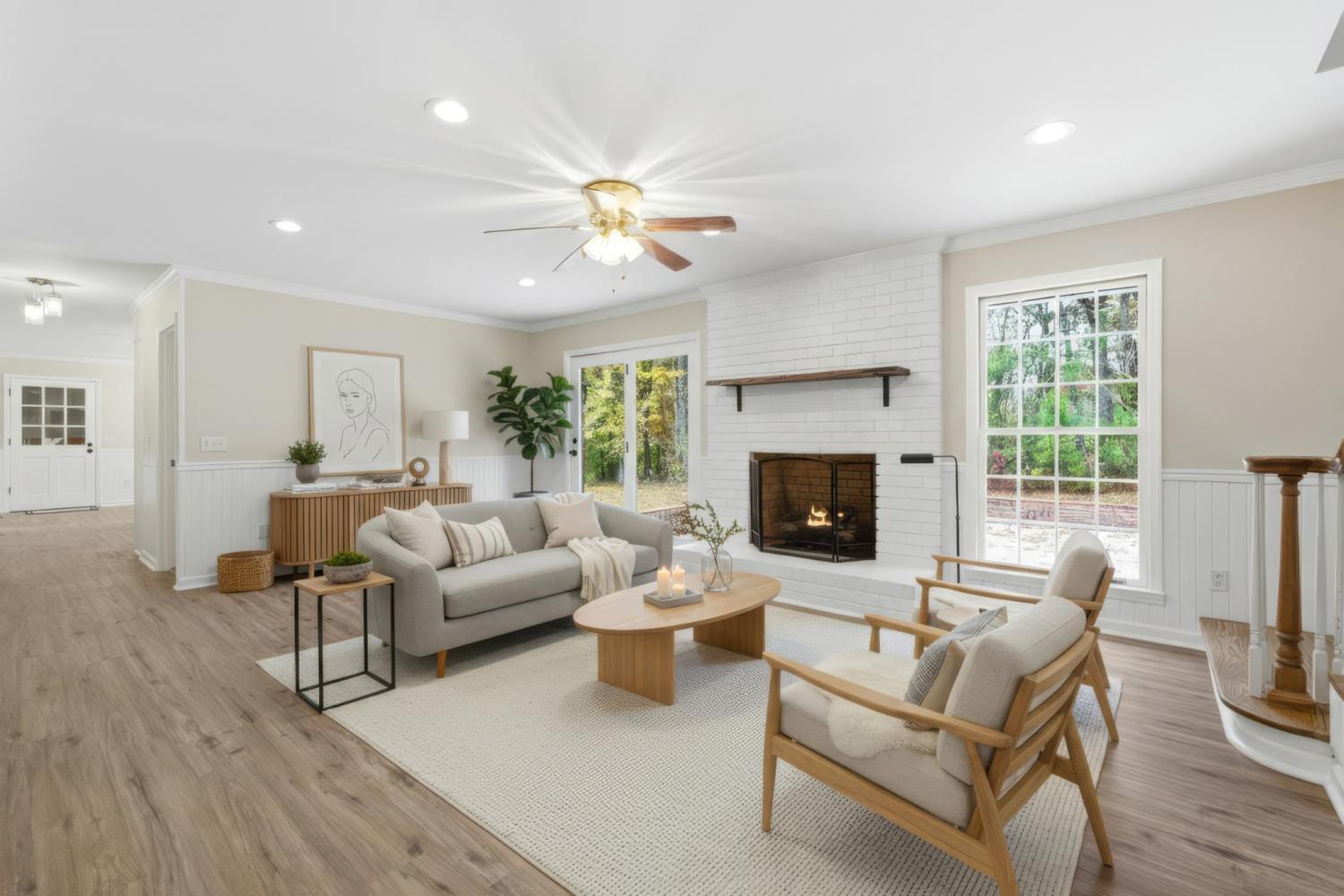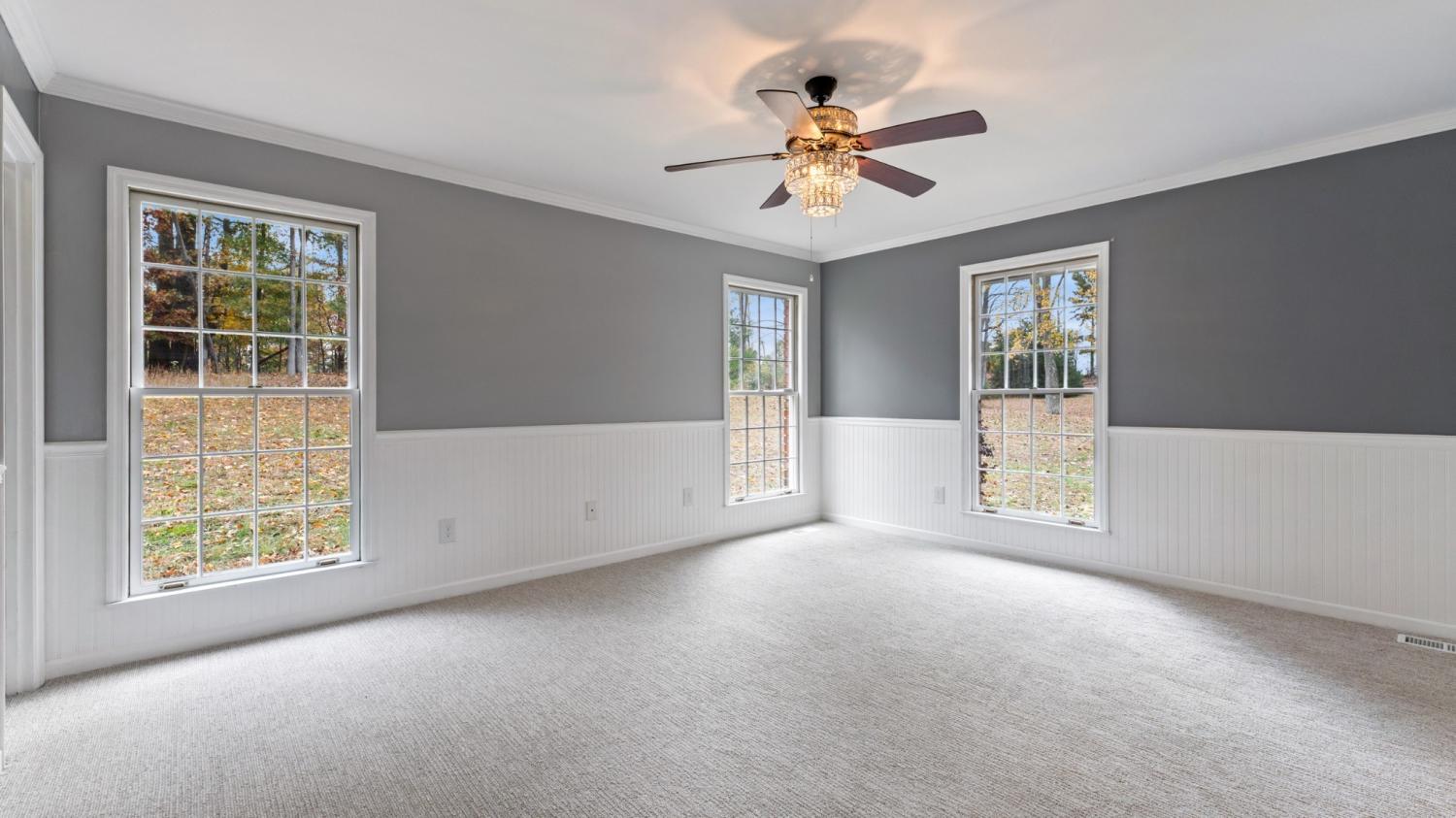 Creekside Wooded 5.40Acre Estate with a Brick 3,383sq ft 4 bedroom 2.5 bath home with an attached 2 car garage and a Brick 2 car detached garage/ workshop. Home has been recently remodeled with a new roof on home and detached garage, new interior paint, new floor coverings, and new front door. A beautiful Chefs kitchen has granite counter tops and a large granite center island as well as a large eat in dining area. Abundant cabinets feature upper lighted glass door display cabinets. All appliances include stainless Refrigerator, glass cooktop, separate oven, microwave and dishwasher. Additional living area includes a large living room /den with full brick fireplace with gas logs and separate formal dining room .Bedroom area features a large primary suite with walk in closet. Gorgeous tile bath with double sinks , oversize tile shower and separate storage closet. An additional 3 large bedrooms one with a walk in closet , an additional full bath and linen closet completes the bedroom area. Upper level bonus area is 22x31 Sq. Ft. of multipurpose space for media room, play room, craft room etc. with a 7x8 ft. walk in closet. Also included is a walk in floored attic space with built in shelves. Photos with furnishings have been virtually staged.