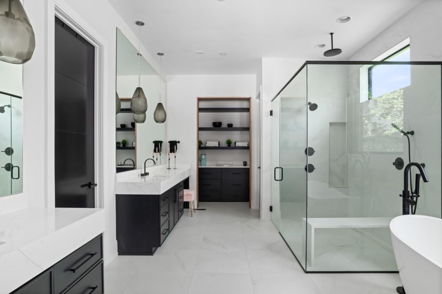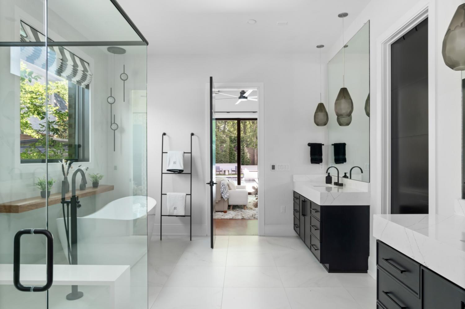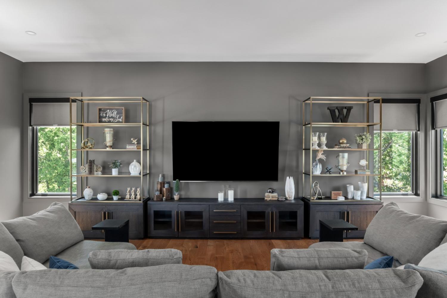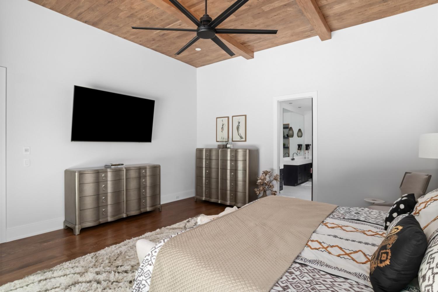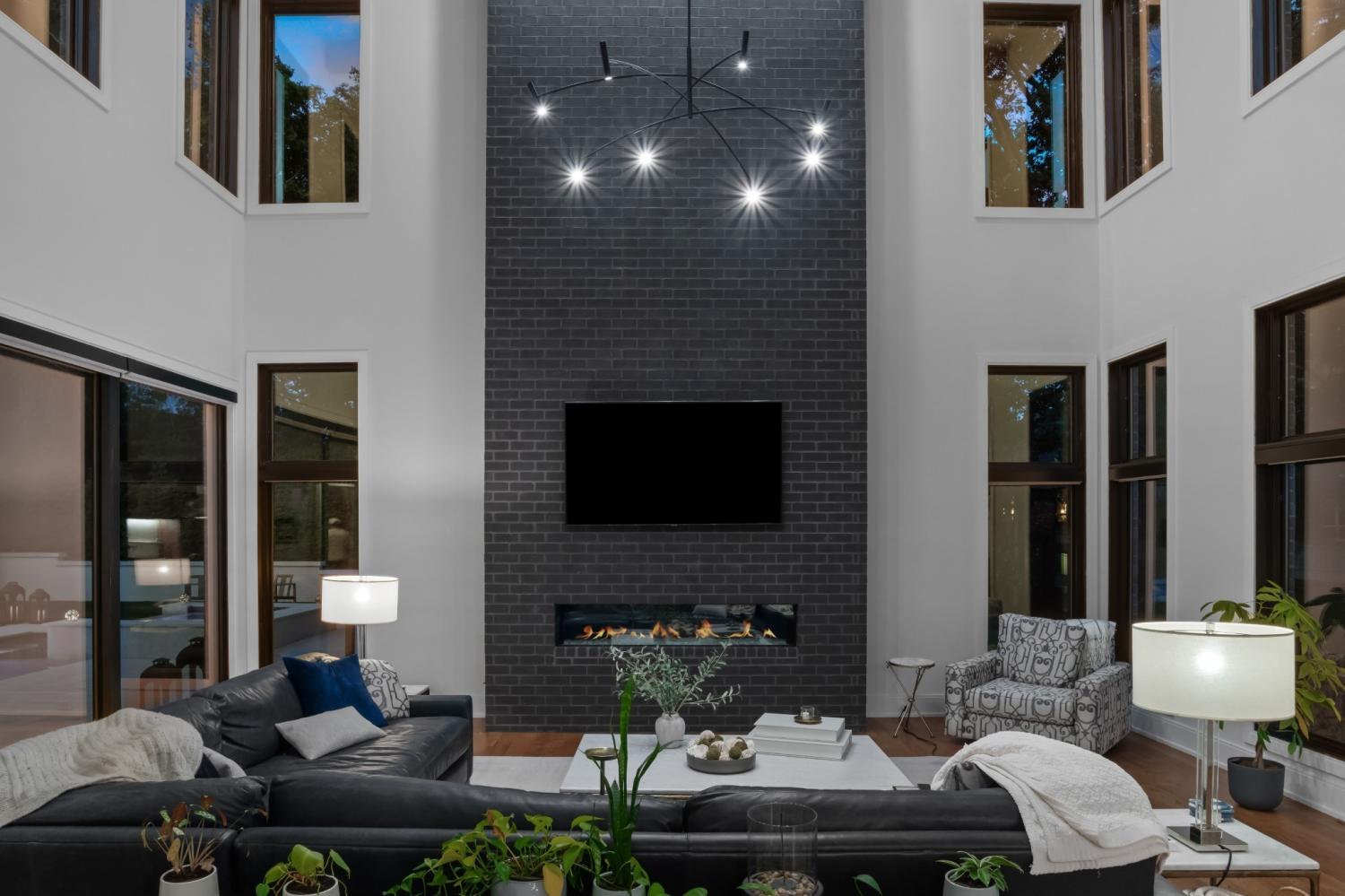 This show-stopping warm modern home in walkable Green Hills features elevated, contemporary design and dynamic indoor-outdoor living with a pool, outdoor kitchen, and private rooftop terrace overlooking the rolling hills of south Nashville. The impressive foyer is wrapped in wood planking, with vaulted ceilings and tons of natural light. The primary suite features direct access to the pool, and there is an additional guest suite or office on the main floor, with a junior suite on the second level. The kitchen and working pantry are the heart of the home, and bars with built-in wine and beverage center refrigerators are adjacent to the kitchen/dining rooms and the top floor media den/bonus room. An elevator serves all 3 levels, and at the top leads to a huge bonus room/media den and wet bar opening to an expansive roof deck. The whole third floor offers incredible, multi-directional views over the rolling hills and beautiful homes of Green Hills. And perfect for Tennessee summers, the fenced, private back yard features impressive mature landscaping and extensive turfing, a heated pool with hot tub, tons of entertaining space with an outdoor kitchen and dining area. Control4 smart home automation, security cameras, and more features top off the fully functional, effortless living afforded by this pitch perfect modern home!