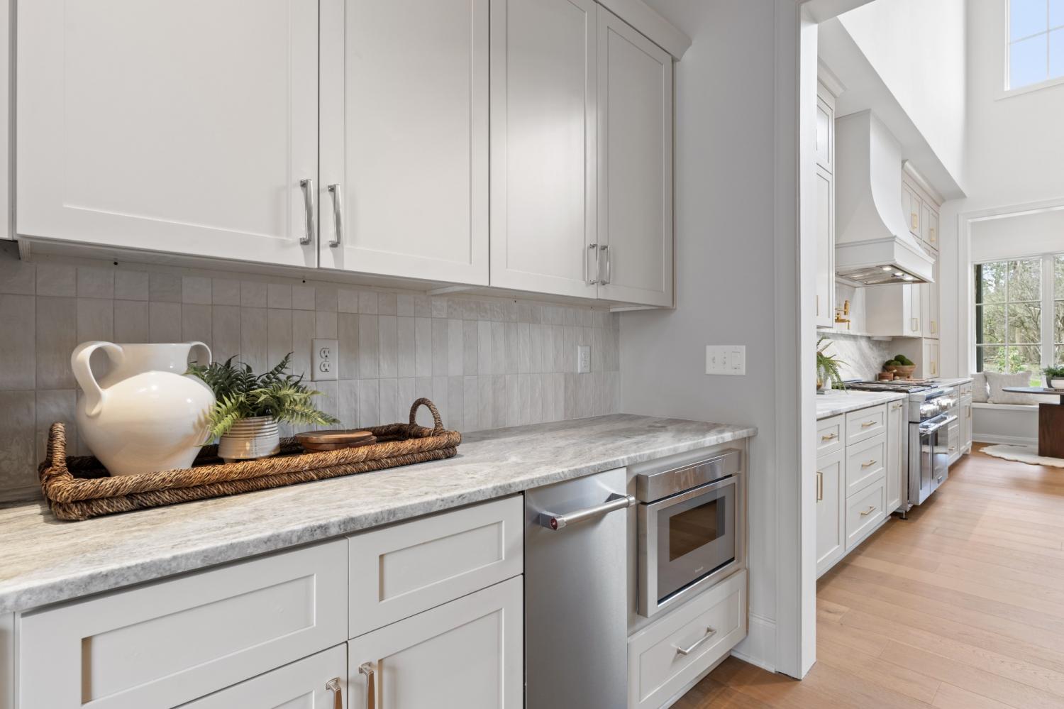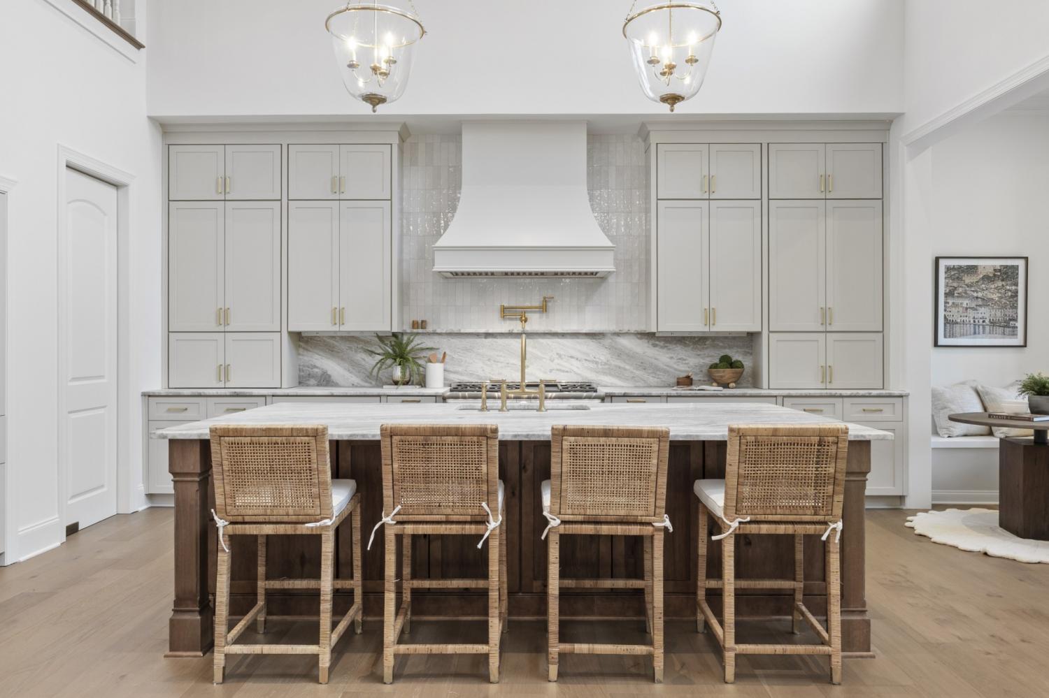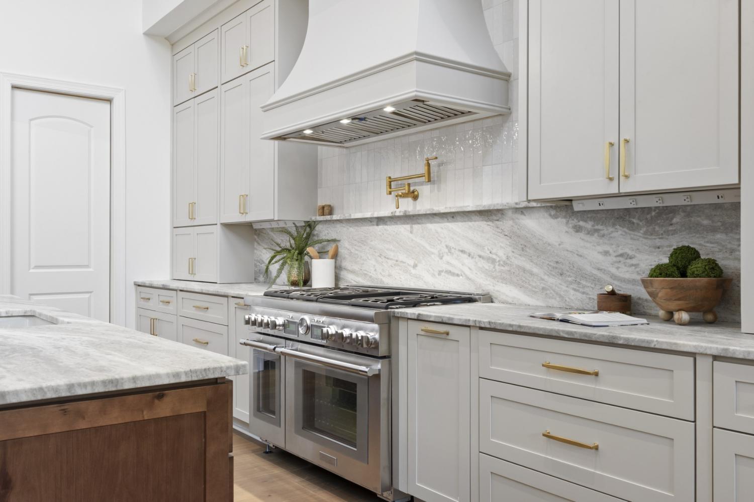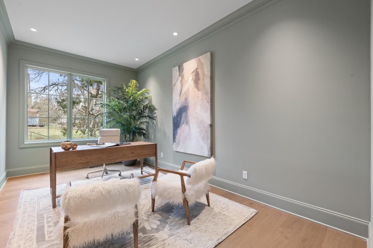 This 7-bedroom luxury residence blends timeless architecture with modern function. A statement home designed for elevated living. Set back from the street, the property offers commanding curb appeal and refined comfort throughout. The grand entry features soaring ceilings, detailed millwork, and abundant natural light that highlights every custom finish. Elegant living spaces balance function and flexibility, including a private office and versatile flex room ideal for a library, media lounge, or gym. One guest room can easily transition into a formal dining room for entertaining versatility. The gourmet kitchen is equipped with custom-paneled appliances, an oversized island, and striking Fantasy Brown marble countertops. All countertops throughout the home are marble, with the exception of quartz in the laundry rooms for durability. Every vanity is custom-built, including a one-of-a-kind marble vanity in the powder bath imported from Turkey. Designer stone accents and a floating Tuscany vanity add architectural detail. The entire home is fully wired for audio and video, including built-in speakers concealed behind drywall in the living room and kitchen for a seamless entertainment experience. Two laundry rooms offer efficiency and convenience. Every closet has been professionally designed and installed by California Closets, maximizing organization and storage. The private backyard provides both serenity and opportunity, with an easy-build lot ready for a custom pool design. A three-car garage includes generous storage and space for a potential fourth bay. Clean lines, natural stone textures, and layered lighting complete a home that delivers sophistication, flexibility, and thoughtful design at every turn.