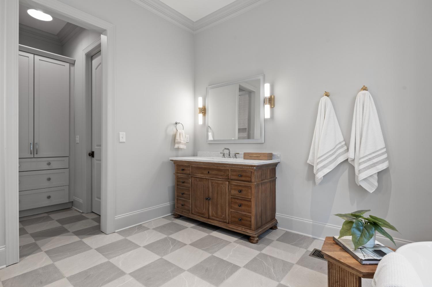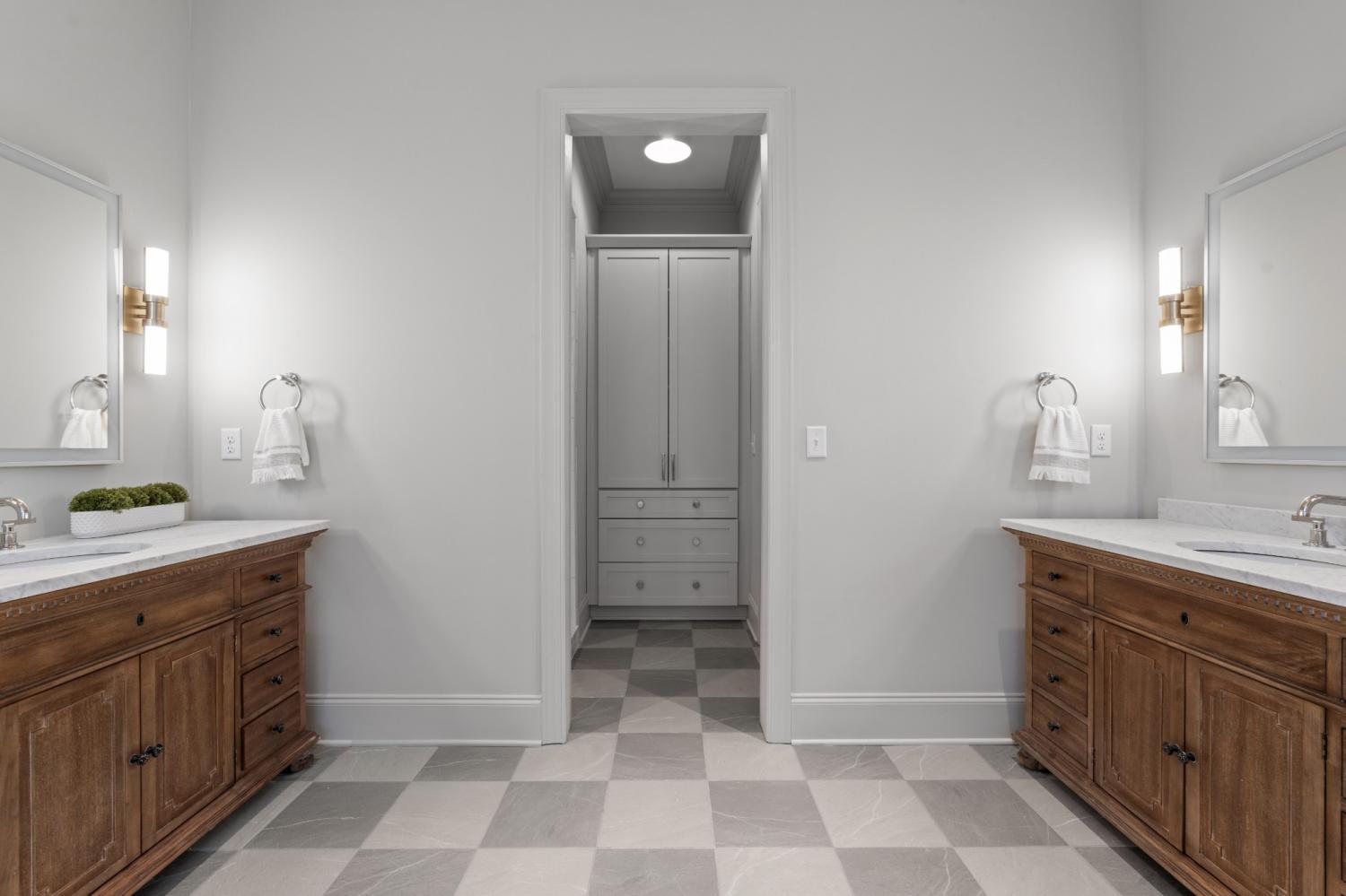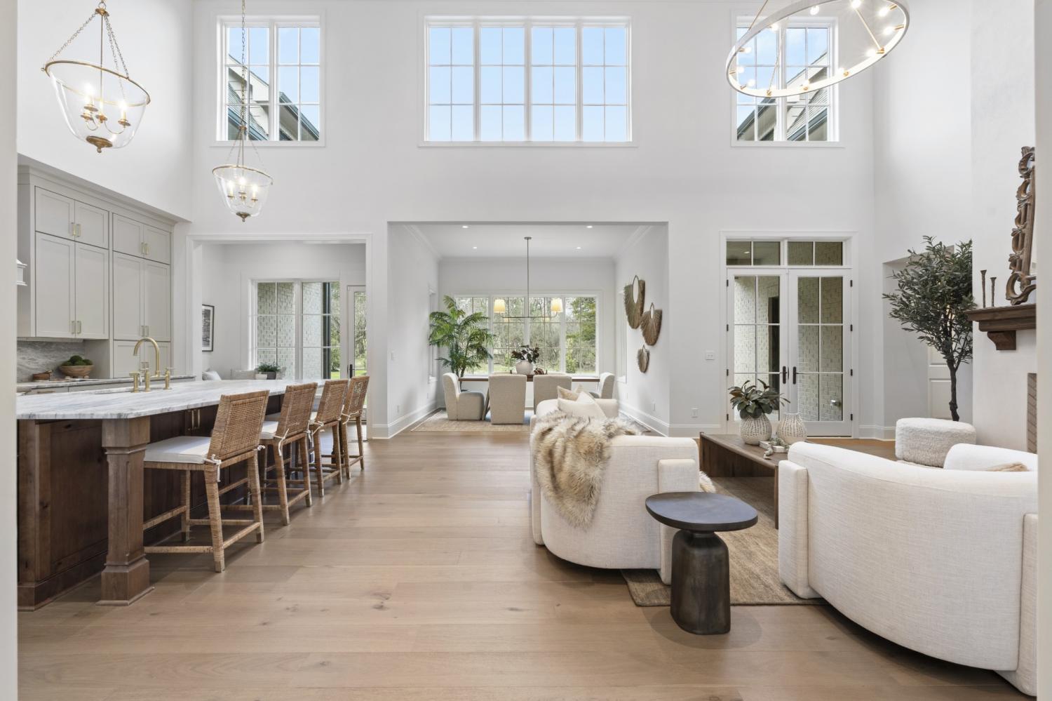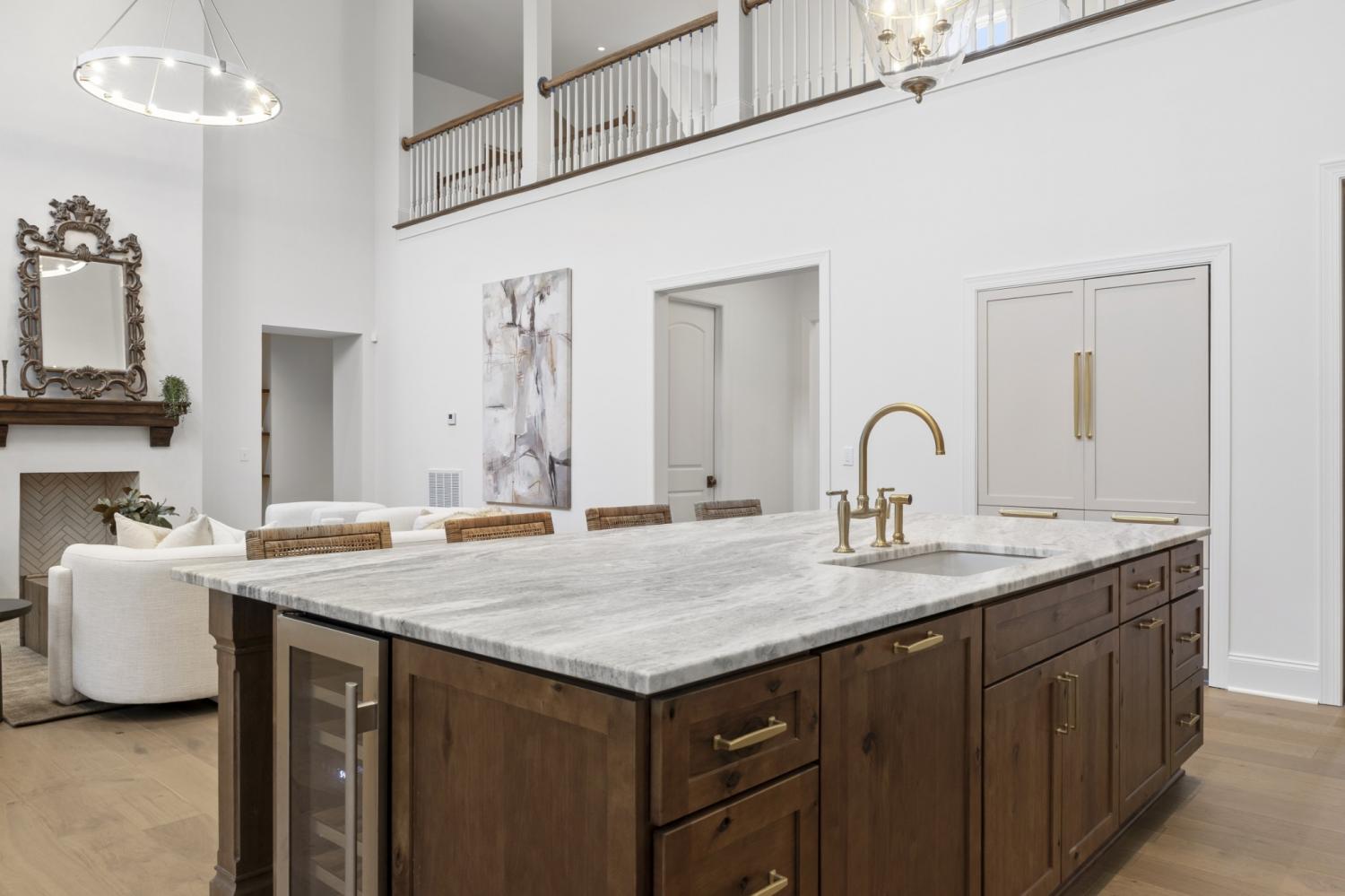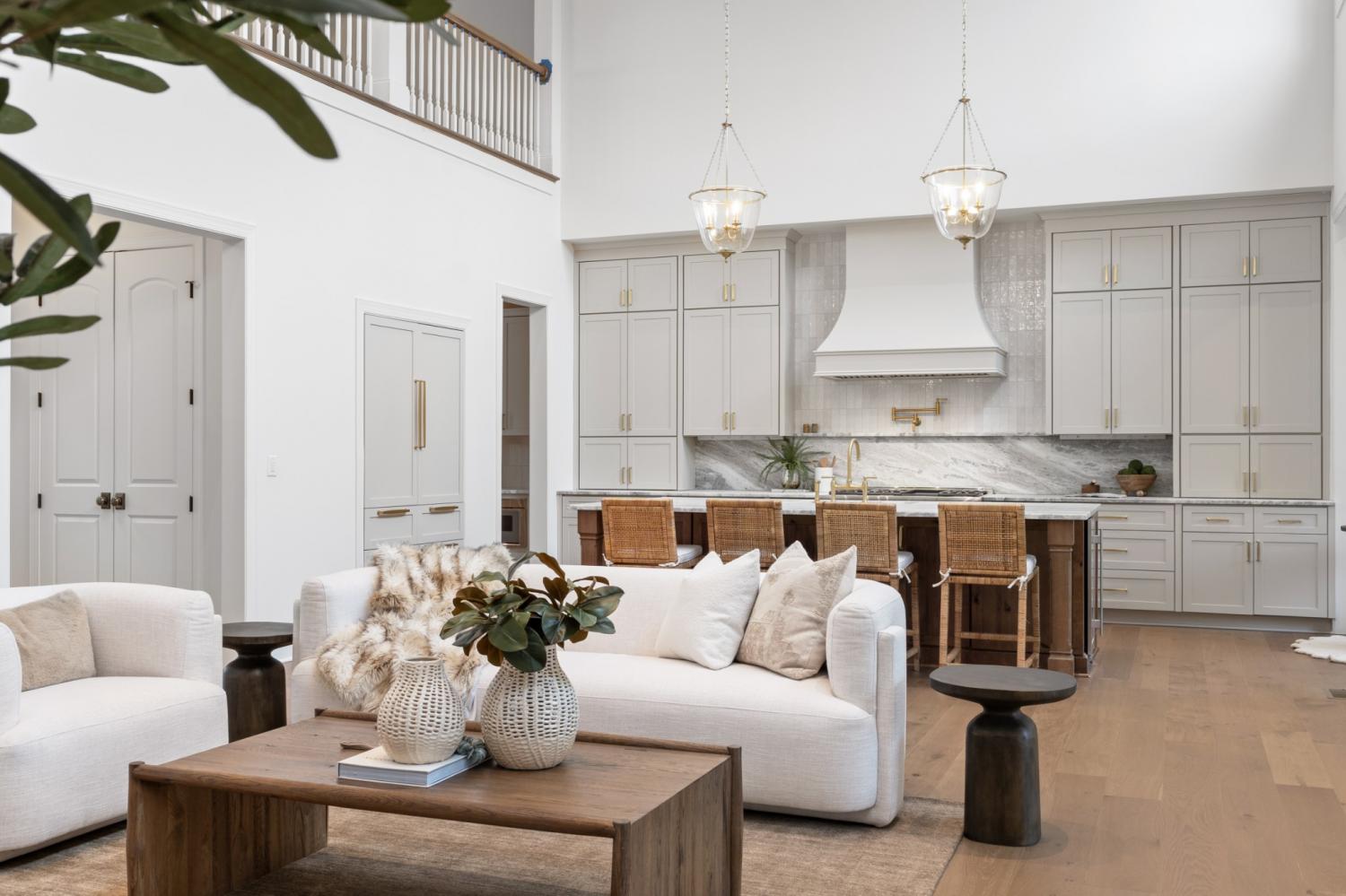 This 7-bedroom luxury residence blends timeless architecture with modern function. A statement home designed for elevated living. Set back from the street, the property offers commanding curb appeal and refined comfort throughout. The grand entry features soaring ceilings, detailed millwork, and abundant natural light that highlights every custom finish. Elegant living spaces balance function and flexibility, including a private office and versatile flex room ideal for a library, media lounge, or gym. One guest room can easily transition into a formal dining room for entertaining versatility. The gourmet kitchen is equipped with custom-paneled appliances, an oversized island, and striking Fantasy Brown marble countertops. All countertops throughout the home are marble, with the exception of quartz in the laundry rooms for durability. Every vanity is custom-built, including a one-of-a-kind marble vanity in the powder bath imported from Turkey. Designer stone accents and a floating Tuscany vanity add architectural detail. The entire home is fully wired for audio and video, including built-in speakers concealed behind drywall in the living room and kitchen for a seamless entertainment experience. Two laundry rooms offer efficiency and convenience. Every closet has been professionally designed and installed by California Closets, maximizing organization and storage. The private backyard provides both serenity and opportunity, with an easy-build lot ready for a custom pool design. A three-car garage includes generous storage and space for a potential fourth bay. Clean lines, natural stone textures, and layered lighting complete a home that delivers sophistication, flexibility, and thoughtful design at every turn.