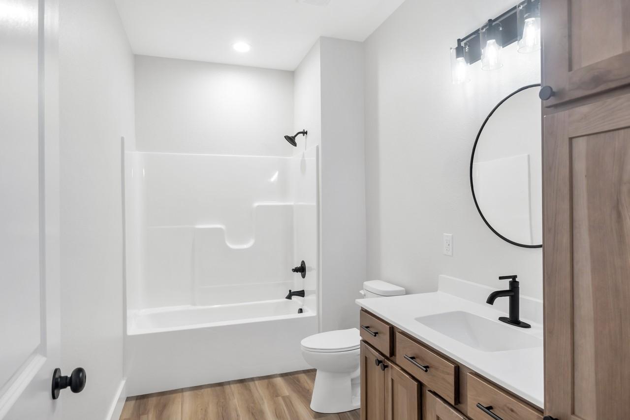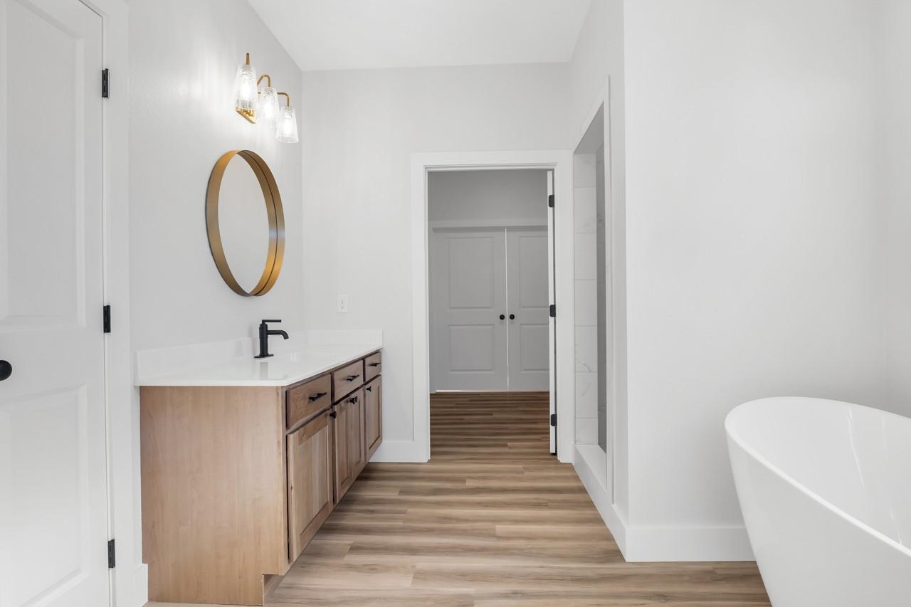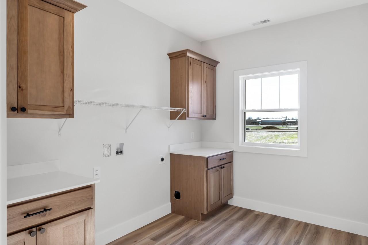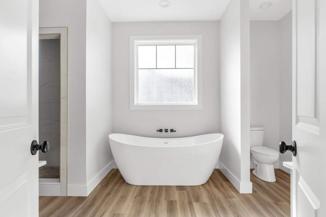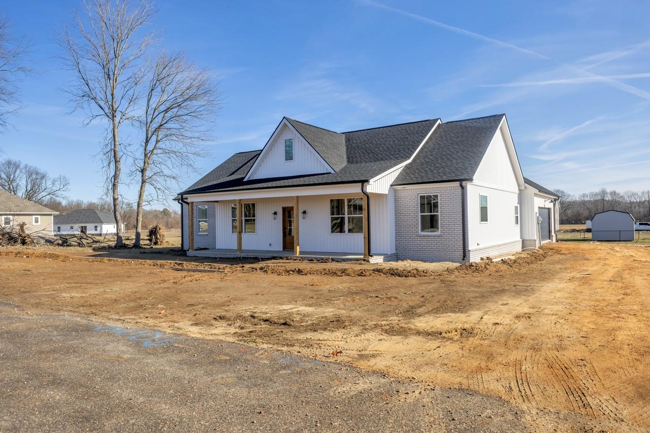 New construction home featuring a thoughtfully designed open floor plan with 3 bedrooms and 2.5 bathrooms. The spacious living area flows seamlessly into the kitchen and dining space, creating an ideal layout for everyday living and entertaining. The kitchen features quartz countertops with soft-close doors and drawers. The primary suite offers a private retreat with double vanities, a tiled walk-in shower, a large soaking tub, and an oversized walk-through closet for added storage and convenience. Enjoy outdoor living on the covered back porch, perfect for relaxing or hosting gatherings. Additional features include a 2-car attached garage, concrete driveway and sidewalk, and quality finishes throughout. Buyer to verify square footage, schools, and all pertinent information.
