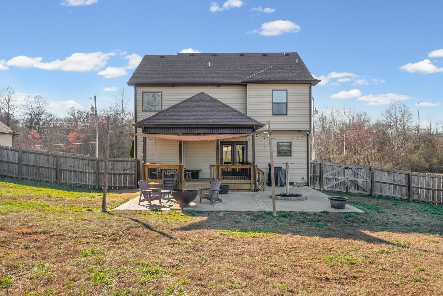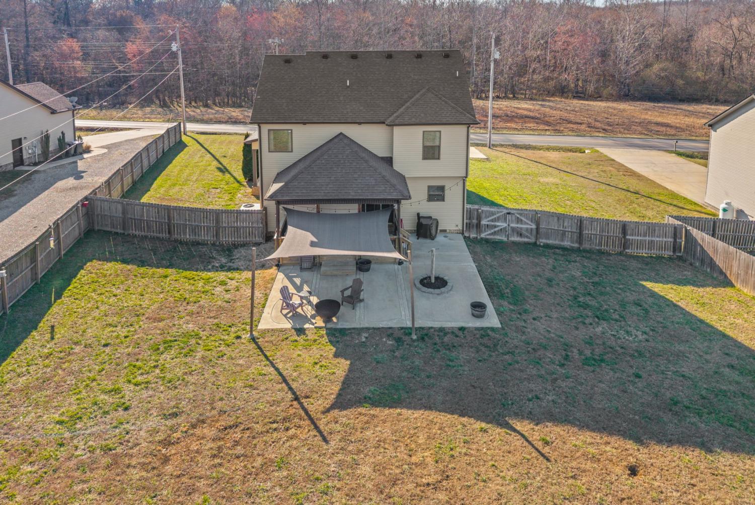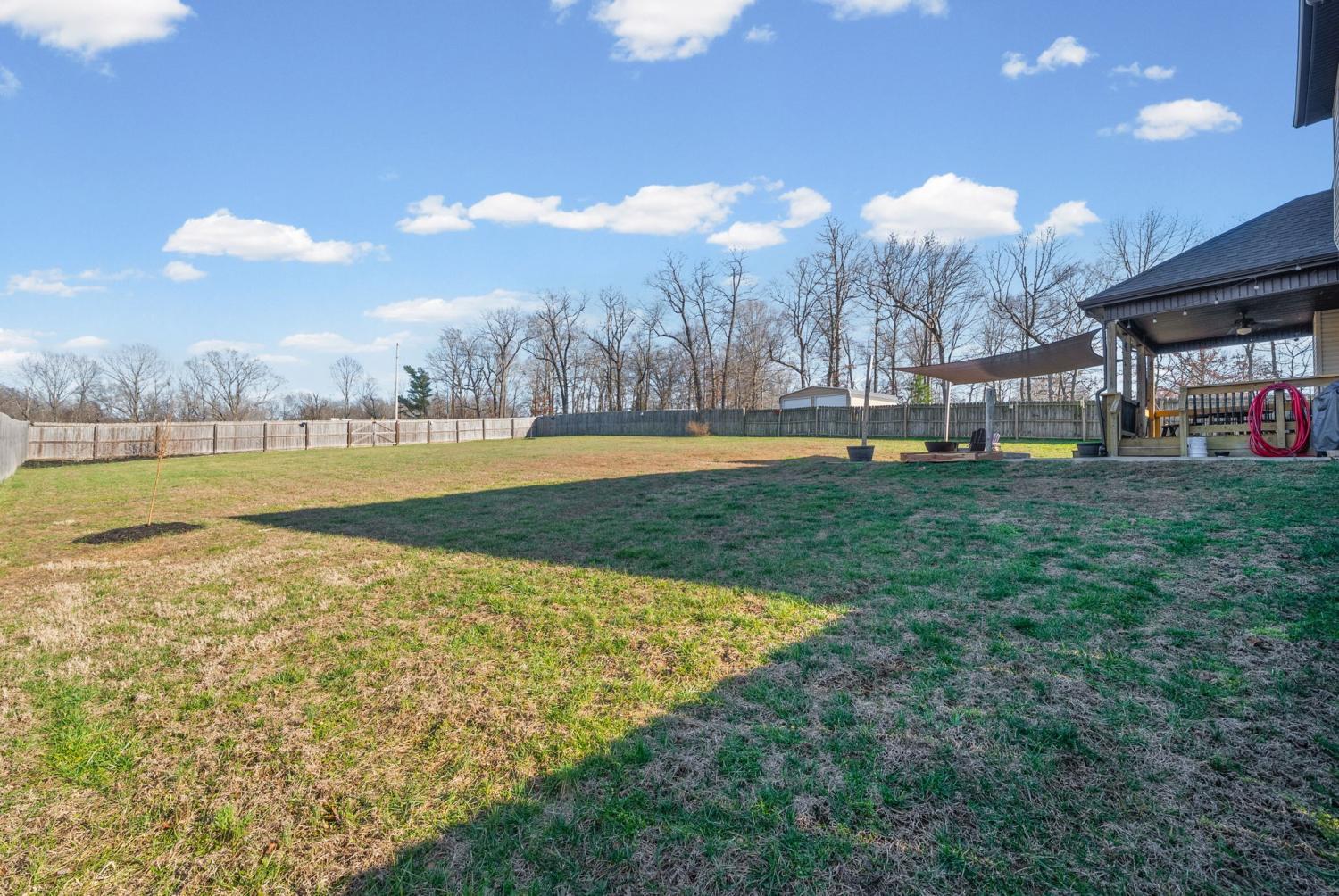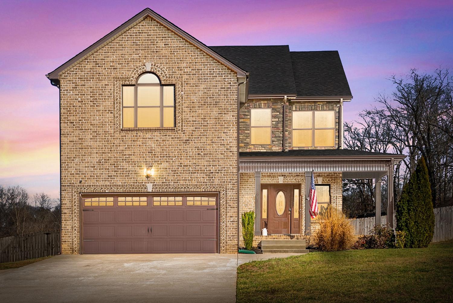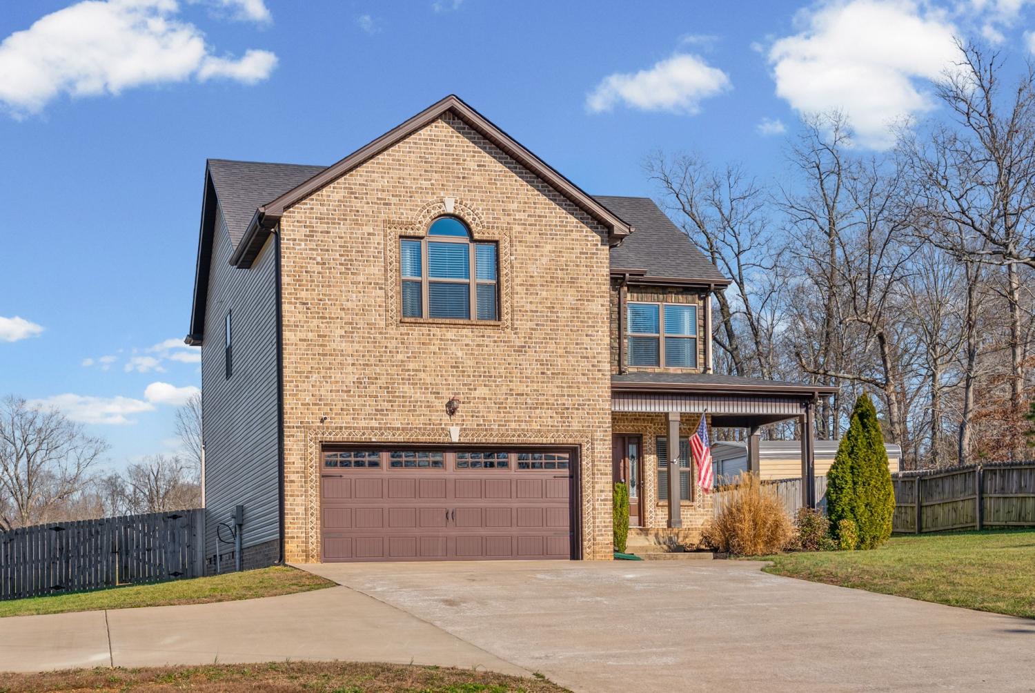 Beautiful home with plenty of space (1.5 acres) and no backyard neighbors! Home is located in a great location that is a short drive to Fort Campbell and Clarksville! Hardwood floors welcome you into the entryway and flow through the main floor. The spacious living room features a decorative fireplace mantel and large windows that bring in lots of natural light. The country kitchen boasts an island, granite countertops, large deep sink, backsplash, an eat-in space, and a pantry. The main level also features an extra-large laundry/utility room and a half bath. Upstairs, the oversized primary bedroom features a double tray ceiling, a walk-in closet and an accent wall. The spa-like primary bathroom has it all! A jetted bathtub, a separate tiled shower and a double vanity. Two large bedrooms, both with decorative tray ceilings, and a full bathroom complete the main wing of the second floor. Across the landing of the stairs is a giant bonus room with two large walk-in closets that provide plenty of storage and a convenient half bathroom. The bonus room could technically be used as a giant fourth bedroom since the septic system is rated for a four-bedroom home. The 22’x20’ garage provides even more storage area with its size, tall ceilings, and built-in shelving. Relax on the large wrap around front porch or out on the covered back porch. Grill and entertain on the giant concrete patio that has a sunshade installed as well as a fire pit area. A large portion of the back yard is fully fenced in for added privacy. The fence features a back gate used to access the remainder of the acreage. Behind the gate and towards the middle of the property you will find a playset for children and a gravel storage area. Driveway extension was installed to help make turning around easy. New HVAC unit for upstairs installed in June (2025).