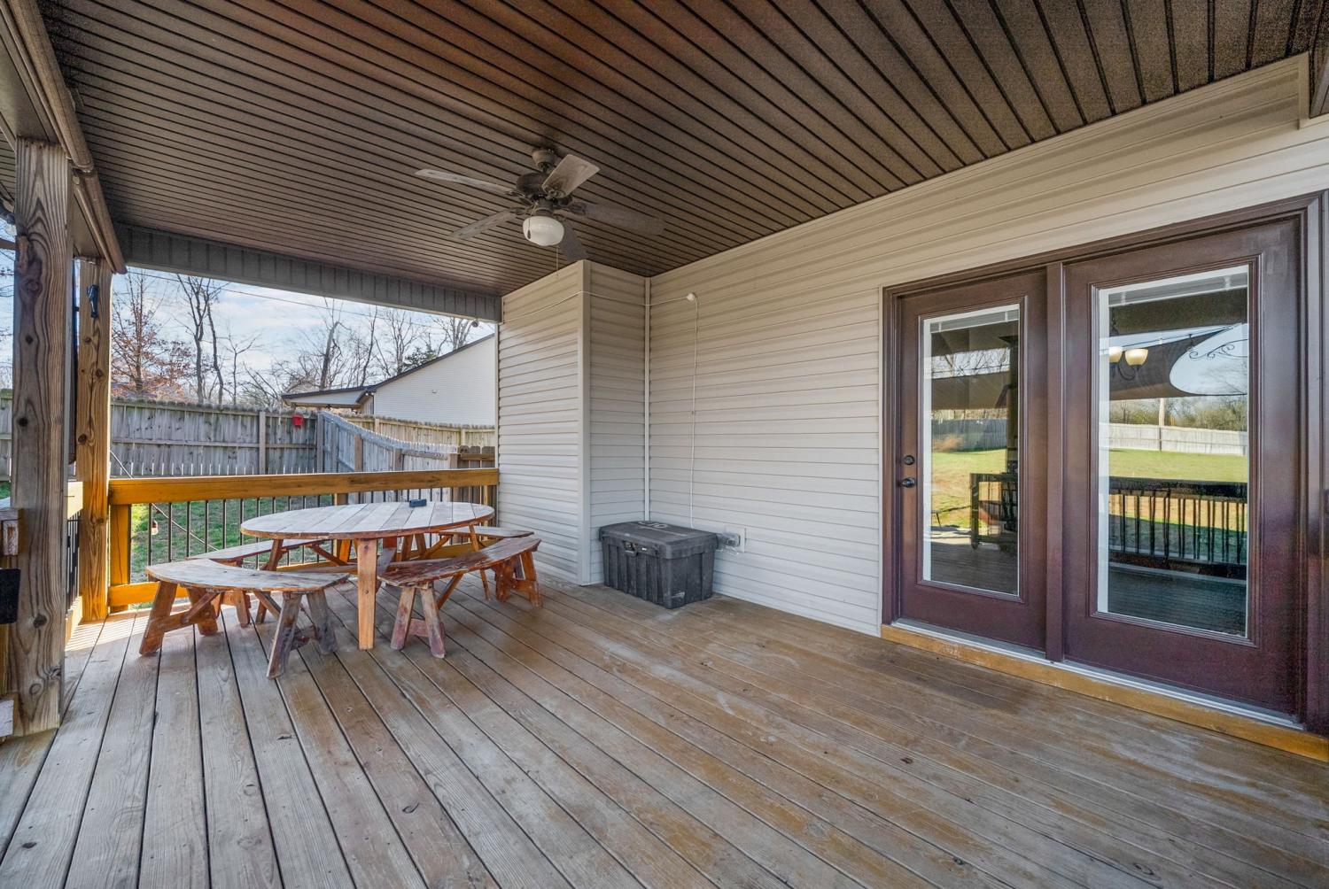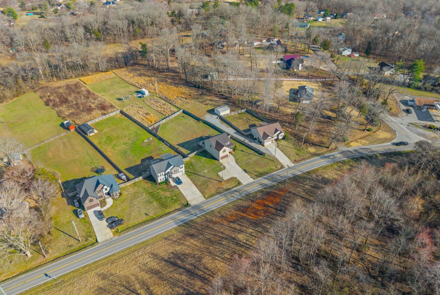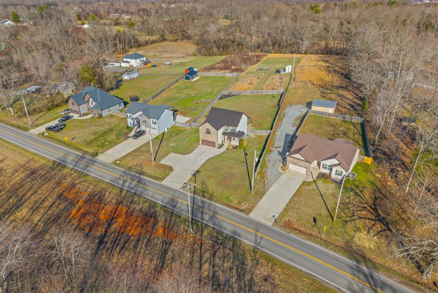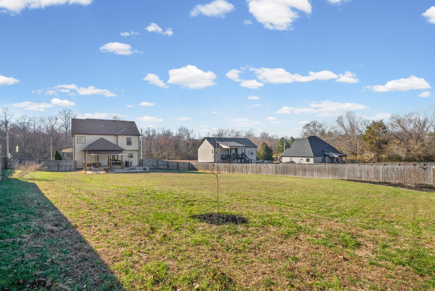 Beautiful home with plenty of space (1.5 acres) and no backyard neighbors! Home is located in a great location that is a short drive to Fort Campbell and Clarksville! Hardwood floors welcome you into the entryway and flow through the main floor. The spacious living room features a decorative fireplace mantel and large windows that bring in lots of natural light. The country kitchen boasts an island, granite countertops, large deep sink, backsplash, an eat-in space, and a pantry. The main level also features an extra-large laundry/utility room and a half bath. Upstairs, the oversized primary bedroom features a double tray ceiling, a walk-in closet and an accent wall. The spa-like primary bathroom has it all! A jetted bathtub, a separate tiled shower and a double vanity. Two large bedrooms, both with decorative tray ceilings, and a full bathroom complete the main wing of the second floor. Across the landing of the stairs is a giant bonus room with two large walk-in closets that provide plenty of storage and a convenient half bathroom. The bonus room could technically be used as a giant fourth bedroom since the septic system is rated for a four-bedroom home. The 22’x20’ garage provides even more storage area with its size, tall ceilings, and built-in shelving. Relax on the large wrap around front porch or out on the covered back porch. Grill and entertain on the giant concrete patio that has a sunshade installed as well as a fire pit area. A large portion of the back yard is fully fenced in for added privacy. The fence features a back gate used to access the remainder of the acreage. Behind the gate and towards the middle of the property you will find a playset for children and a gravel storage area. Driveway extension was installed to help make turning around easy. New HVAC unit for upstairs installed in June (2025).