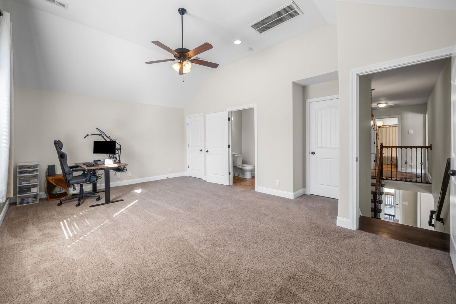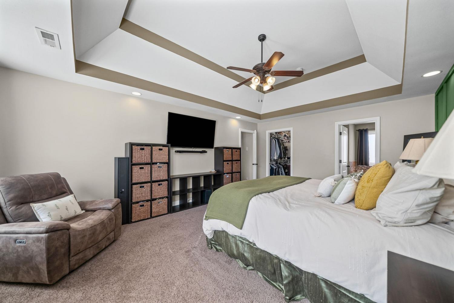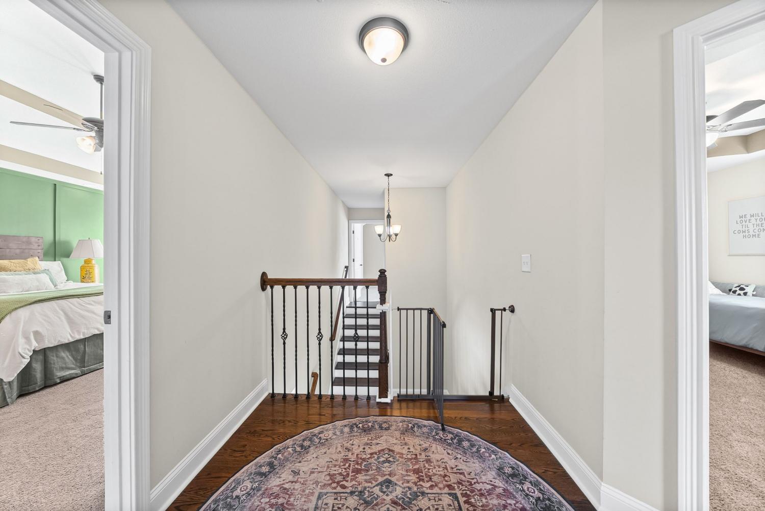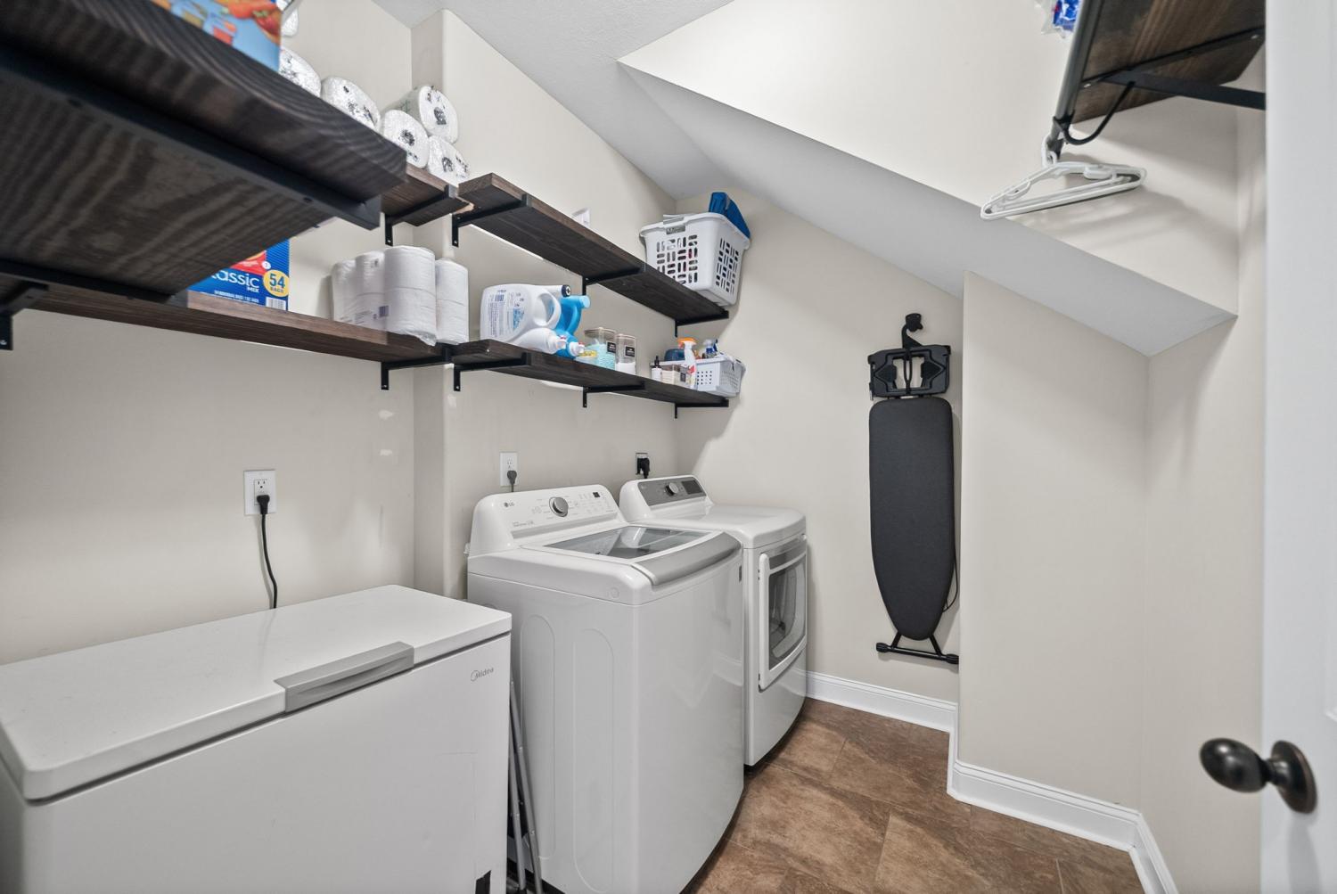 Beautiful home with plenty of space (1.5 acres) and no backyard neighbors! Home is located in a great location that is a short drive to Fort Campbell and Clarksville! Hardwood floors welcome you into the entryway and flow through the main floor. The spacious living room features a decorative fireplace mantel and large windows that bring in lots of natural light. The country kitchen boasts an island, granite countertops, large deep sink, backsplash, an eat-in space, and a pantry. The main level also features an extra-large laundry/utility room and a half bath. Upstairs, the oversized primary bedroom features a double tray ceiling, a walk-in closet and an accent wall. The spa-like primary bathroom has it all! A jetted bathtub, a separate tiled shower and a double vanity. Two large bedrooms, both with decorative tray ceilings, and a full bathroom complete the main wing of the second floor. Across the landing of the stairs is a giant bonus room with two large walk-in closets that provide plenty of storage and a convenient half bathroom. The bonus room could technically be used as a giant fourth bedroom since the septic system is rated for a four-bedroom home. The 22’x20’ garage provides even more storage area with its size, tall ceilings, and built-in shelving. Relax on the large wrap around front porch or out on the covered back porch. Grill and entertain on the giant concrete patio that has a sunshade installed as well as a fire pit area. A large portion of the back yard is fully fenced in for added privacy. The fence features a back gate used to access the remainder of the acreage. Behind the gate and towards the middle of the property you will find a playset for children and a gravel storage area. Driveway extension was installed to help make turning around easy. New HVAC unit for upstairs installed in June (2025).