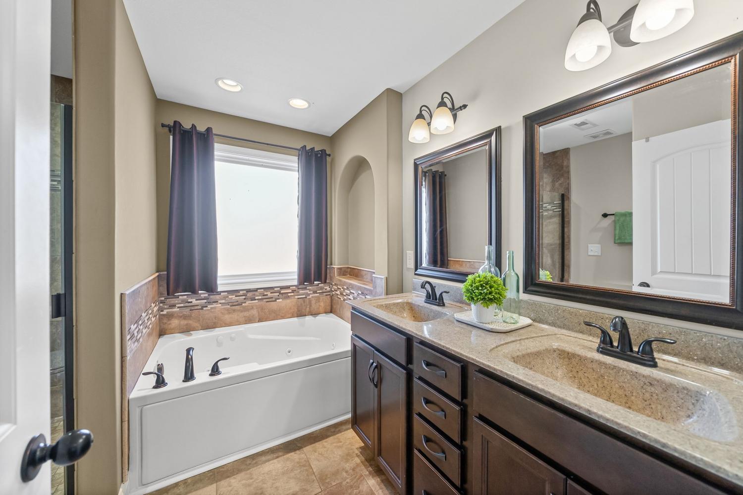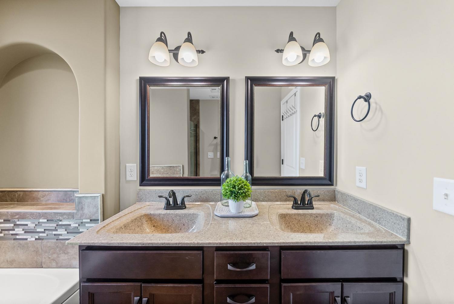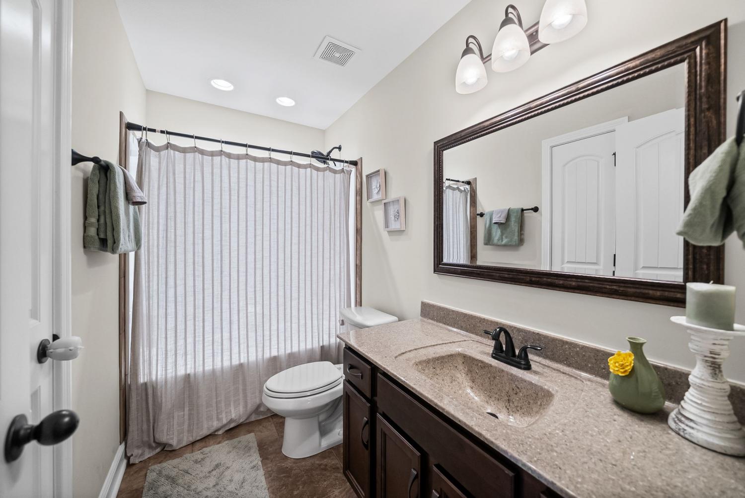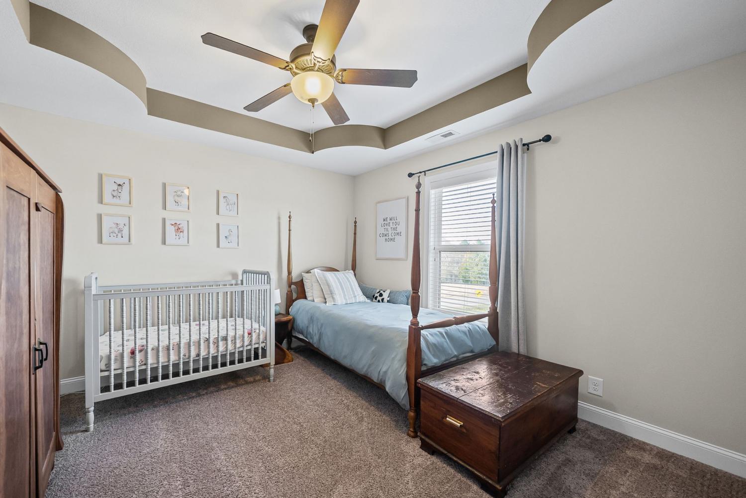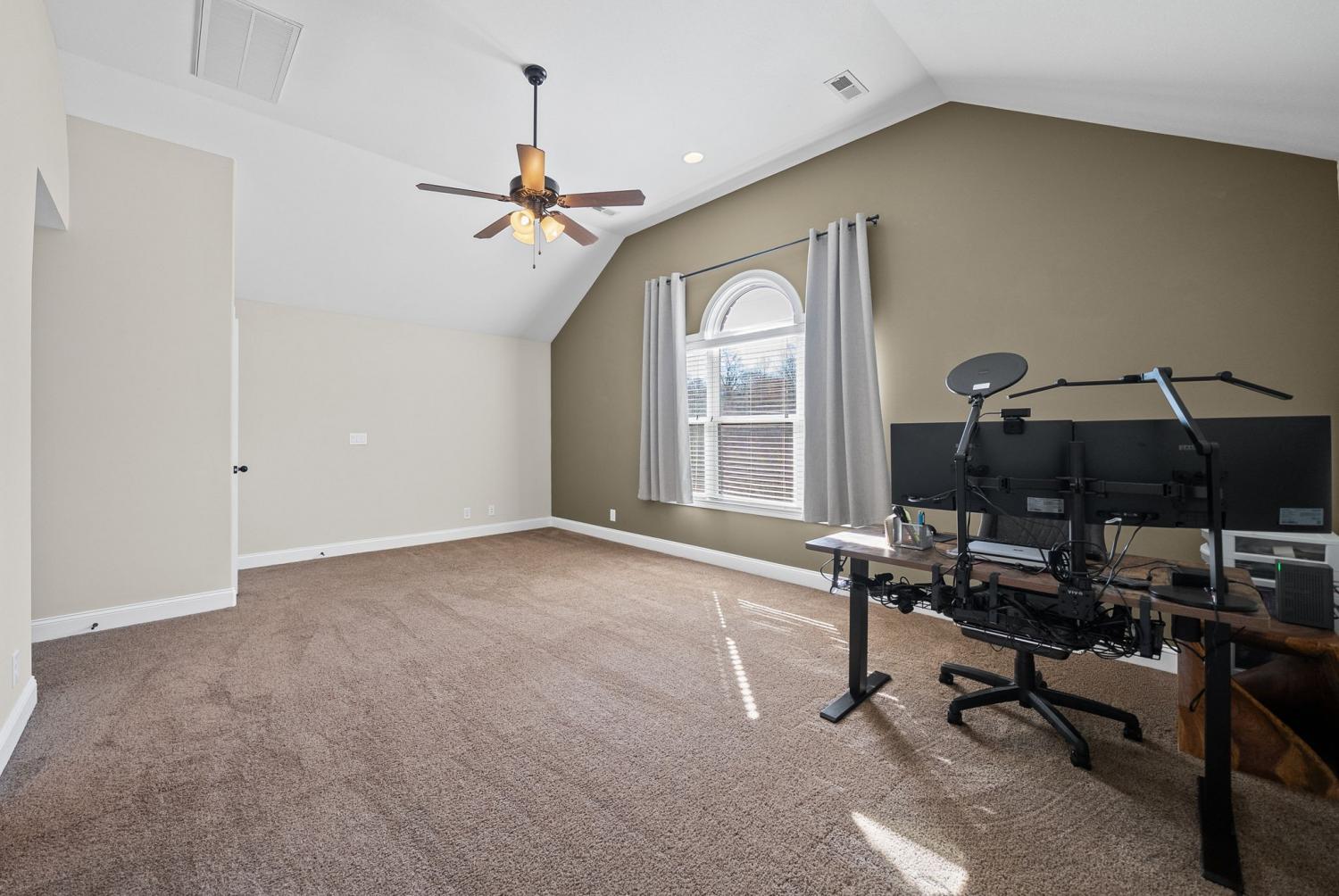 Beautiful home with plenty of space (1.5 acres) and no backyard neighbors! Home is located in a great location that is a short drive to Fort Campbell and Clarksville! Hardwood floors welcome you into the entryway and flow through the main floor. The spacious living room features a decorative fireplace mantel and large windows that bring in lots of natural light. The country kitchen boasts an island, granite countertops, large deep sink, backsplash, an eat-in space, and a pantry. The main level also features an extra-large laundry/utility room and a half bath. Upstairs, the oversized primary bedroom features a double tray ceiling, a walk-in closet and an accent wall. The spa-like primary bathroom has it all! A jetted bathtub, a separate tiled shower and a double vanity. Two large bedrooms, both with decorative tray ceilings, and a full bathroom complete the main wing of the second floor. Across the landing of the stairs is a giant bonus room with two large walk-in closets that provide plenty of storage and a convenient half bathroom. The bonus room could technically be used as a giant fourth bedroom since the septic system is rated for a four-bedroom home. The 22’x20’ garage provides even more storage area with its size, tall ceilings, and built-in shelving. Relax on the large wrap around front porch or out on the covered back porch. Grill and entertain on the giant concrete patio that has a sunshade installed as well as a fire pit area. A large portion of the back yard is fully fenced in for added privacy. The fence features a back gate used to access the remainder of the acreage. Behind the gate and towards the middle of the property you will find a playset for children and a gravel storage area. Driveway extension was installed to help make turning around easy. New HVAC unit for upstairs installed in June (2025).