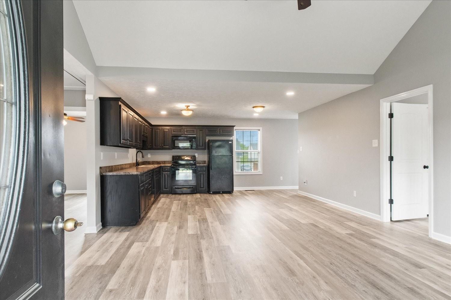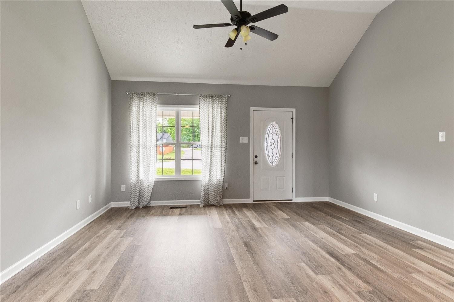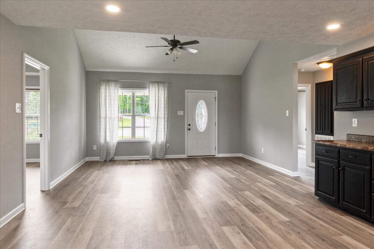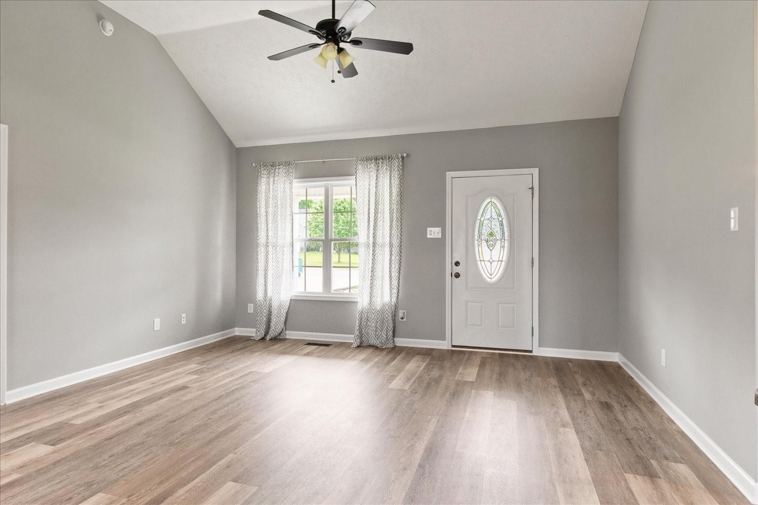 Beautiful 3 bed 2 bath home with vaulted ceiling in great room and trey ceiling in the master, Fresh coat of paint, new floor covering, single car garage concrete drive and a fenced backyard