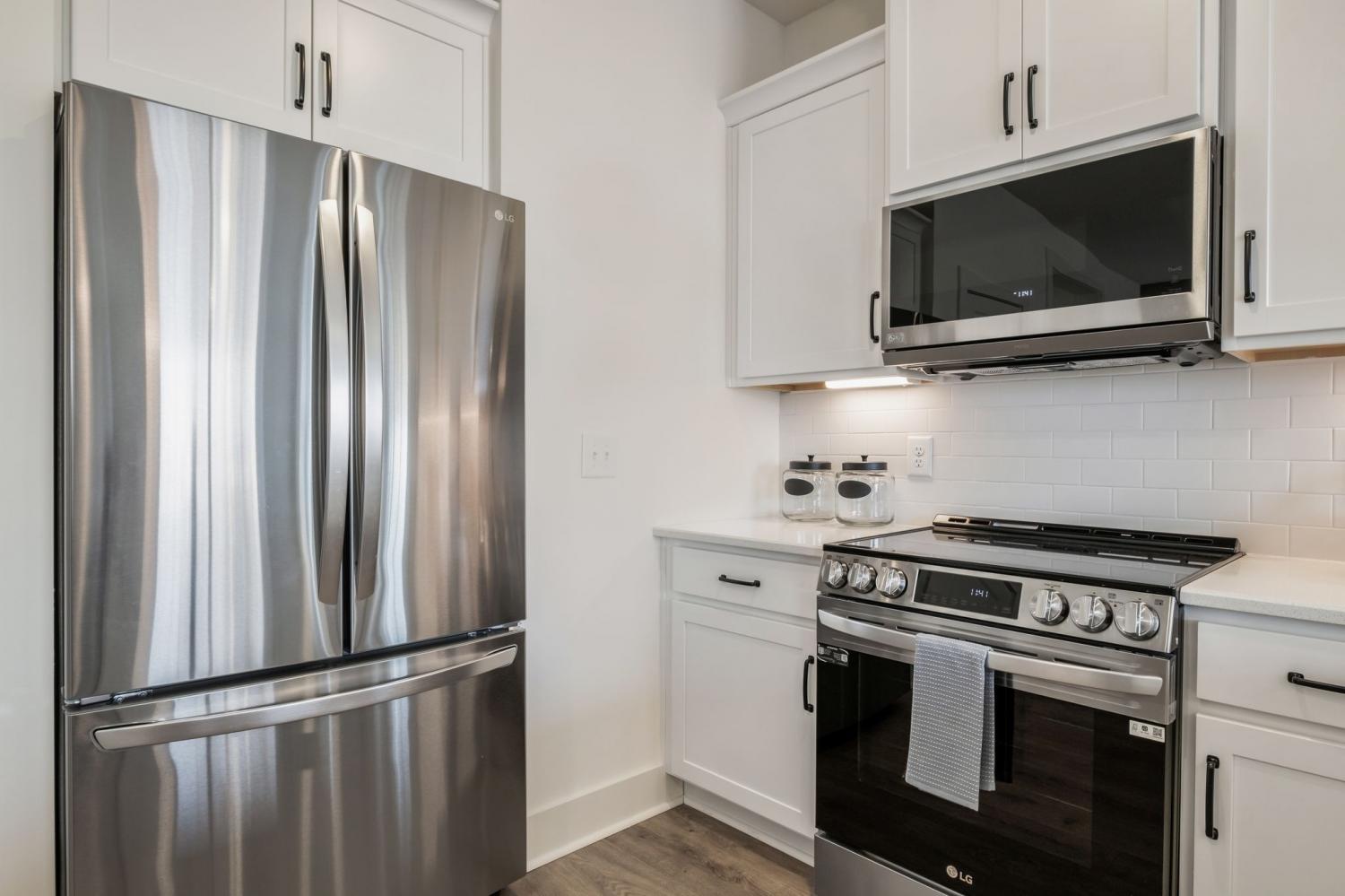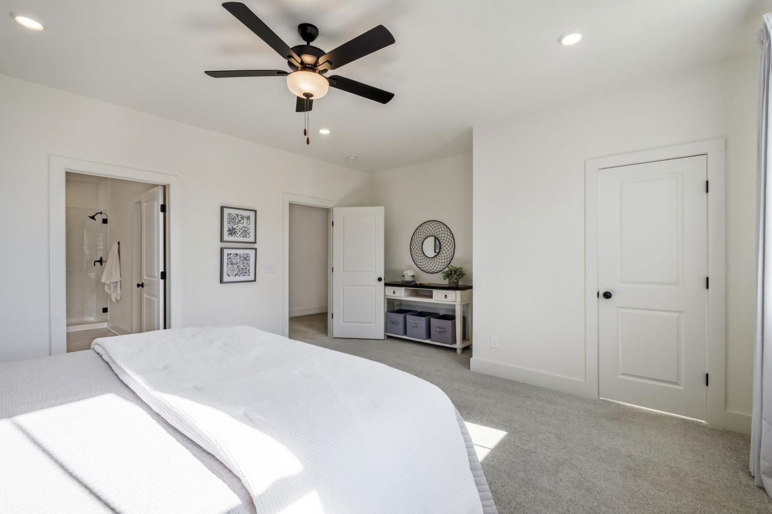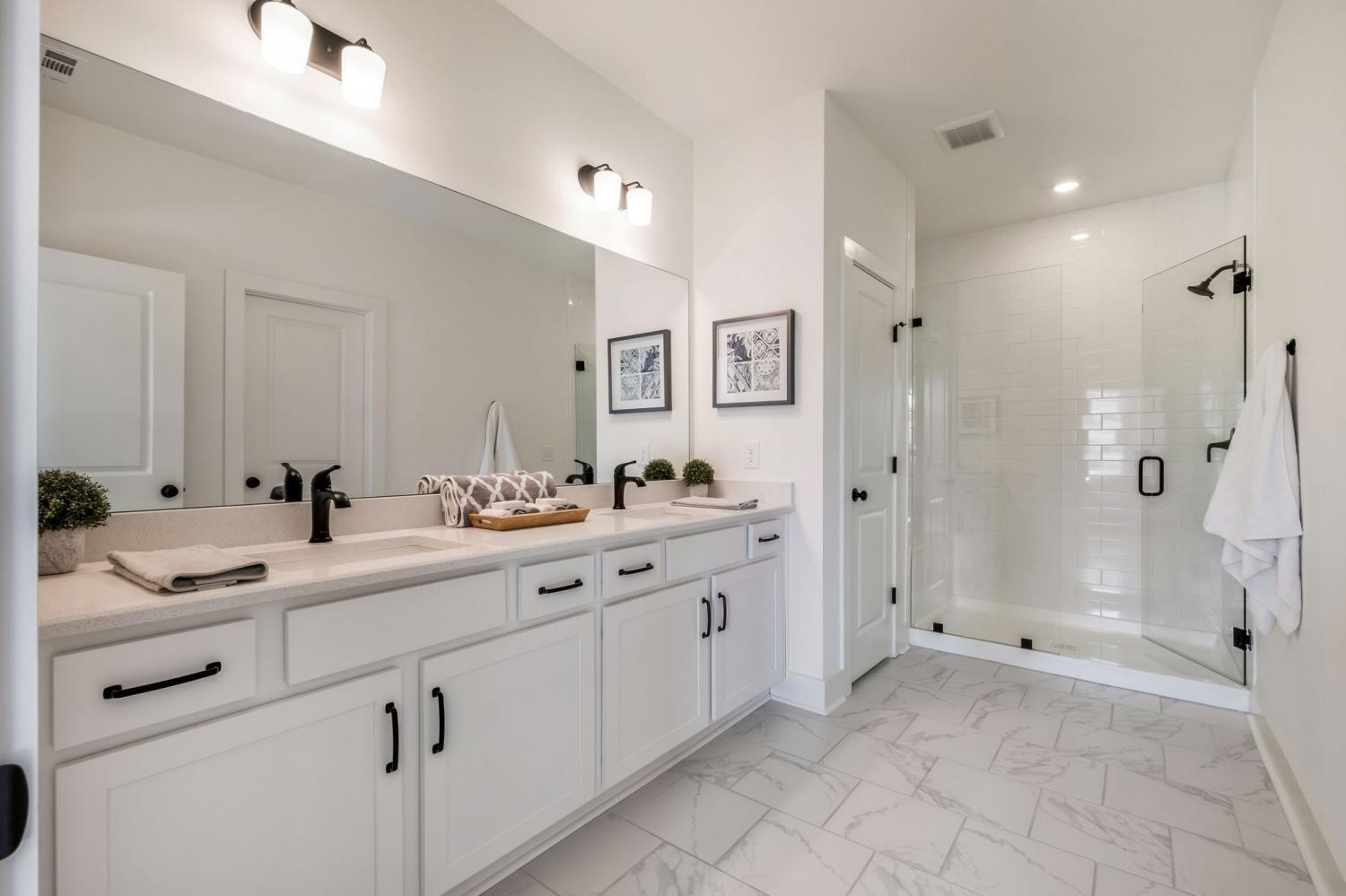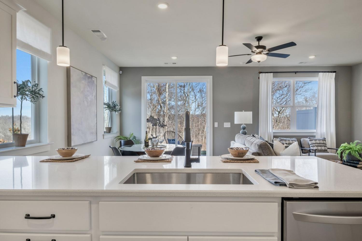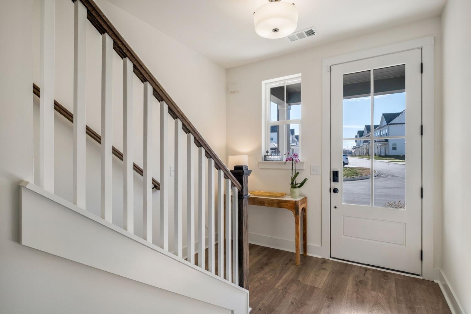 First offering of the developer's former model home. End unit location has the benefit of only one shared wall and uniquely offers an additional bank of west facing windows that provide a consistent glow of interior natural light. This particular home also has the benefit of additional backup space directly off the garage driveway for larger trucks and SUVs to pull out straight. Be the first to move in immediately and enjoy all of the upgrades put into a model home designed to display the builders very best finishes and features- A home that is completely turn key and has never been lived in. Expansive primary bedroom features a generous walk in closet and spa retreat bathroom with a frameless glass shower door and double vanities. Quartz countertops throughout, soft-close cabinetry, a suite of stainless steel appliances, and additional bells and whistles such as the oak staircase, under cabinet lighting, garage wireless keypad, front door keypad, and more. Great back yard. Inquire for details on lender incentive if using our preferred lender. Investor friendly, this property may be leased with a 6 month minimum term- no STRs ensure this community feels like a neighborhood.