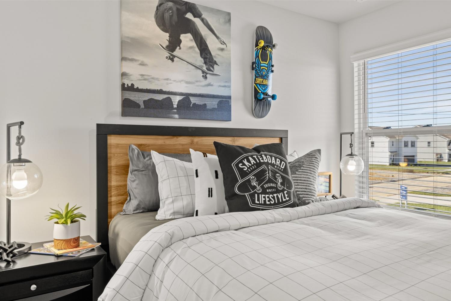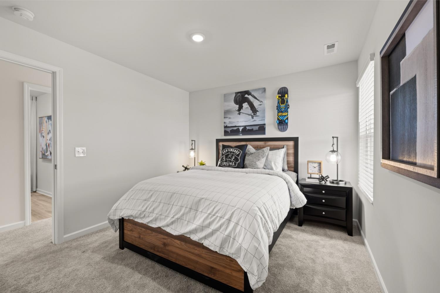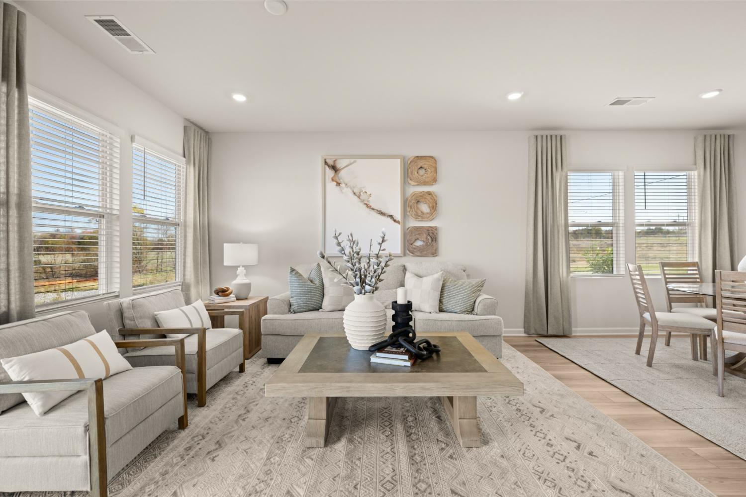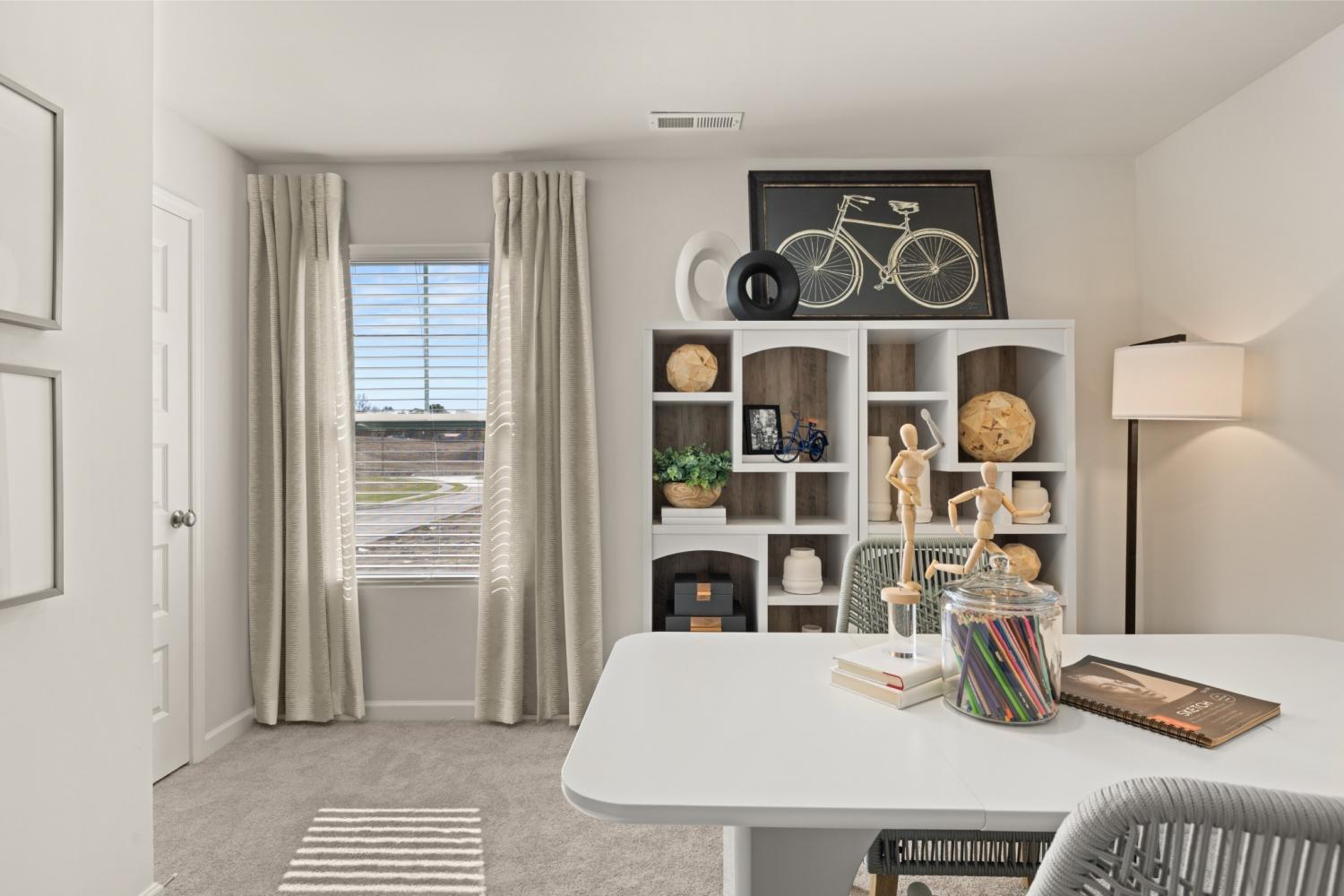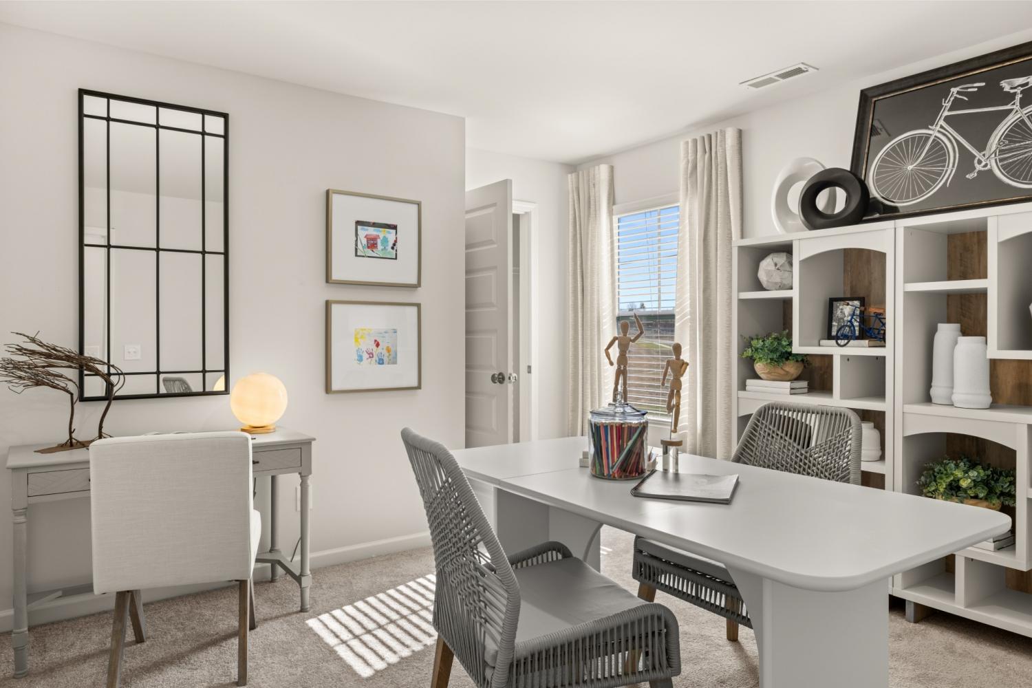 This new two-story home features a pleasing contemporary design. At the heart of the first floor, the Great Room extends effortlessly to the dining room and modern kitchen in an open-plan layout. Flex space offers versatility. The second floor hosts a bonus room and four bedrooms including a spacious owner’s suite.