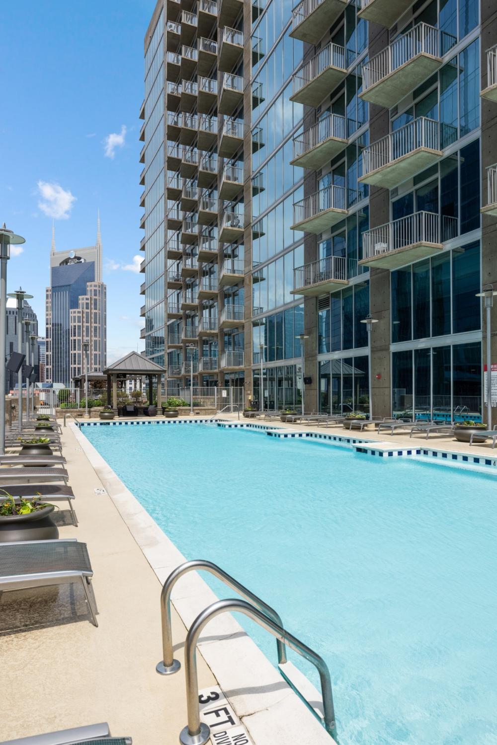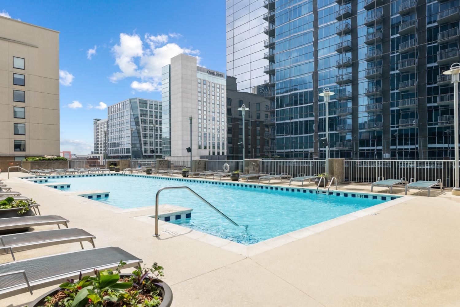 Seller will contribute six months of HOA dues as an incentive with an acceptable offer! Downtown living with front-row skyline views! Welcome to Encore Condominiums—ideally located in the heart of Sobro at 3rd & Demonbreun, just across from the Schermerhorn Symphony Center. Perched on the 13th floor, this unit offers floor-to-ceiling windows and a private balcony that showcase sweeping views of the Nashville skyline. The thoughtfully designed layout features an open-concept living and kitchen area with granite countertops, Whirlpool Gold stainless-steel appliances, and a built-in office nook. Enjoy added comforts like a custom walk-in closet, washer and dryer, and automatic blackout curtains for those cozy city nights. Encore residents enjoy premium amenities including 24/7 concierge service, a 7th-floor pool and lounge deck, a state-of-the-art fitness center, and a stylish clubroom—all with city views. Plus, with over 18,000 sq. ft. of retail and dining on-site, you’re just steps from favorites like Starbucks, Etch, The Southern, and Broadway. Additionally there is a secured, designated garage parking space included.