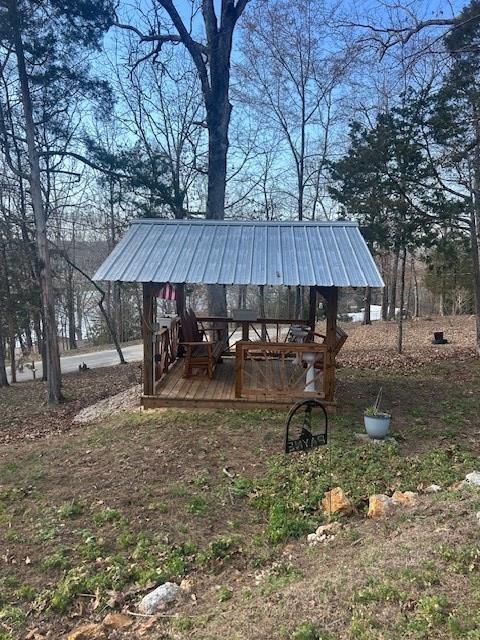 Move in ready with seasonal lake view from the front porch. This home has many extras on the inside as well as the outside. New 10'x16' covered front porch, beautiful 10'x10' covered gazebo w/a cedar swing & a cedar glider, at the other end an electric fan & light. A 12'x24' carport and full hookup RV site with 50amp electric, water & sewer. Concrete apron in rear is 18'x54' plus a 10'x30' lean-to attached to the house with concrete floor & electric. New block retaining wall by the lean-to, also a 22KW Generac whole house generator w/auto transfer switch. The front yard has a chain link fence. Inside, all floors are finished concrete, all walls & doors are tongue & groove pine & crimped tin. Large bath w/walk-in shower. The bedrooms had handmade cedar barn doors on the closets. The attached garage is 30'x30' & is heated & air conditioned, insulated w/many storage shelves & work bench. A 30k BTU gas heater is in the garage. Close to the lake