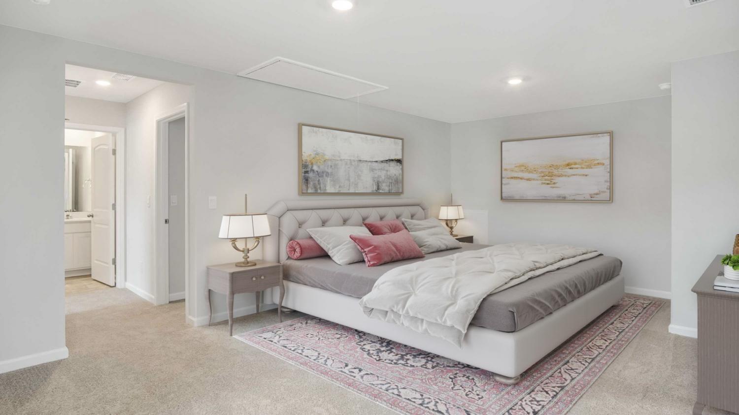 Belfort plan- 4 bedroom, 2.5 bath, with 2,267 sq ft. No rear neighbors! A modern style in a thoughtfully designed layout. Upon entry, you're welcomed by a spacious great room. The open kitchen and dining area are the heart of the home, featuring a large island for bar-style seating, a pantry, quartz countertops, and 36-inch cabinets, perfect for cooking and entertaining. The first-floor primary suite includes a walk-in closet, dual vanity, glass shower, and linen closet. Just off the 2-car garage is a built-in valet and laundry space, creating a functional mudroom. Upstairs, a large loft provides a flexible second living area. Three additional bedrooms, two with walk-in closets, and a second full bath complete the upper level. All baths feature sleek quartz countertops. Enjoy the smart home tech package, giving you control of lights, temperature, and more from your device whether home or away. Woodbridge Glen is a quiet beauty with rolling hills and lots of green space, conveniently located just 1 mile from I-40, halfway between both Mt. Juliet and Lebanon. The neighborhood features a beautiful pool, 2 spacious dog parks, playground, and a trail to the natural duck pond and pavilion. Ask about our amazing interest rates and incentives! Taxes are estimated. Estimate completion in June.