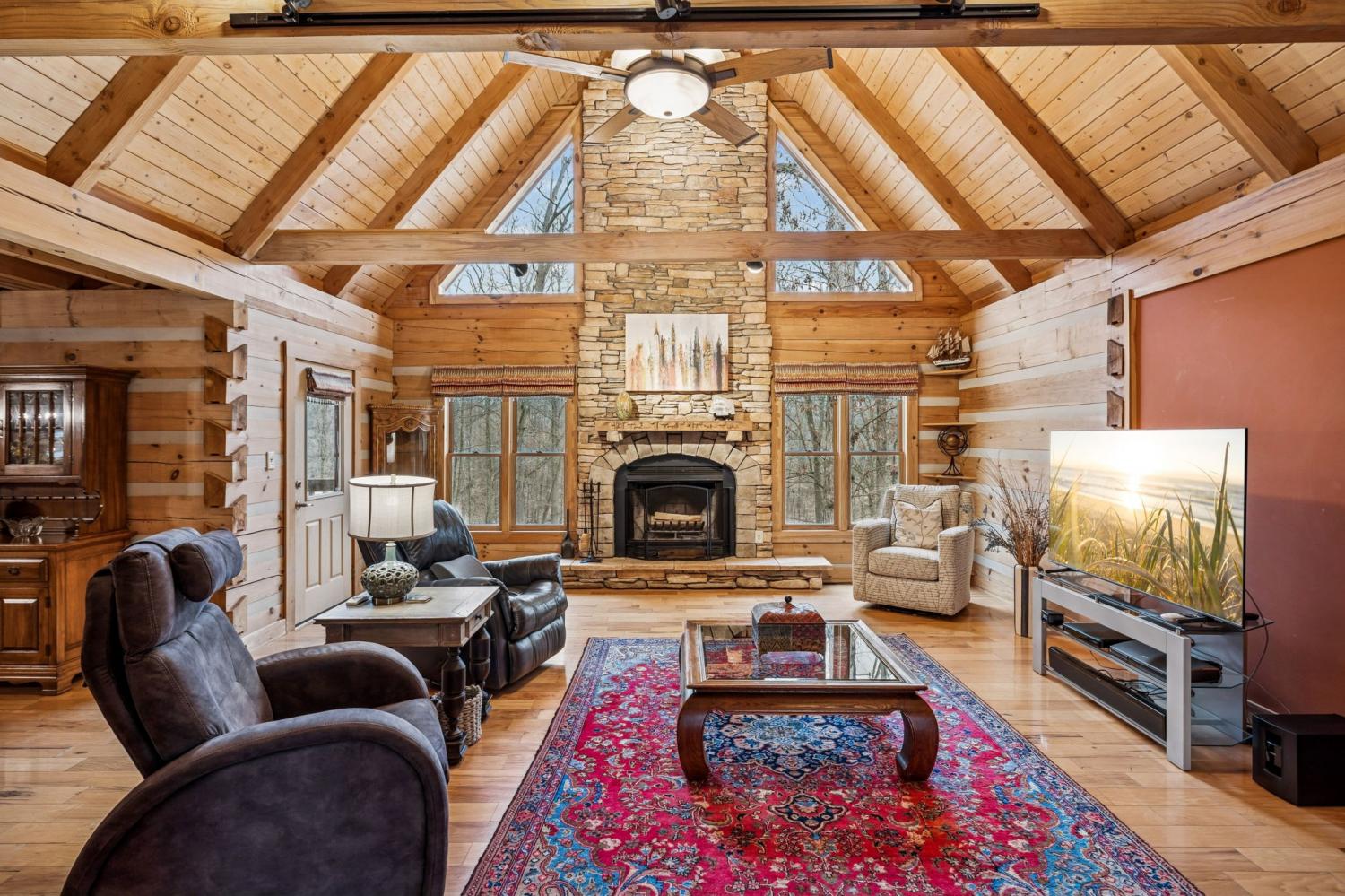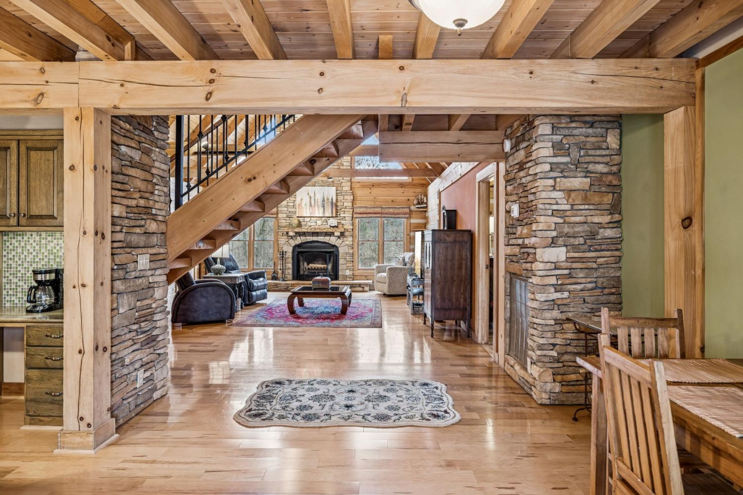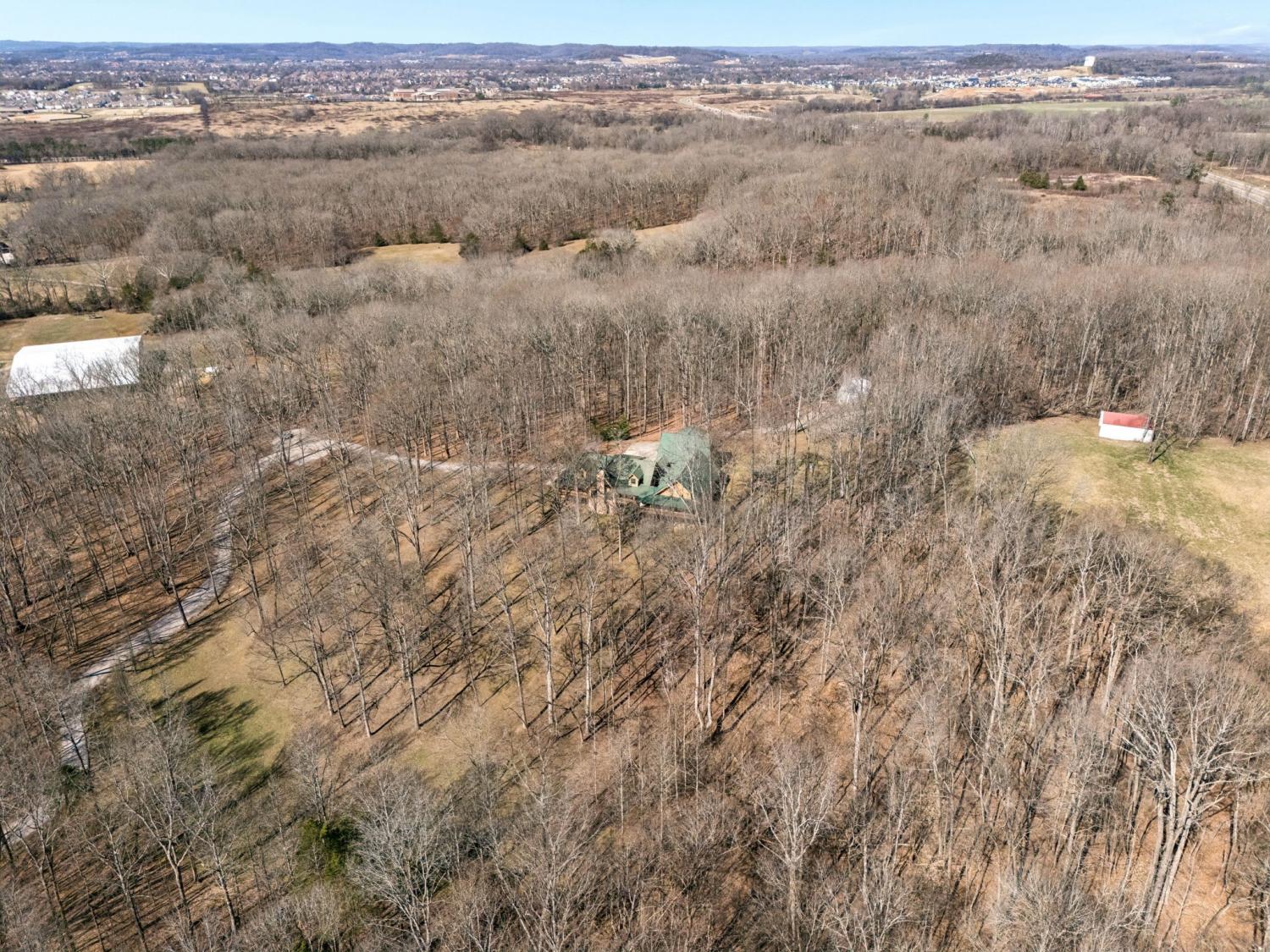 PRICE IMPROVEMENT! INSTANT EQUITY. Located just off June Lake Blvd, this one of a kind modern log estate offers a rare blend of privacy, luxury, and convenience, just minutes from Franklin and Spring Hill. Set on 17.75 acres, this niche property delivers a peaceful, scenic setting with everyday accessibility. The main residence features 3 bedrooms and 2 flex rooms with walk in closets, designed with refined finishes that balance rustic character and modern comfort. Open living spaces create an easy flow for entertaining and daily living, all centered around natural views. A standout feature is the THX surround sound home theatre with premium zero gravity seating, offering a truly immersive experience. Nearly 700 square feet of wraparound porch space provides the perfect setting to relax and take in the surroundings. The detached guest house with full kitchen and bath adds versatility for guests, multigenerational living, or a private office. Additional highlights include a heated and cooled unfinished basement, powered metal shop, and trail system throughout the property for walking, hiking, or ATV use. Well maintained with clear pride of ownership, recent updates include three HVAC units replaced, a renovated primary bathroom, upgraded gutter system, and a tar and chip driveway. Greenbelt tax status is in place, adding long term value. A unique opportunity for those seeking space, privacy, and a distinctive lifestyle in a highly desirable location. PRICED BELOW APPRAISED VALUE!