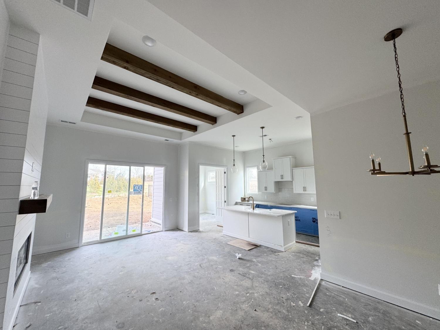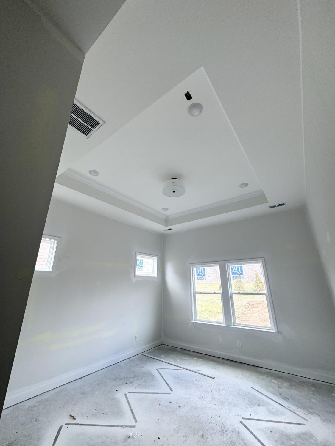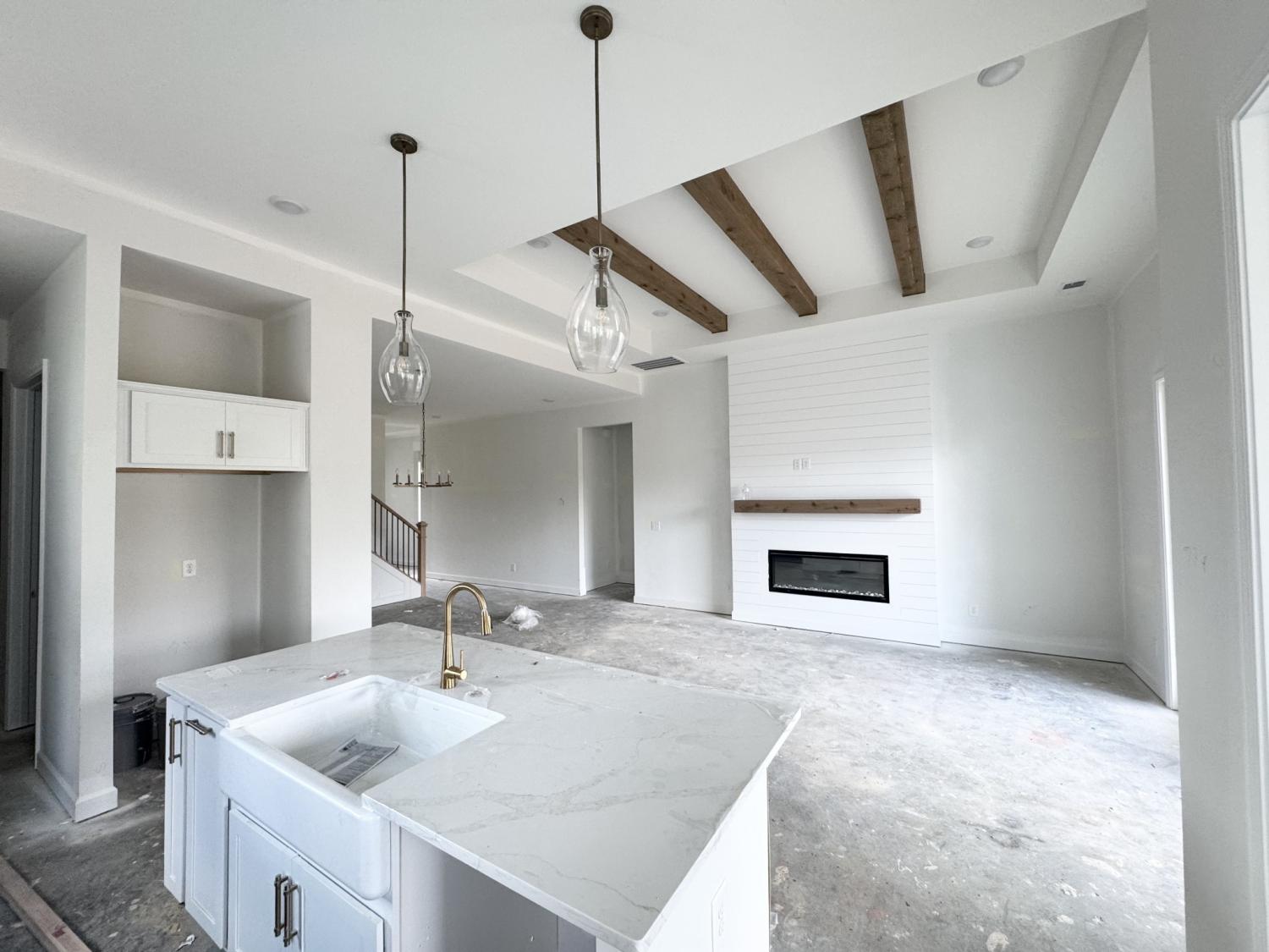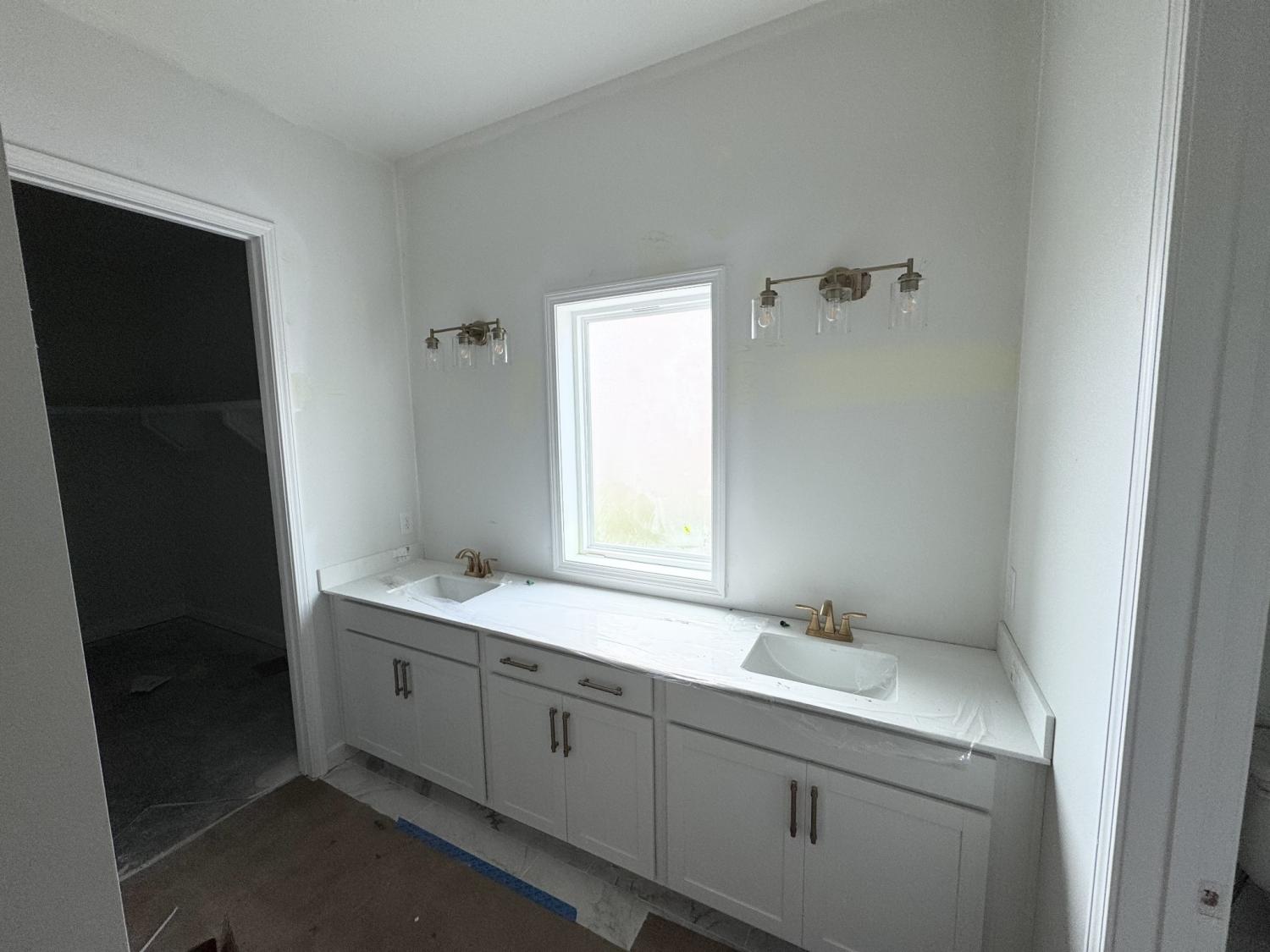 Quick Move in Damien Plan. 4 beds and 3 full baths. 2 Bedrooms on main floor with 2 bedrooms up with Gameroom and Media Room. Gourmet, Kitchen layout with Farmhouse sink and soft close doors and drawers, under cabinet lighting, built in trash can, Wood Shelving in Primary Closet and Pantry, Cedar Beams in Family Room, Coffered Ceiling in Office. Tray ceilings in Primary and foyer. Hardwood Stairs. Tiled shower in Primary. Electric Fireplace with Cedar Mantel. Laundry Sink. Drop Zone. Door from primary closet to Laundry. HOA includes Internet with 1 GIG from United