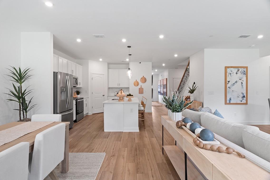 Discover the charm and spaciousness of the Calderwood floor plan at Barton Hills in Spring Hill. The expansive kitchen, complete with a center island, seamlessly flows into the great room and dining area, making it ideal for entertaining. Sliding glass doors lead from the dining area to a welcoming patio, perfect for outdoor gatherings. The main-floor owner's suite provides a serene escape with a generous walk-in closet and a luxurious attached bath. An additional secondary bedroom, accompanied by full bathroom, downstairs is an ideal guest room or office—whatever your family needs. Upstairs, the home offers a large storage room suitable for a variety of uses, such as a playroom or hobby space. Three additional bedrooms and a full bath with double sinks ensure ample space for family and guests. An expansive game room completes the second floor, offering an ideal space for family fun and relaxation.