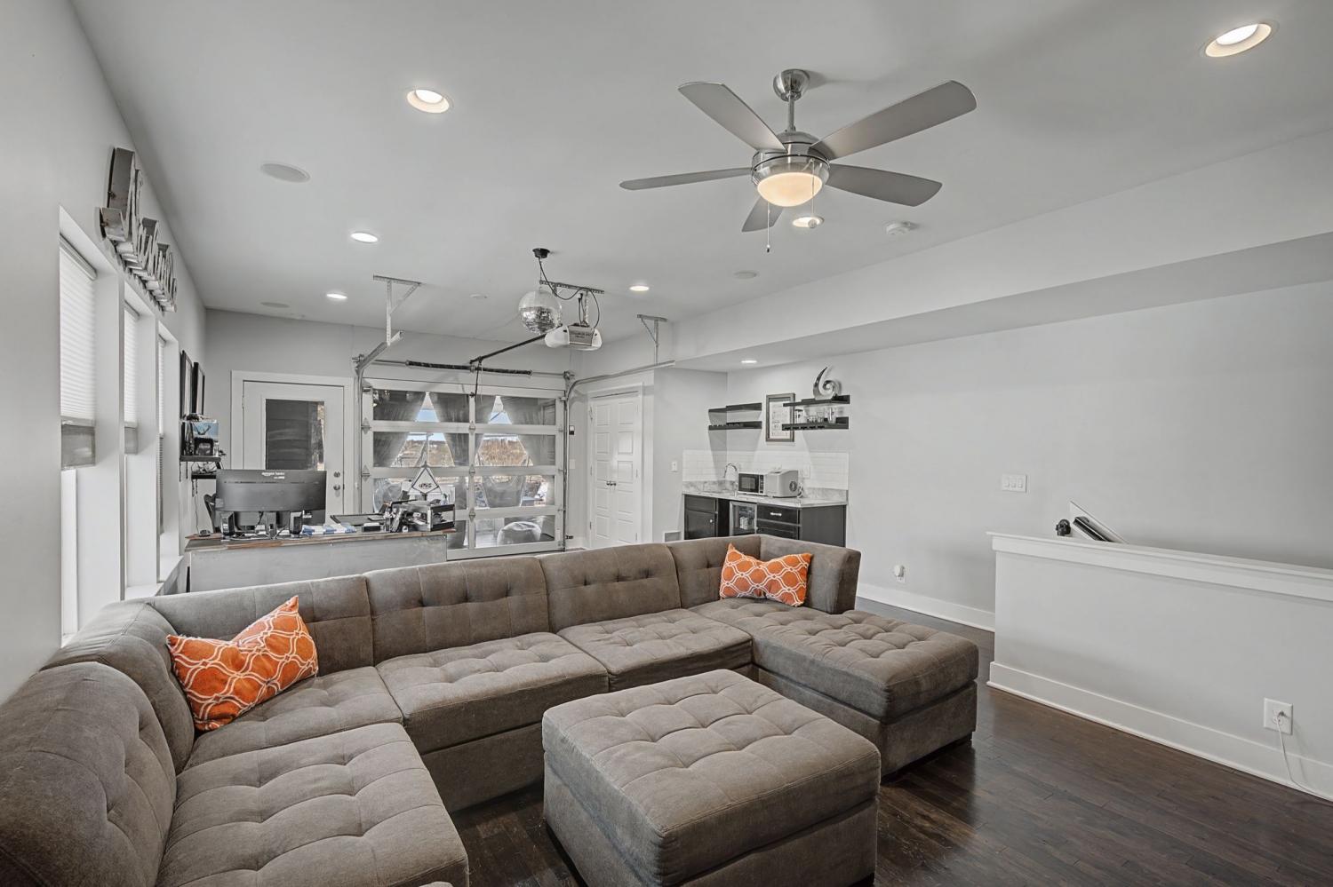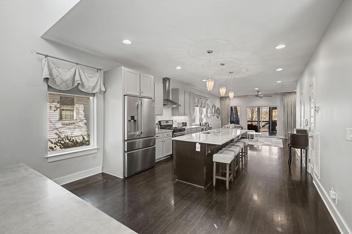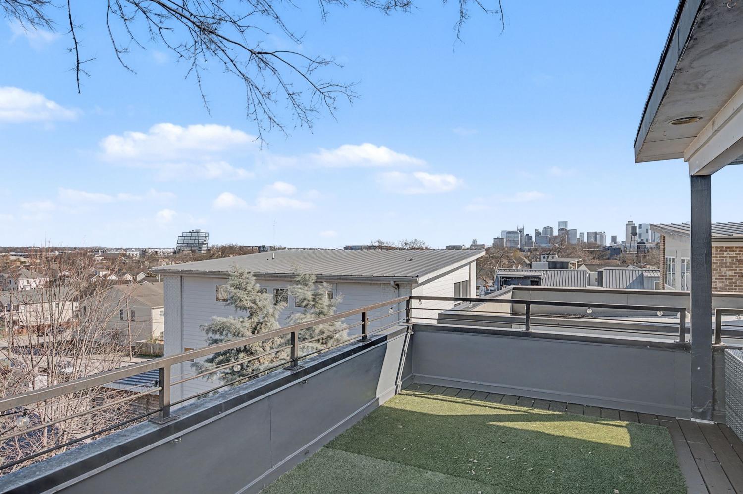 Some homes simply offer square footage. Others expand the way you live. Here, indoor and outdoor spaces are layered with intention, creating a home that feels open, social, and effortless from the start. The main level is designed for natural flow. Living and dining areas connect seamlessly, with custom floor to ceiling window treatments softening the light and adding quiet polish. Just beyond, a screened in porch extends daily living outdoors, equally suited for morning coffee, casual dinners, or hosting friends. It overlooks a fenced backyard finished with turf, front and rear irrigation, and French drains designed to handle Tennessee rain showers with ease. The result is outdoor living that feels refined and low maintenance. Upstairs, 3 well proportioned bedrooms balance privacy and connection. The primary suite offers custom room darkening Roman shades and an en-suite spa-like bath detailed with waterfall and handheld shower heads, creating a tailored retreat at the end of the day. The 3rd floor elevates the experience. A spacious bonus room with a wet bar sets the stage for entertaining or relaxed evenings in. Just outside, a partially covered rooftop deck anchored by a gas log fireplace captures views of the Nashville skyline. Designed for year round enjoyment, it brings the energy of the city into your own private setting. This single owner home has been thoughtfully and meticulously maintained. A refrigerator replaced approximately six months ago, a newer dryer, and heating and air systems serviced annually reflect steady stewardship and pride of ownership. A two car detached garage adds convenience and storage. Located just north of Germantown and near the evolving East Bank, including the planned Oracle corporate campus, this residence pairs established neighborhood character with forward looking momentum. A home built for seamless indoor outdoor living and long term confidence.