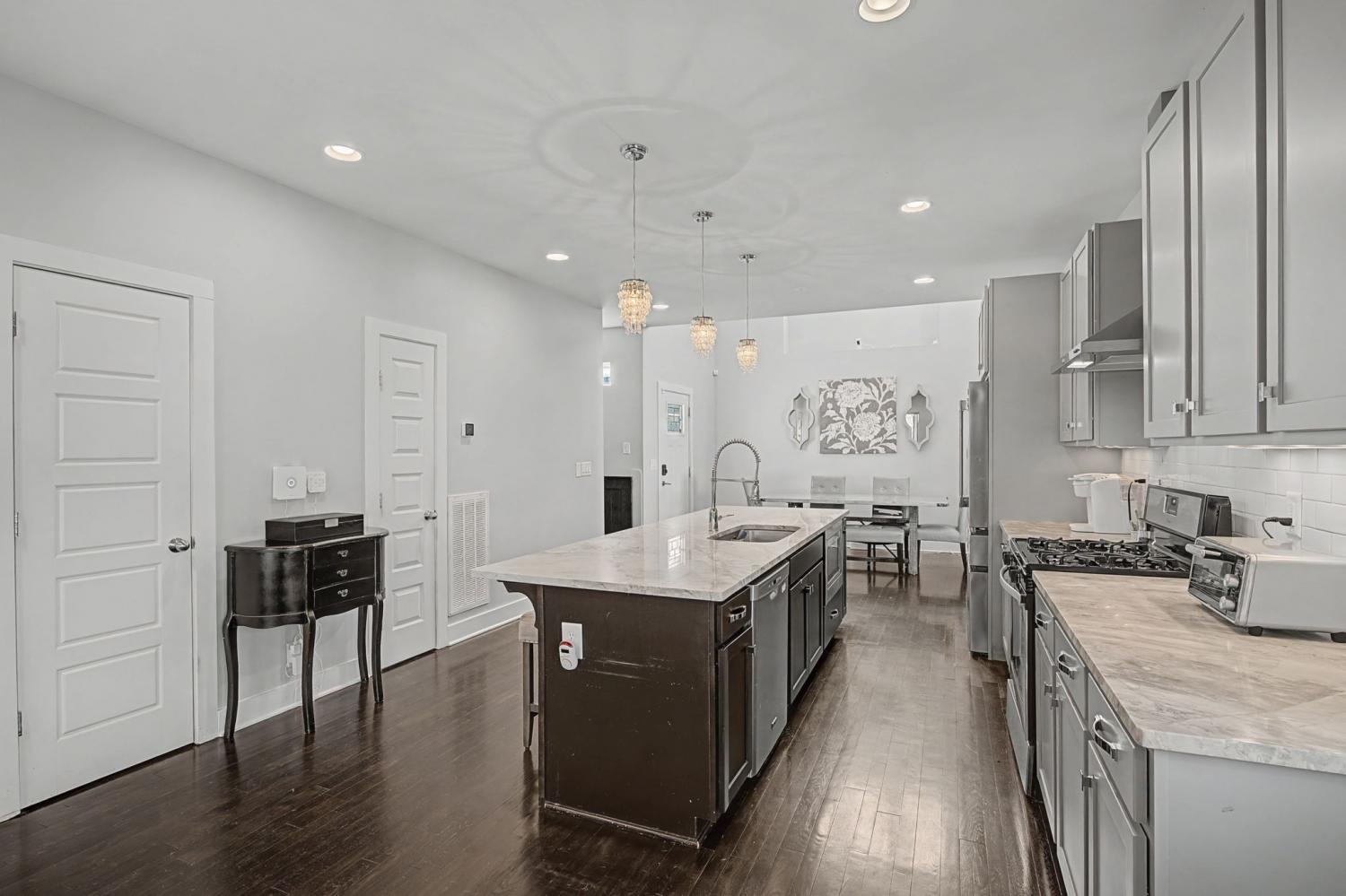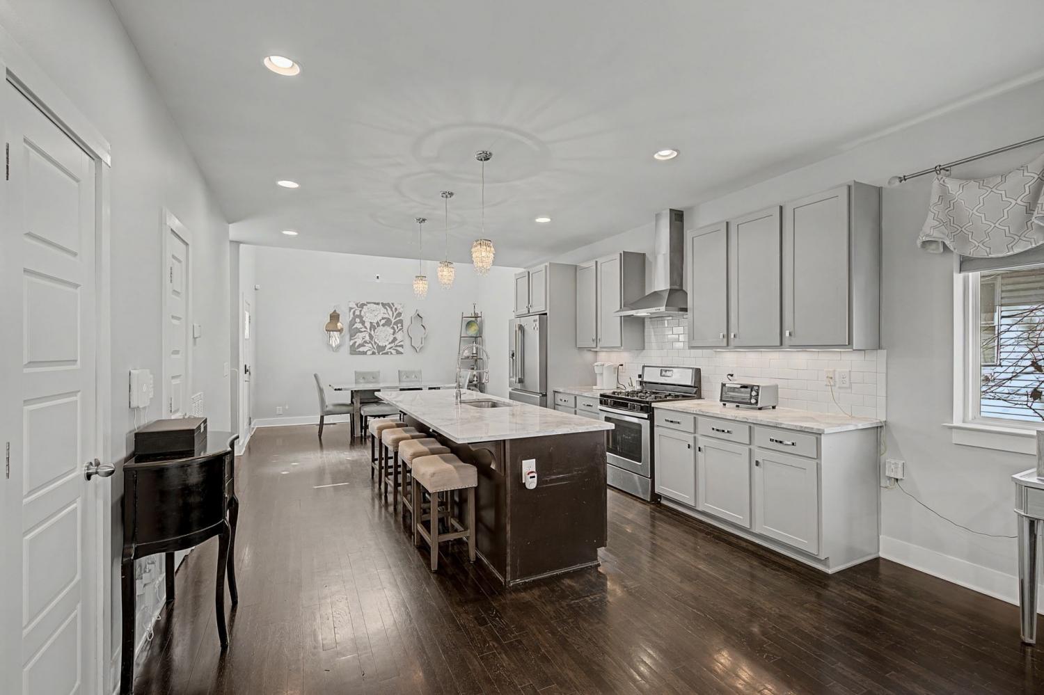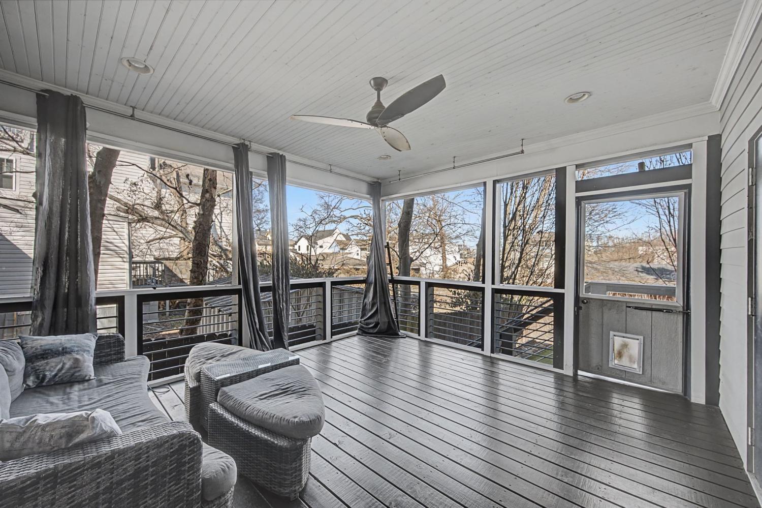 Some homes simply offer square footage. Others expand the way you live. Here, indoor and outdoor spaces are layered with intention, creating a home that feels open, social, and effortless from the start. The main level is designed for natural flow. Living and dining areas connect seamlessly, with custom floor to ceiling window treatments softening the light and adding quiet polish. Just beyond, a screened in porch extends daily living outdoors, equally suited for morning coffee, casual dinners, or hosting friends. It overlooks a fenced backyard finished with turf, front and rear irrigation, and French drains designed to handle Tennessee rain showers with ease. The result is outdoor living that feels refined and low maintenance. Upstairs, 3 well proportioned bedrooms balance privacy and connection. The primary suite offers custom room darkening Roman shades and an en-suite spa-like bath detailed with waterfall and handheld shower heads, creating a tailored retreat at the end of the day. The 3rd floor elevates the experience. A spacious bonus room with a wet bar sets the stage for entertaining or relaxed evenings in. Just outside, a partially covered rooftop deck anchored by a gas log fireplace captures views of the Nashville skyline. Designed for year round enjoyment, it brings the energy of the city into your own private setting. This single owner home has been thoughtfully and meticulously maintained. A refrigerator replaced approximately six months ago, a newer dryer, and heating and air systems serviced annually reflect steady stewardship and pride of ownership. A two car detached garage adds convenience and storage. Located just north of Germantown and near the evolving East Bank, including the planned Oracle corporate campus, this residence pairs established neighborhood character with forward looking momentum. A home built for seamless indoor outdoor living and long term confidence.