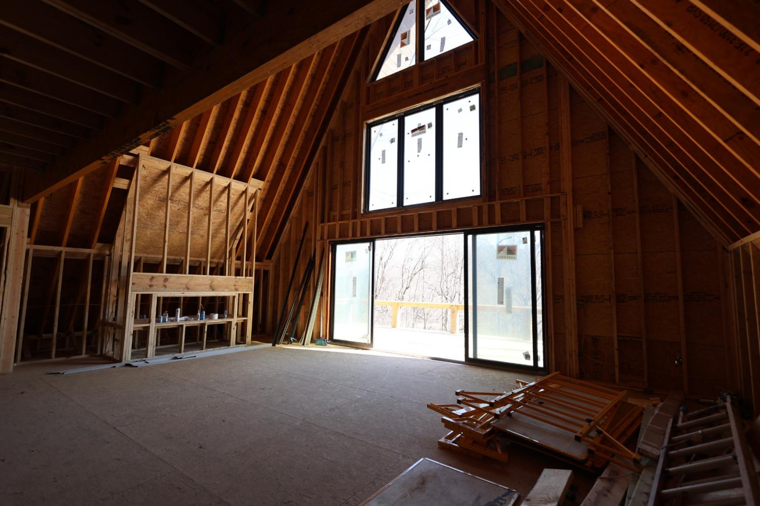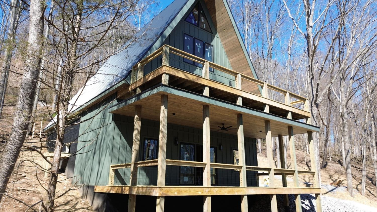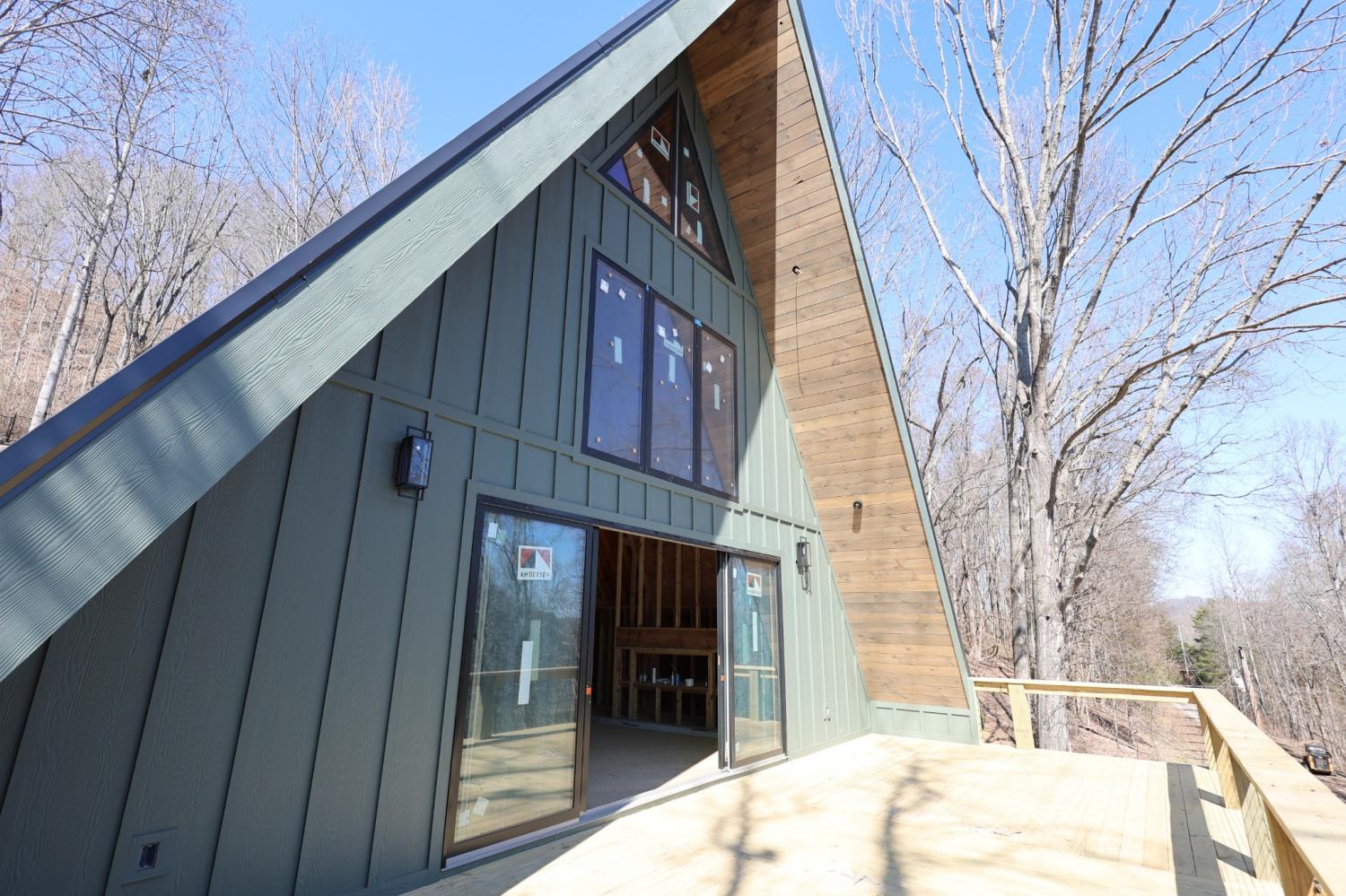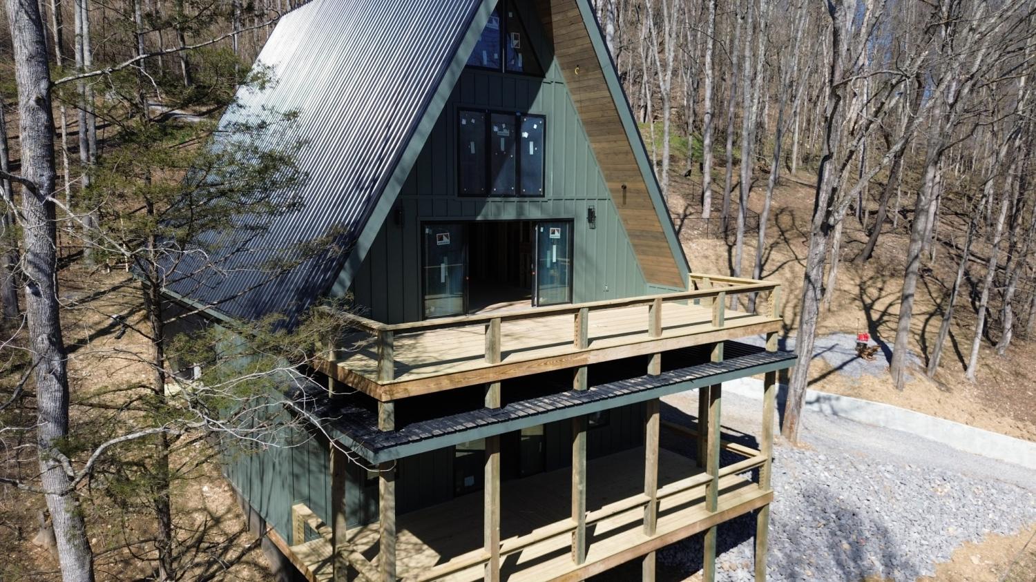 Modern A-Frame New Construction with Lake Views Discover the opportunity to create your dream home in the highly sought-after Lakeview Mountain Estates, featuring a private community boat ramp and located just minutes from Hurricane Marina with convenient lake access. This striking 3,000 sq ft A-frame is professionally designed with a modern organic aesthetic, blending earthy tones, sleek contemporary finishes, and warm, inviting elements. Currently finished to the studs, with rough-in electrical and plumbing complete, this home offers a rare chance to personalize the final selections to match your vision. The spacious primary suite includes a walk-in tile shower and a generous walk-in closet. The layout also features additional finished rooms and second full bathroom, offering versatile space for guests, a home office, or recreation. The kitchen is designed to impress with stained wood cabinetry, a built-in coffee/wine bar, and ample space for entertaining. Architectural features include soaring ceilings, massive picture windows, and sliding doors that frame stunning lake views while filling the home with natural light. Upstairs, there is an additional room and a unique mezzanine offering flexible living space—ideal for a lounge, game or pool table area, or cozy reading nook. A third-floor loft provides even more adaptable space. Outdoor living is equally impressive with two large covered decks perfect for year-round enjoyment. The oversized garage includes a 12-foot door, ideal for storing a boat or lake toys. This is a rare opportunity to own a one-of-a-kind modern A-frame in Lakeview Mountain Estates, ready for your personal finishing touches—perfect as a full-time residence, vacation retreat, or future investment.