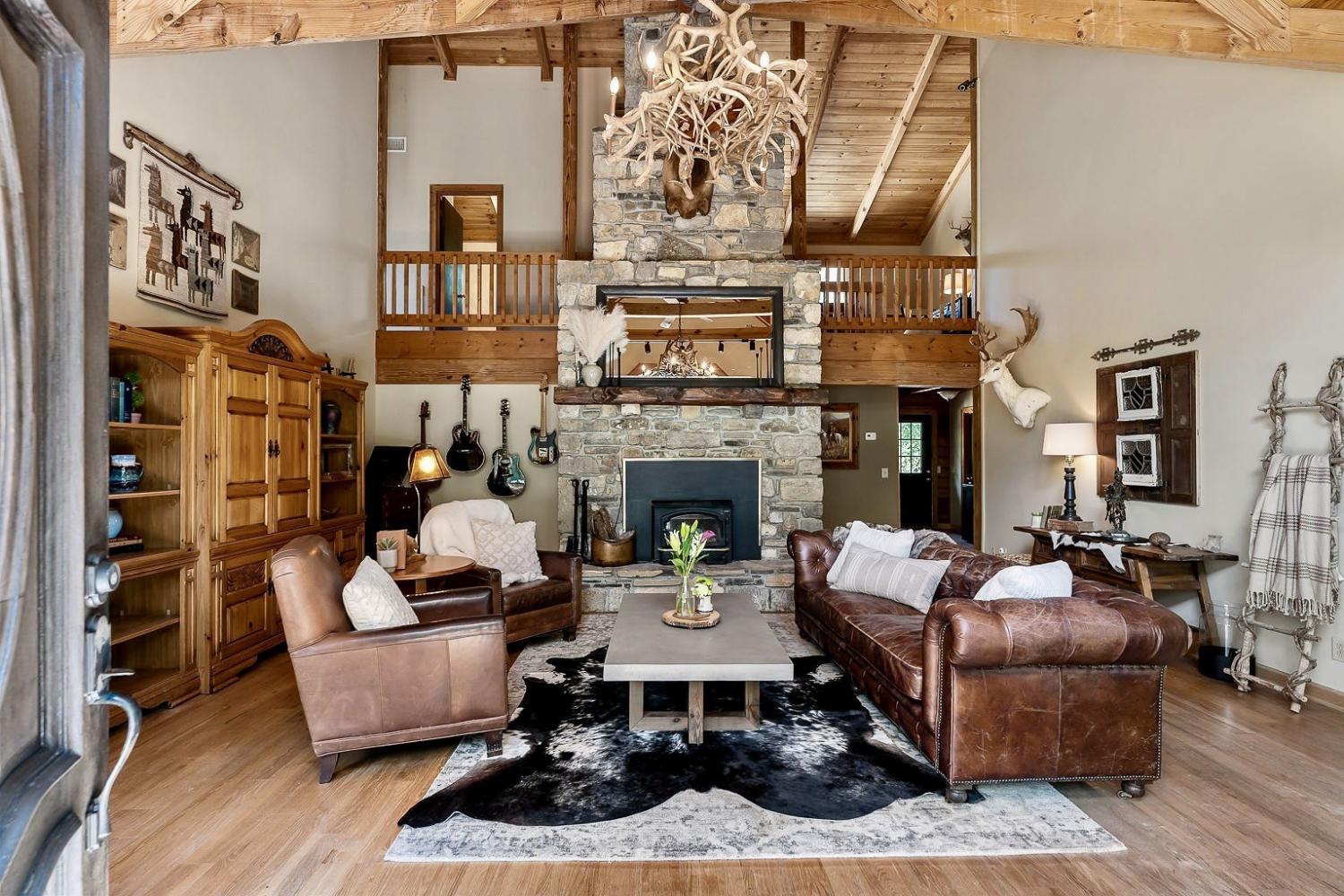 Experience unparalleled privacy and natural beauty at this extraordinary 37-acre hilltop retreat, where rustic elegance meets modern luxury. Ideally located less than an hour from Nashville International Airport, just 20 minutes from Center Hill Marina and Hidden Harbor Marina, and only 15 minutes from the charm of historic downtown Smithville. At the heart of the property stands a custom 6,900 sq ft Canadian Western Cedar residence, offering 5 spacious bedrooms and 4 full baths. The grand living room features soaring vaulted ceilings, exposed beams, and a stunning stone fireplace that creates a warm and inviting atmosphere. Designed for both relaxation and entertaining, the estate includes an 18x32 saltwater pool—perfect for hosting family and friends or simply soaking in the serene surroundings. Whether you're looking for a luxurious primary residence, a private getaway, or a retreat from city life, this one-of-a-kind property offers endless possibilities and unmatched tranquility.
