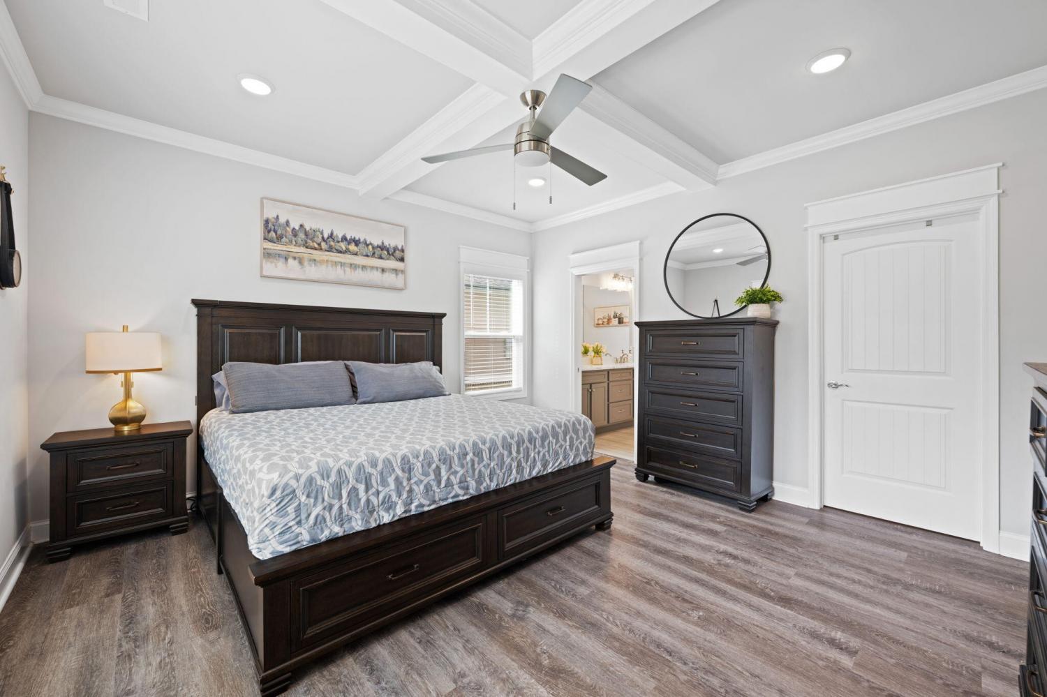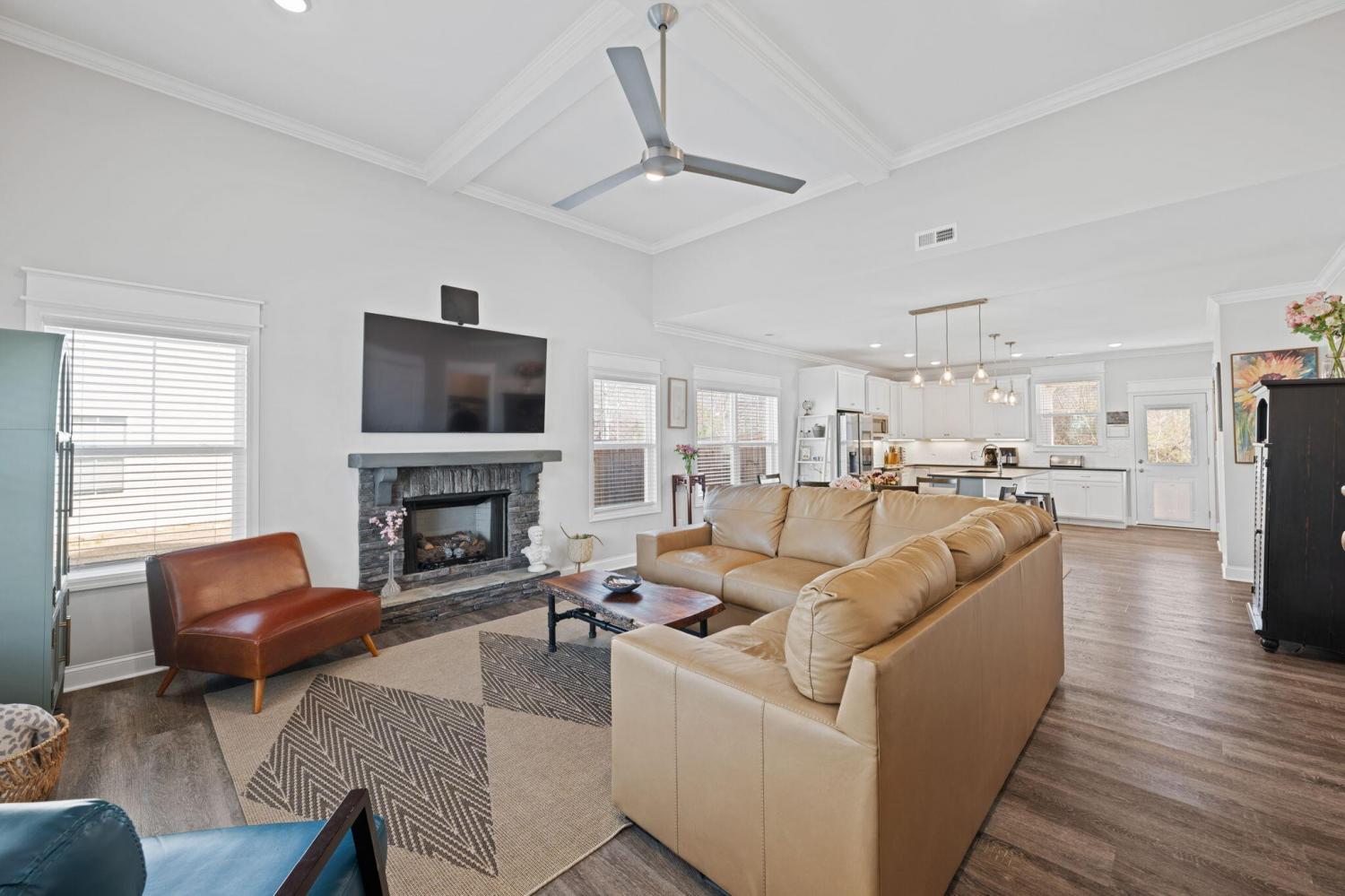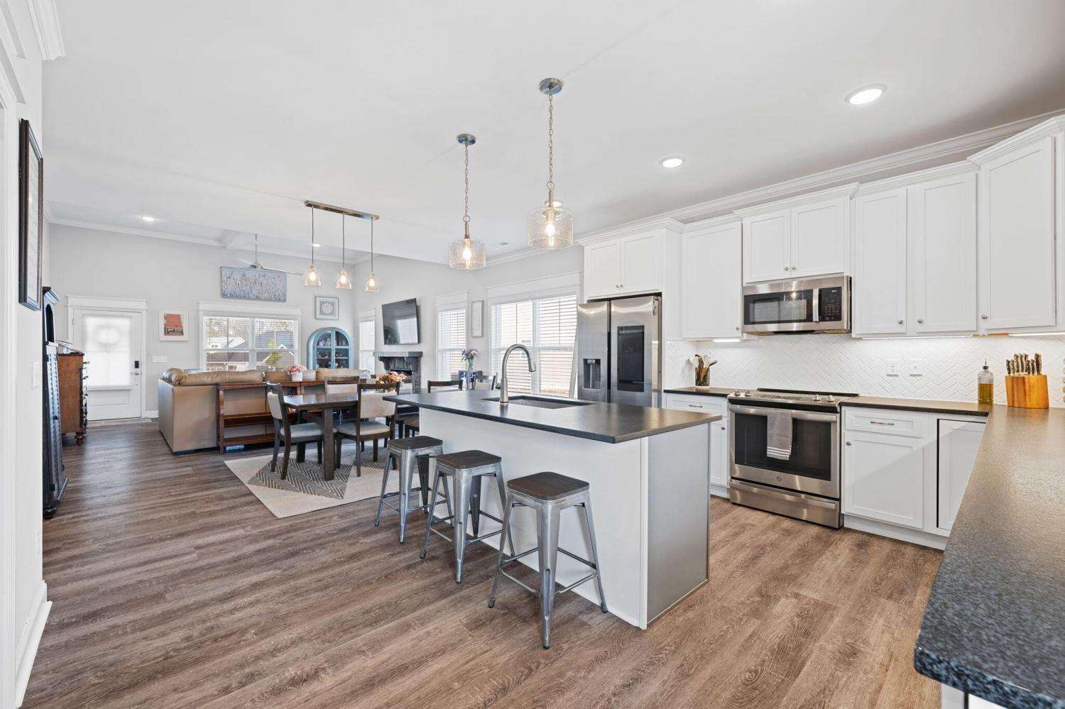Swan Cove, where comfort, convenience and lifestyle come together. This beautifully designed home features a spacious open floor plan perfect for everyday living and entertaining highlighted by cozy fireplace and LVP flooring in the main living area. The kitchen offers stainless steel appliances and leathered granite countertops combining style with functionality. The primary suite is conveniently located on the main level with 3 additional bedrooms upstairs providing plenty of space for family, guest or a home office. The attic space already has electrical and offers the potential to be easily converted into a 5th bedroom or additional living space Enjoy the best of location and lifestyle. Minutes from nearby lakes for boating and fishing and outdoor recreation. A short drive to Hamilton Place mall for shopping and dining and easy access to downtown Chattanooga for entertainment. Also, Convenient to major employers both Volkswagen and Amazon Fulfilment Center. Whether you're looking for peaceful living close to nature or quick access to work this Swan Cove home delivers the perfect balance. It's A must SEE !!