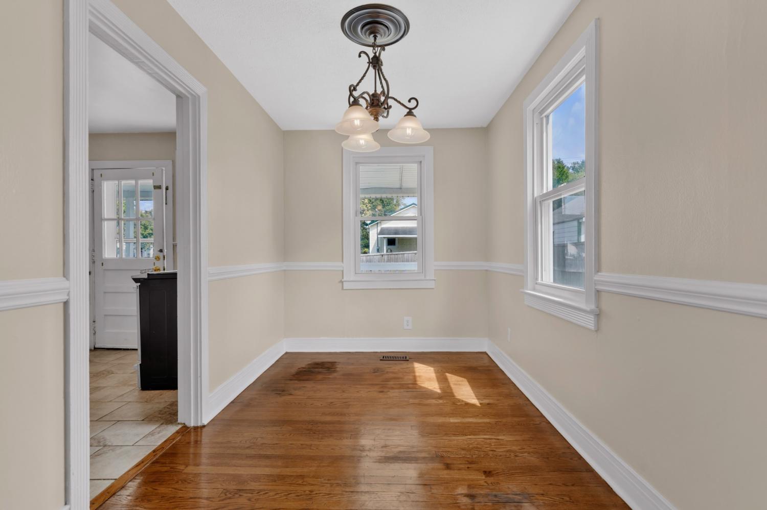 Lovely 1940s cottage with original hardwood floors and original woodwork and trim, plus new bathroom floor tile. This home boasts a formal dining room—perfect for family gatherings and quiet meals. The upstairs has been completely renovated with fresh paint, new flooring, and an A/C split unit. This space has endless possibilities: a third bedroom, office, or flex room. This cottage also offers the comfort of a large back porch and an oversized backyard with privacy fencing—perfect for enjoying morning coffee or entertaining friends and family for the ideal cookout, with plenty of room for fun and games. Let’s not forget the large, unfinished basement with washer and dryer hookups. This space also has endless possibilities. Conveniently located close to historic Columbia Square, hospitals, and schools. A great starter home, empty-nesters, or investment opportunity.
