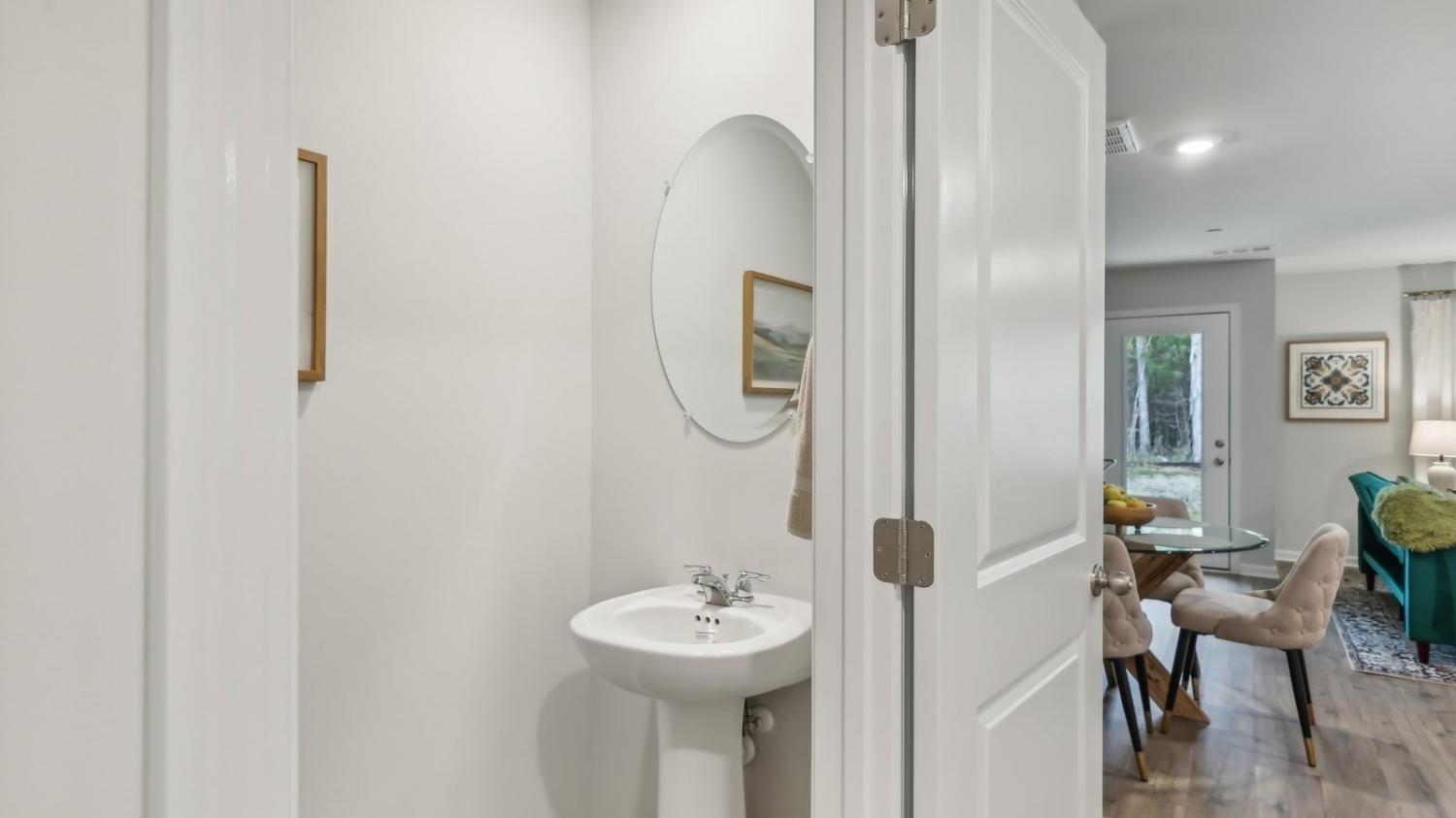 The Pearson is one of our newest townhomes at Saddle Trace in Lewisburg, Tennessee. This modern, open-concept floorplan features 3 bedrooms, 2.5 bathrooms, and a 1-car garage within 1,418 sq. ft. Enjoy low-maintenance townhome living paired with elegant design found only in the Pearson. Upon entering, a foyer and powder room welcome you before opening into the spacious kitchen and living area. The kitchen offers quartz countertop seating and plenty of room for a dining table. Upstairs, the primary bedroom boasts a walk-in closet and an ensuite bathroom with a double-bowl vanity. Two additional bedrooms provide ideal space for children, nurseries, or offices, each with ample closet space. The hallway includes a full bathroom and a convenient upstairs laundry room. Like all Nashville D.R. Horton homes, the Pearson comes equipped with the Home is Connected smart home technology package, allowing you to control your home remotely via your smart device. Contact us today to learn more about the Pearson at Saddle Trace in Lewisburg, TN.
