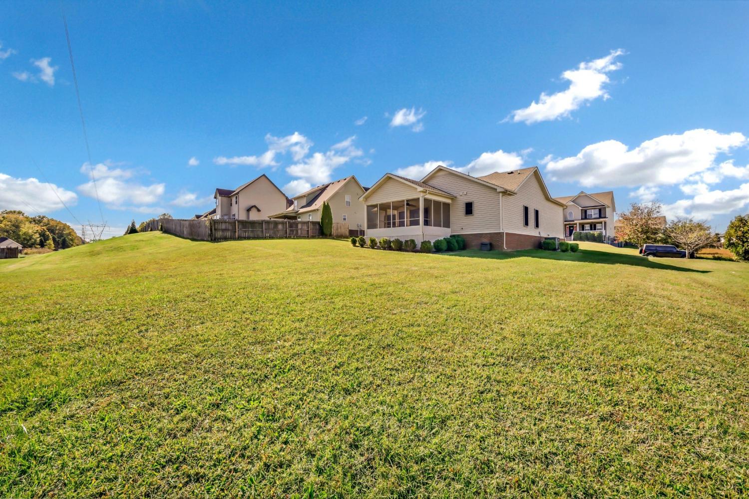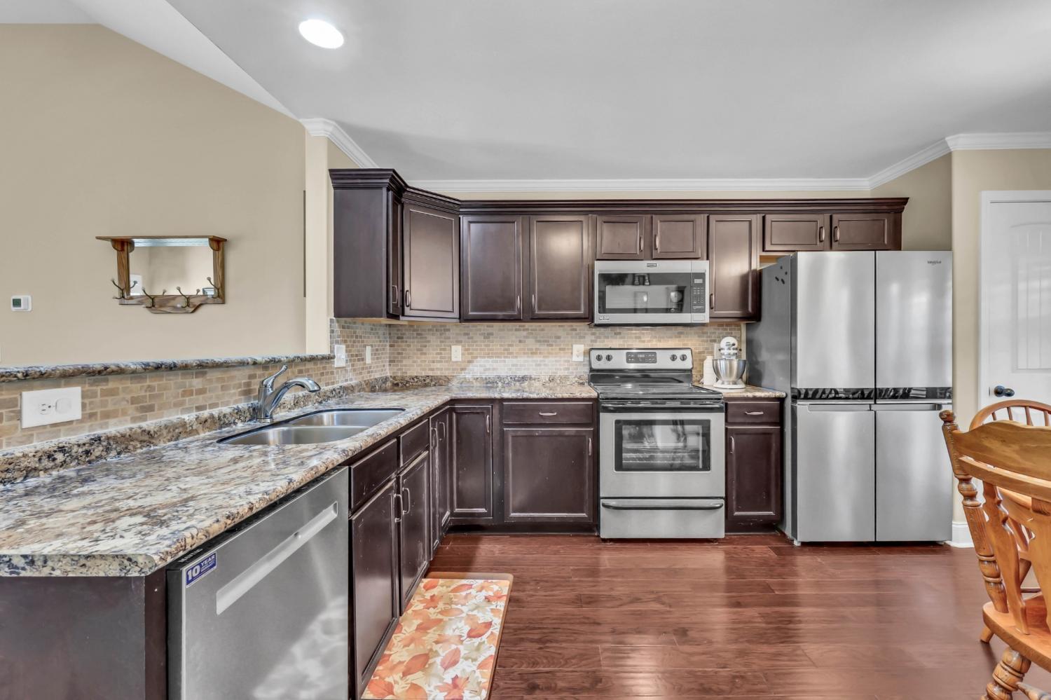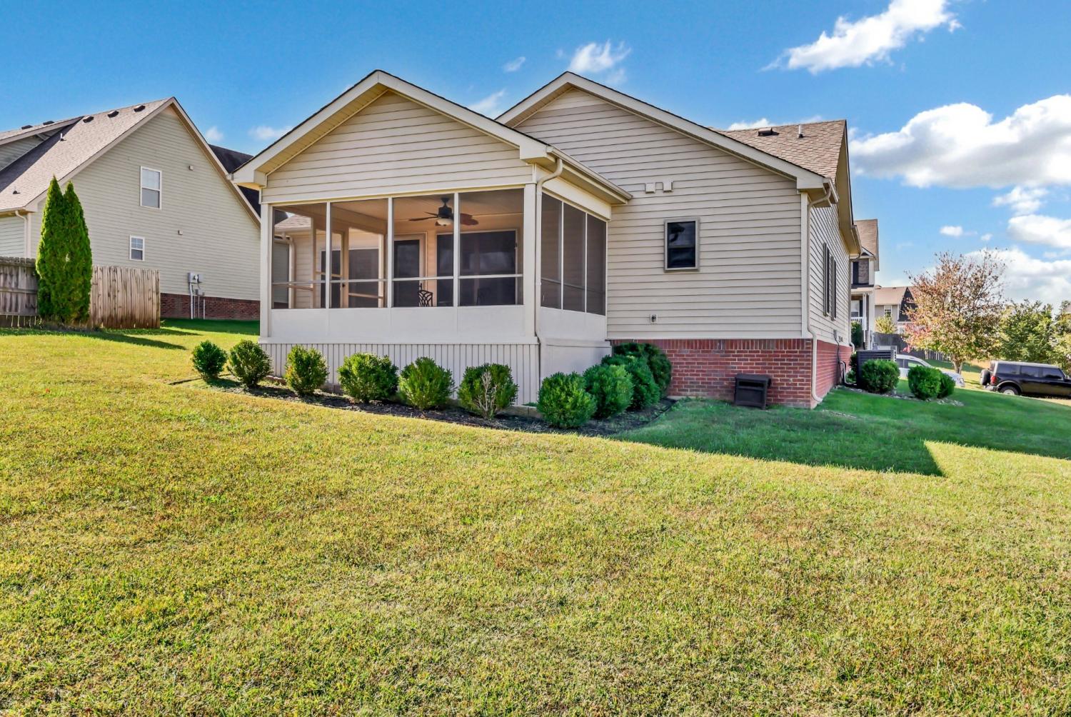 Charming 3 bed, 2 bath home with a spacious bonus room over the two-car garage. Beautiful wood flooring downstairs, cozy living room, and a stunning eat-in kitchen featuring tiled backsplash, crown molding, and pantry. The primary suite offers a double vanity, walk-in closet, and added space with a push-out window. Enjoy Tennessee evenings on the screened-in deck with ceiling fan. Updates include a 1-year-old HVAC, new water heater, microwave, stone steps, insulated attic doors, plantation shutters, custom built-ins, and Le Creme satin screen doors. Storm shelter in garage. Seller is offering a home warranty and concessions with acceptable offer. Style, comfort, and functionality all in one.