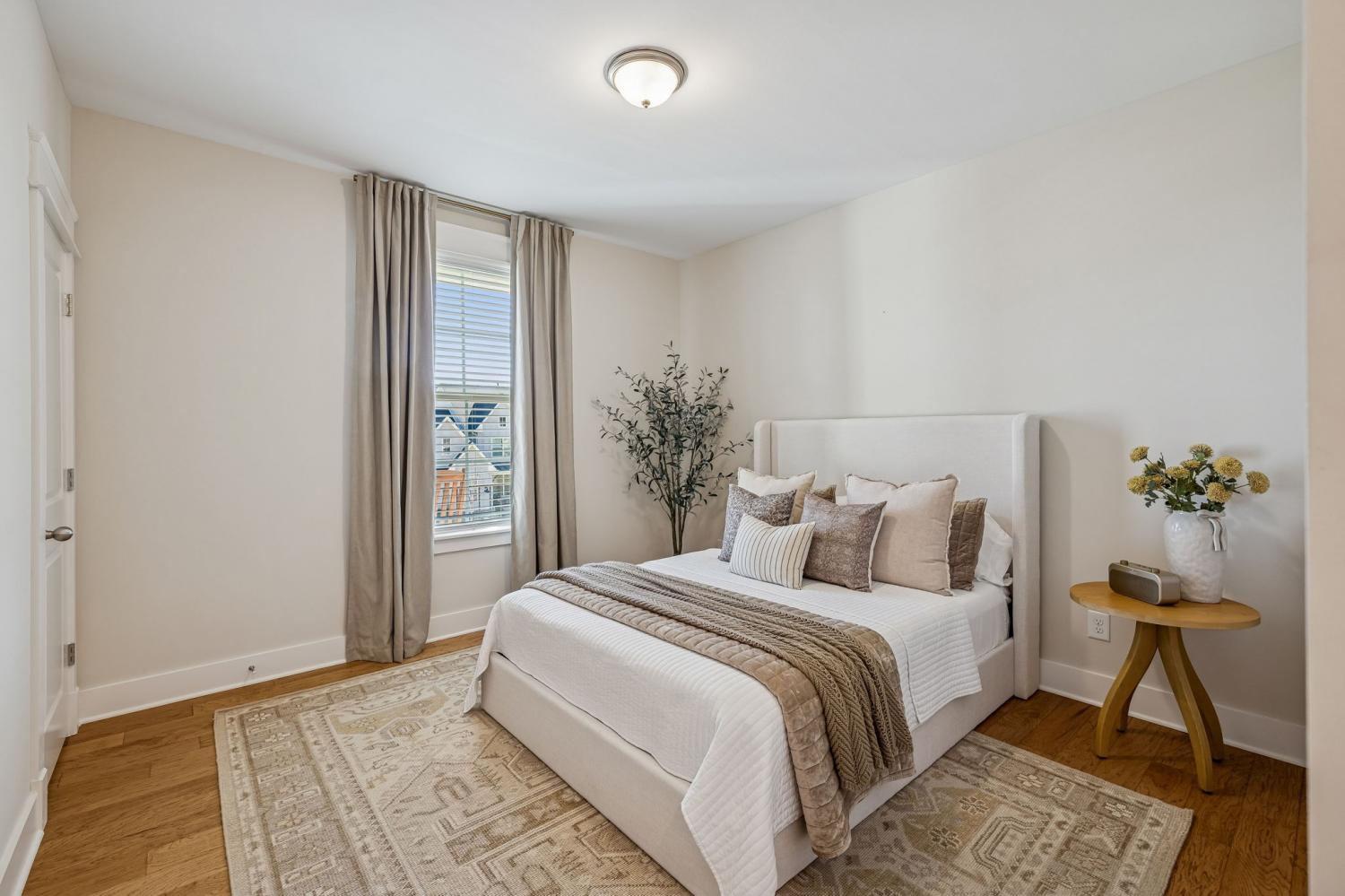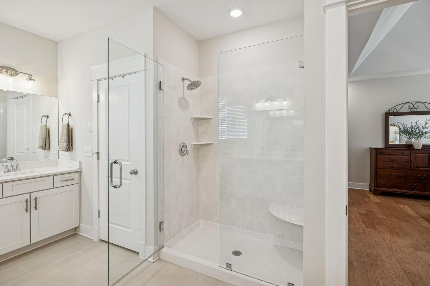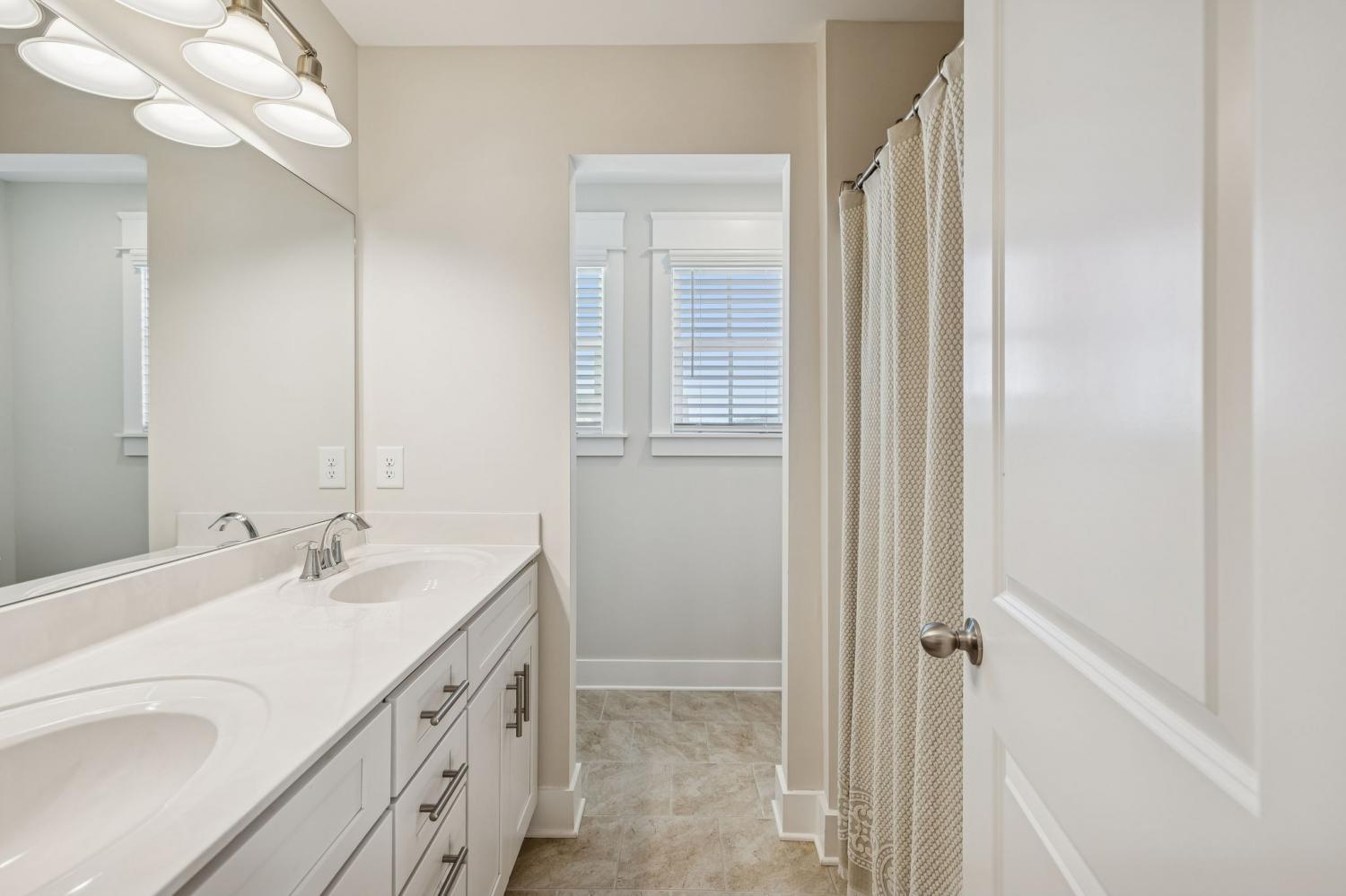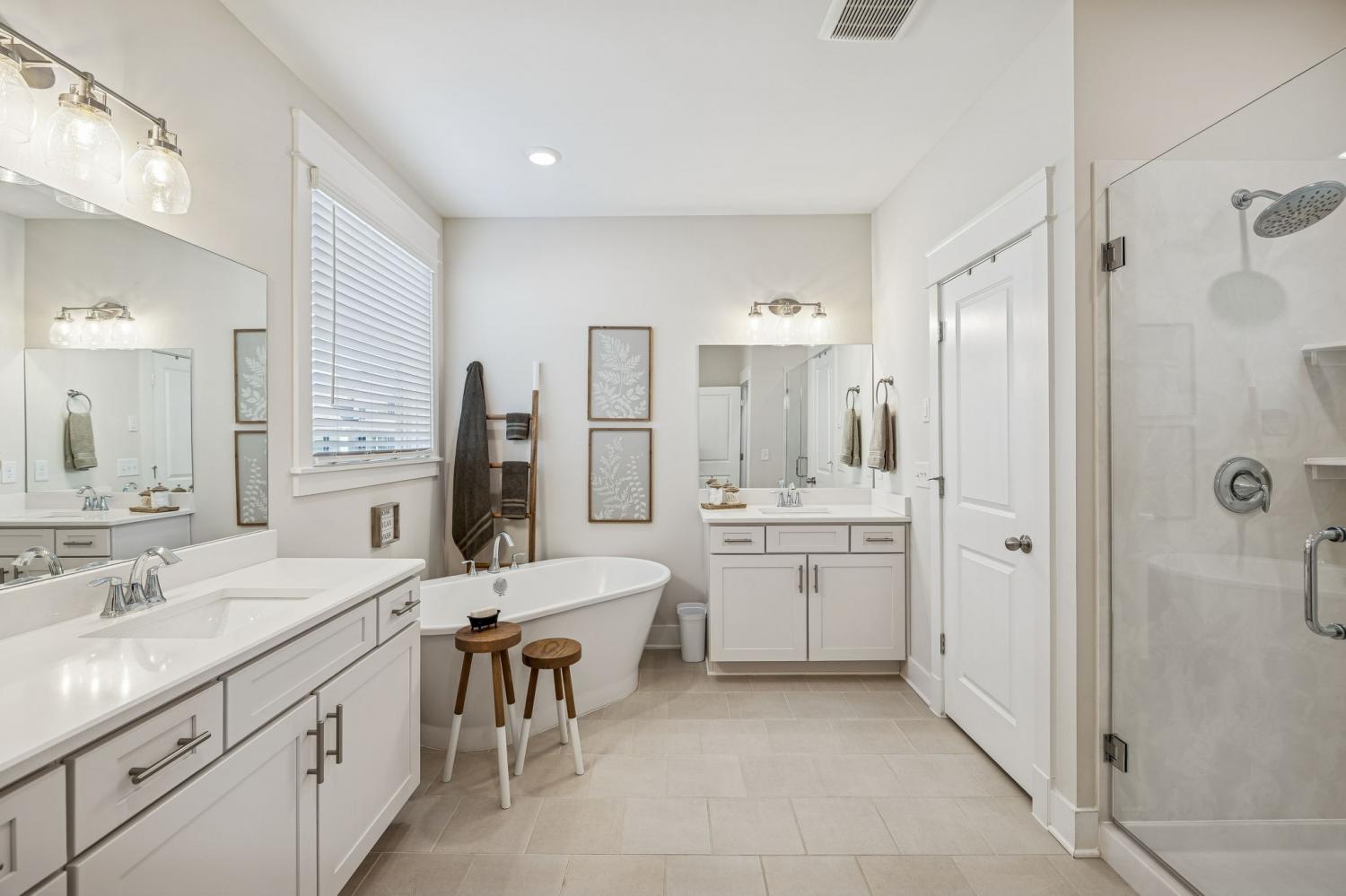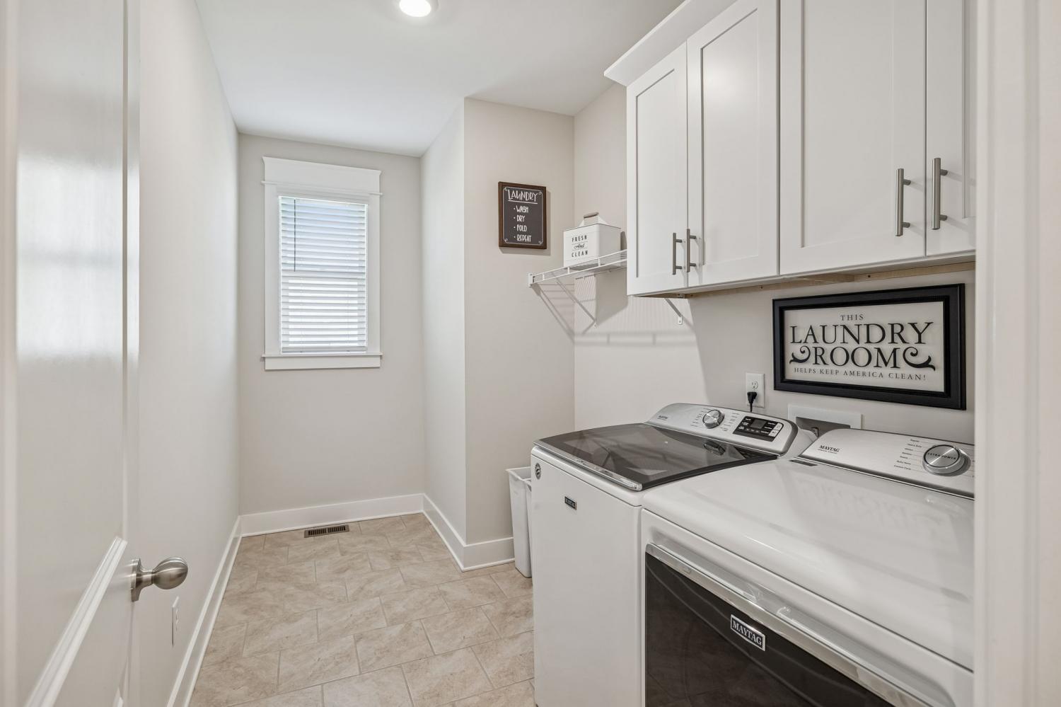 Welcome to this meticulously maintained, move-in ready 4-bedroom, 3.5-bathroom home featuring a spacious, fully fenced private backyard that backs to serene woods, creating a peaceful, park-like setting. Inside, the home offers both a primary suite on the main level and an additional main-floor bedroom—ideal for guests, in-laws, or a home office. The spacious 3-car garage provides ample room for vehicles, storage, and hobbies. The oversized kitchen serves as the heart of the home, anchored by a generous quartz island with quartz countertops throughout. Highlights include soft-close cabinetry, a herringbone subway tile backsplash, brushed gold designer pendants, a gas range, statement hood, and WiFi-enabled double ovens. An expansive covered front porch and statement double entry doors welcome you into a foyer with custom millwork. The vaulted living room impresses with exposed beams, stacked windows that flood the space with natural light, rich hardwood flooring, and a floor-to-ceiling stacked stone fireplace with custom built-ins. Additional thoughtful touches include plumbing ready for a water softener and a gas line for an outdoor grill making future upgrades simple and convenient. This pristine home blends luxury, functionality, and timeless appeal—don't miss out on making it yours! Zoned for Williamson County School district.